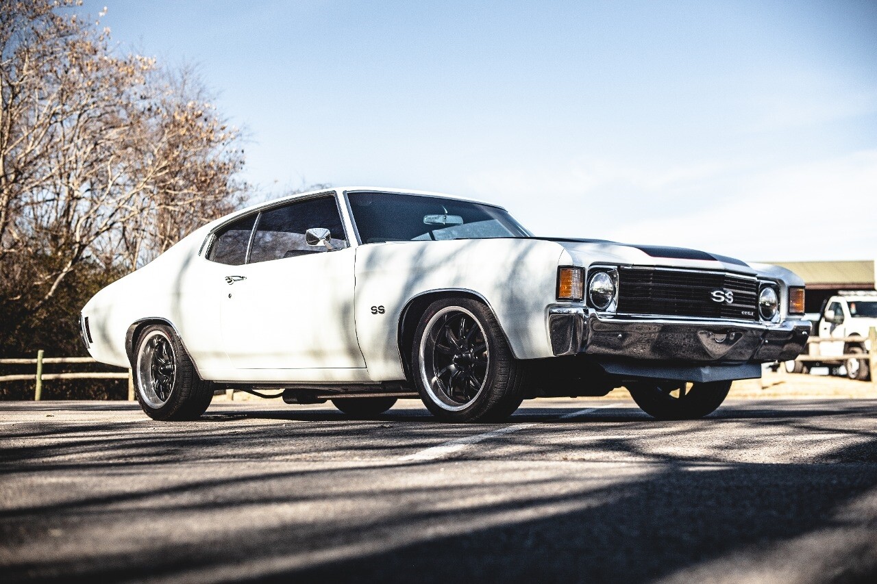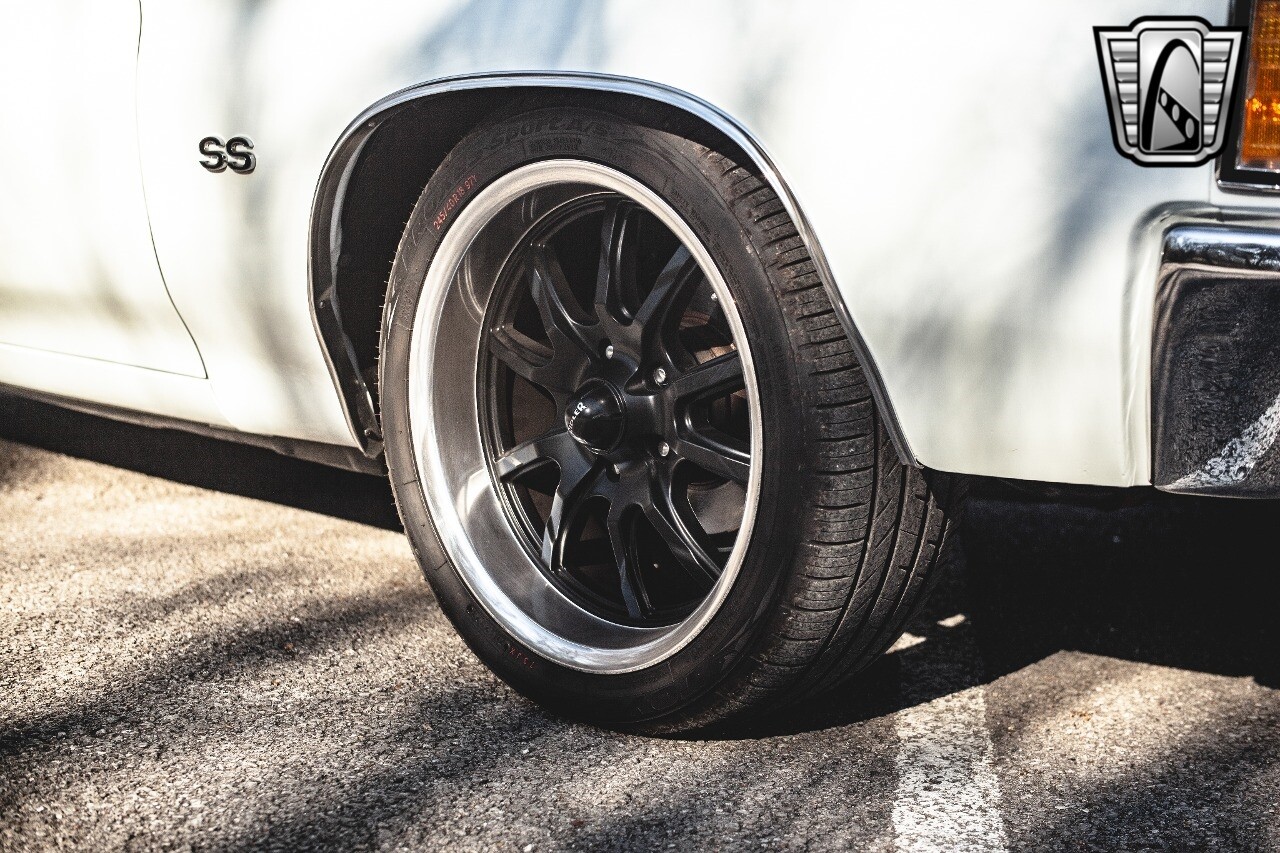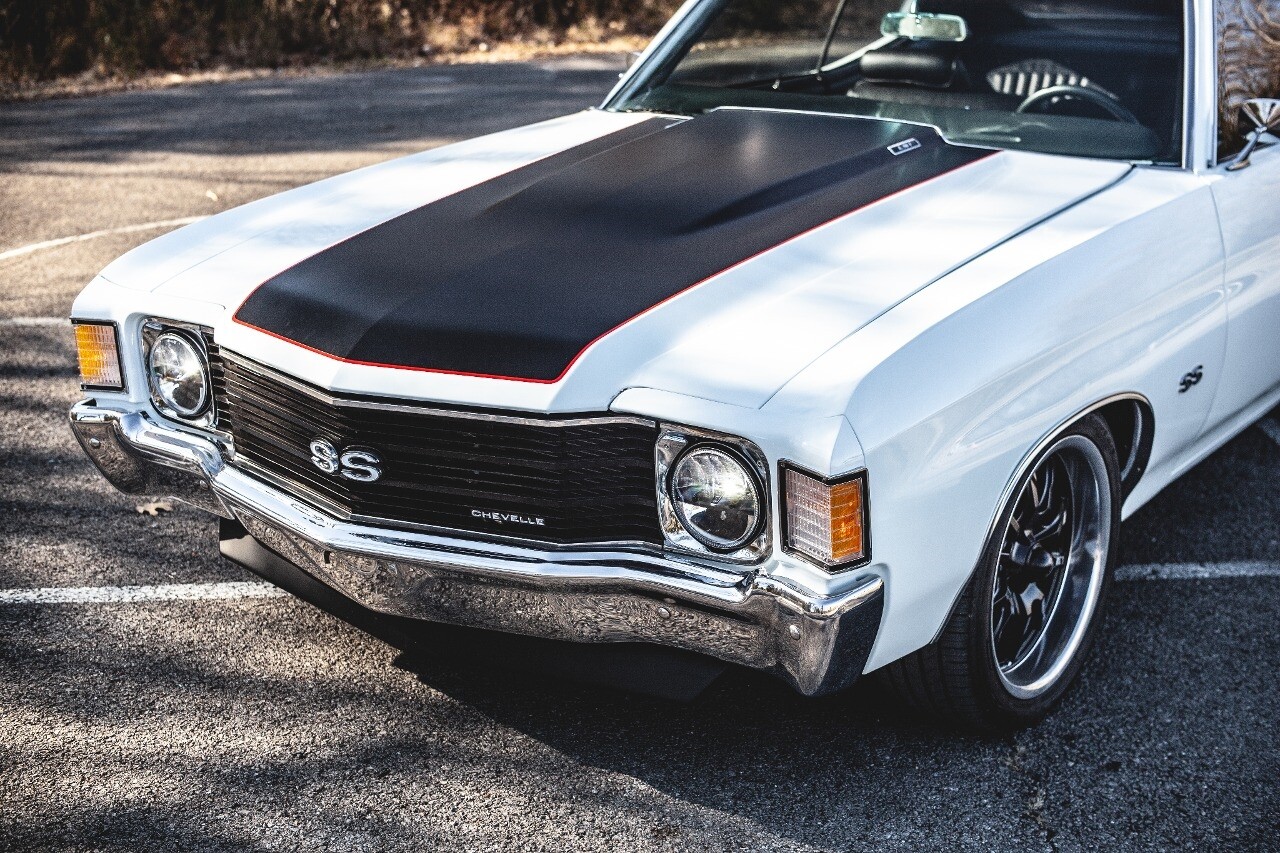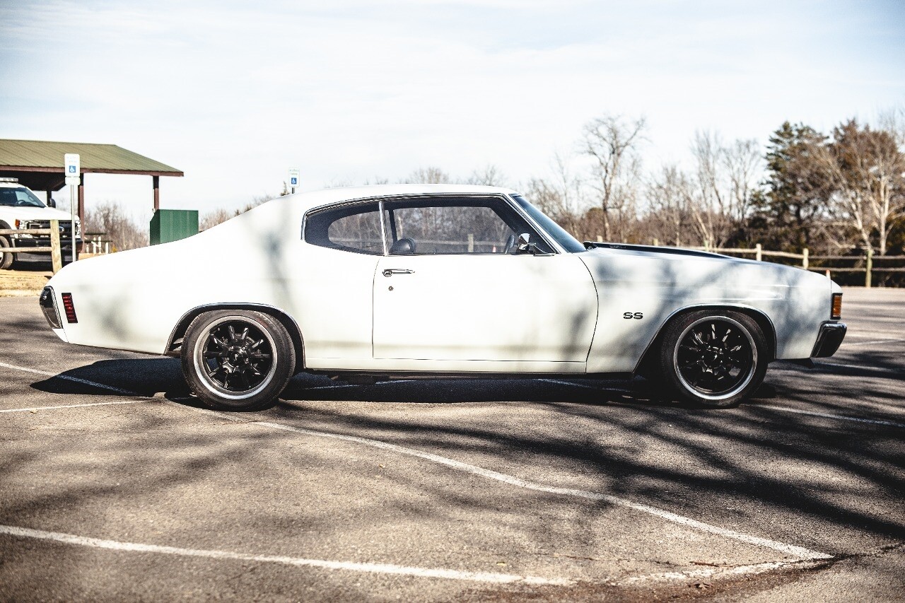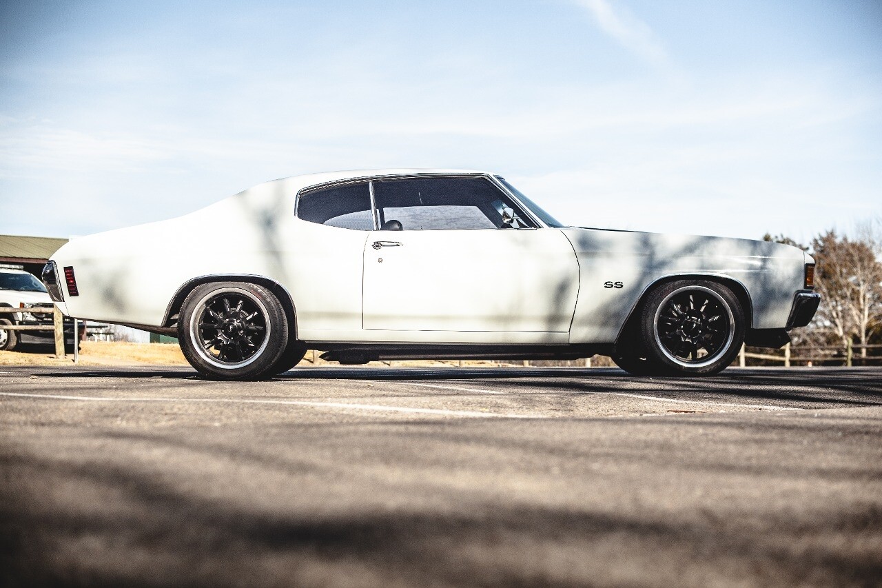The 1972 Chevrolet Chevelle is also fitted with radial tires for improved stability and traction, ensuring a smooth and comfortable ride. The rally wheels add to the overall aesthetic of the car, enhancing its classic appeal.