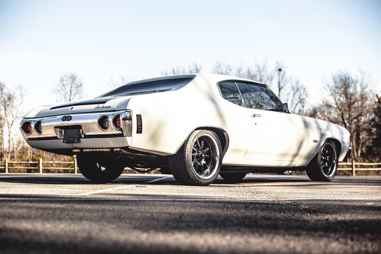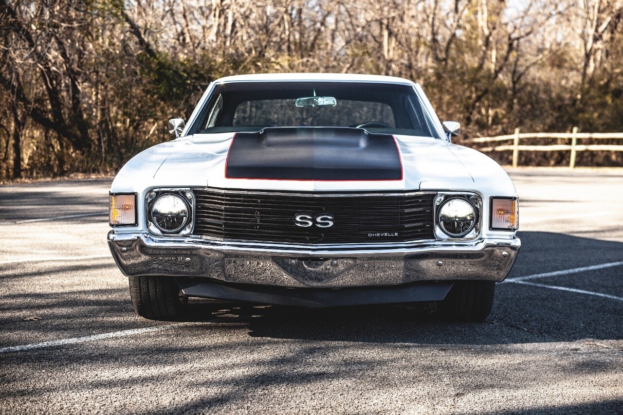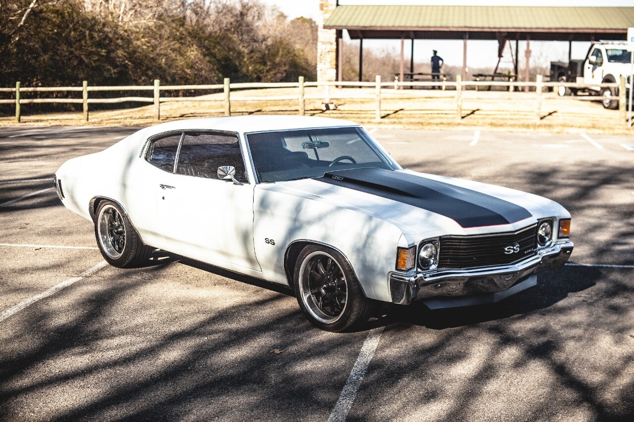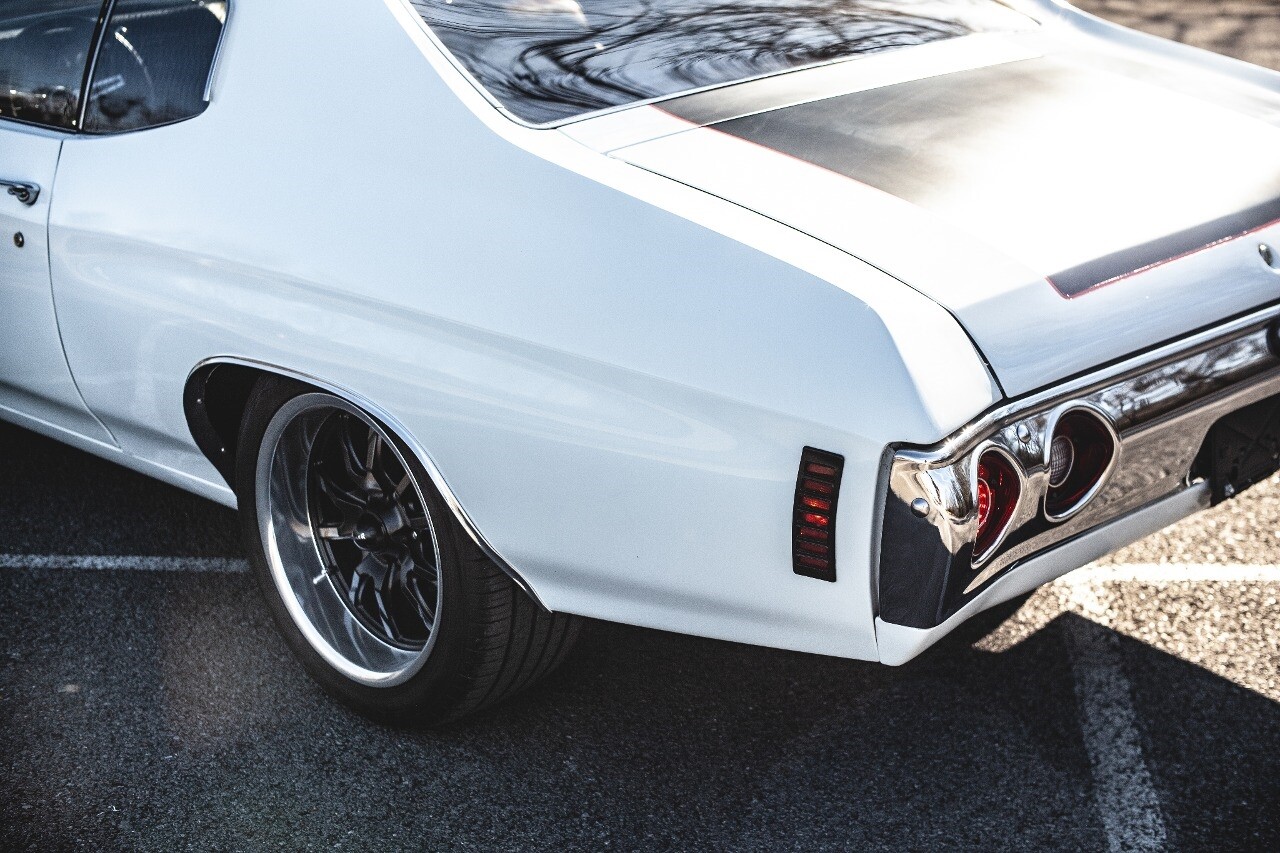 The 1972 Chevrolet Chevelle is also fitted with radial tires for improved stability and traction, ensuring a smooth and comfortable ride. The rally wheels add to the overall aesthetic of the car, enhancing its classic appeal.