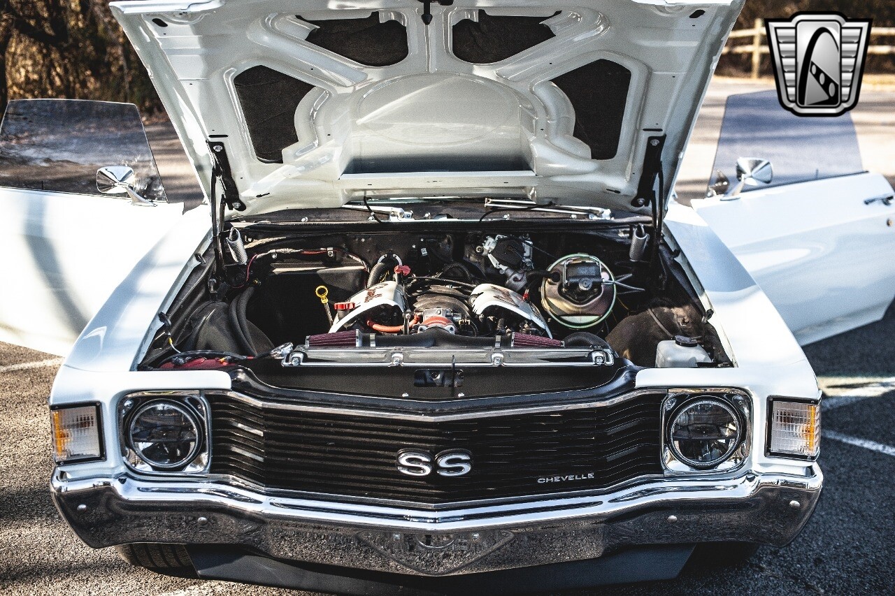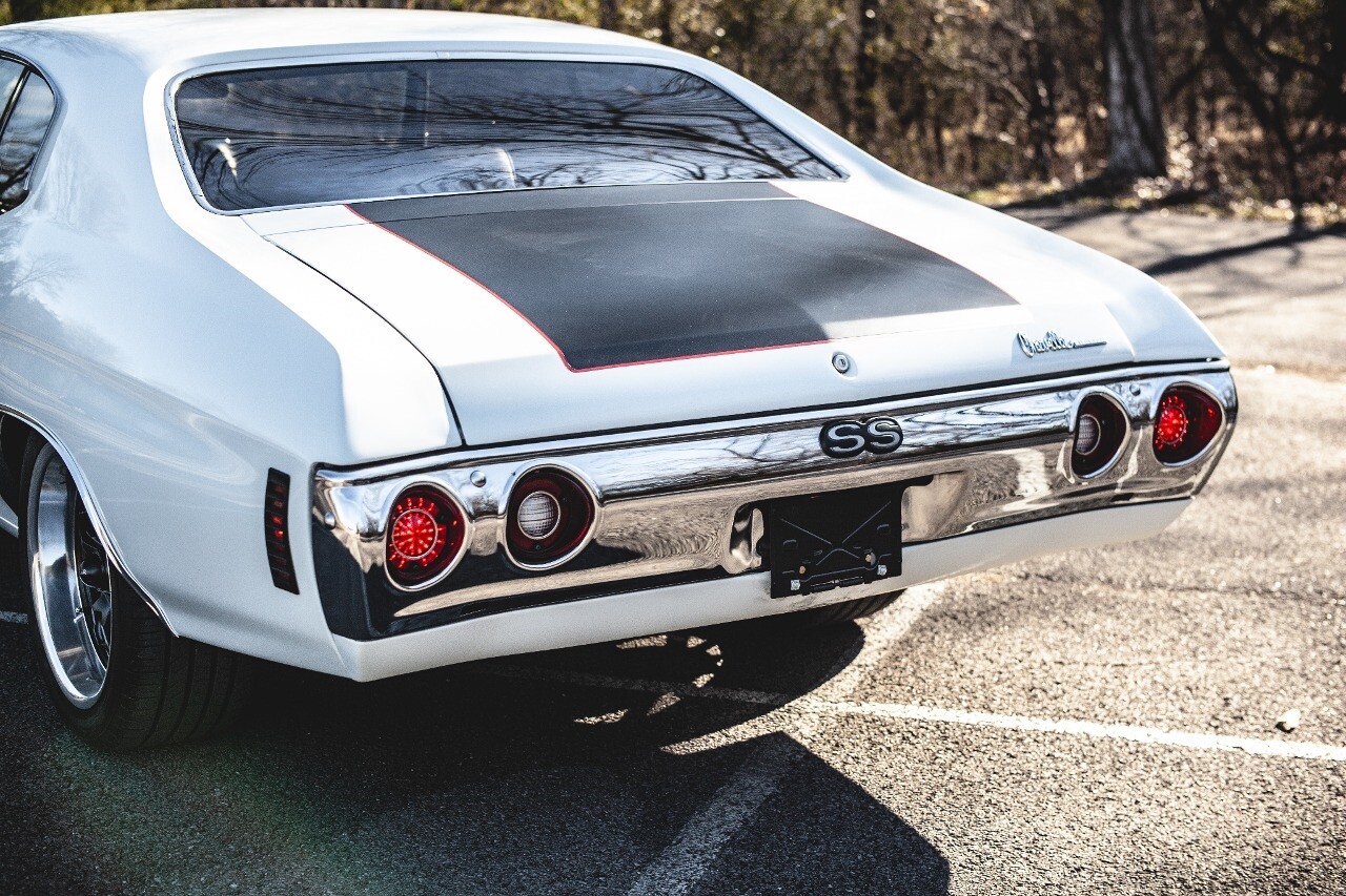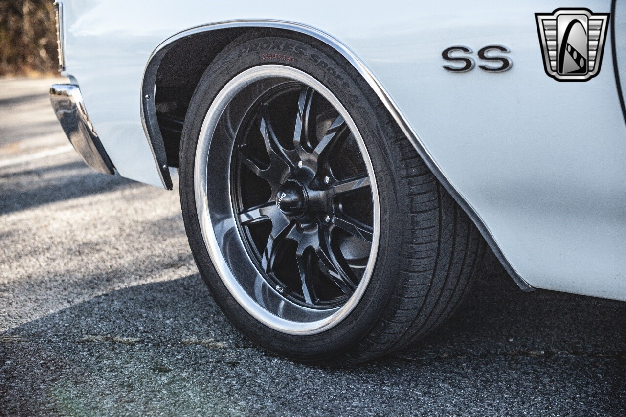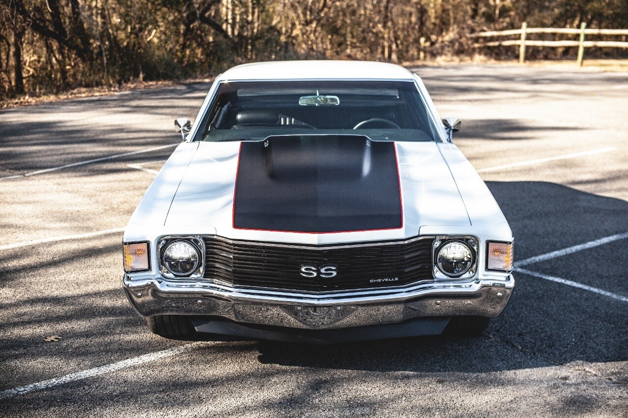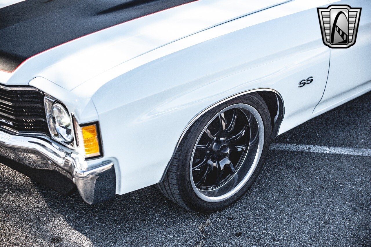 The 1972 Chevrolet Chevelle is also fitted with radial tires for improved stability and traction, ensuring a smooth and comfortable ride. The rally wheels add to the overall aesthetic of the car, enhancing its classic appeal.