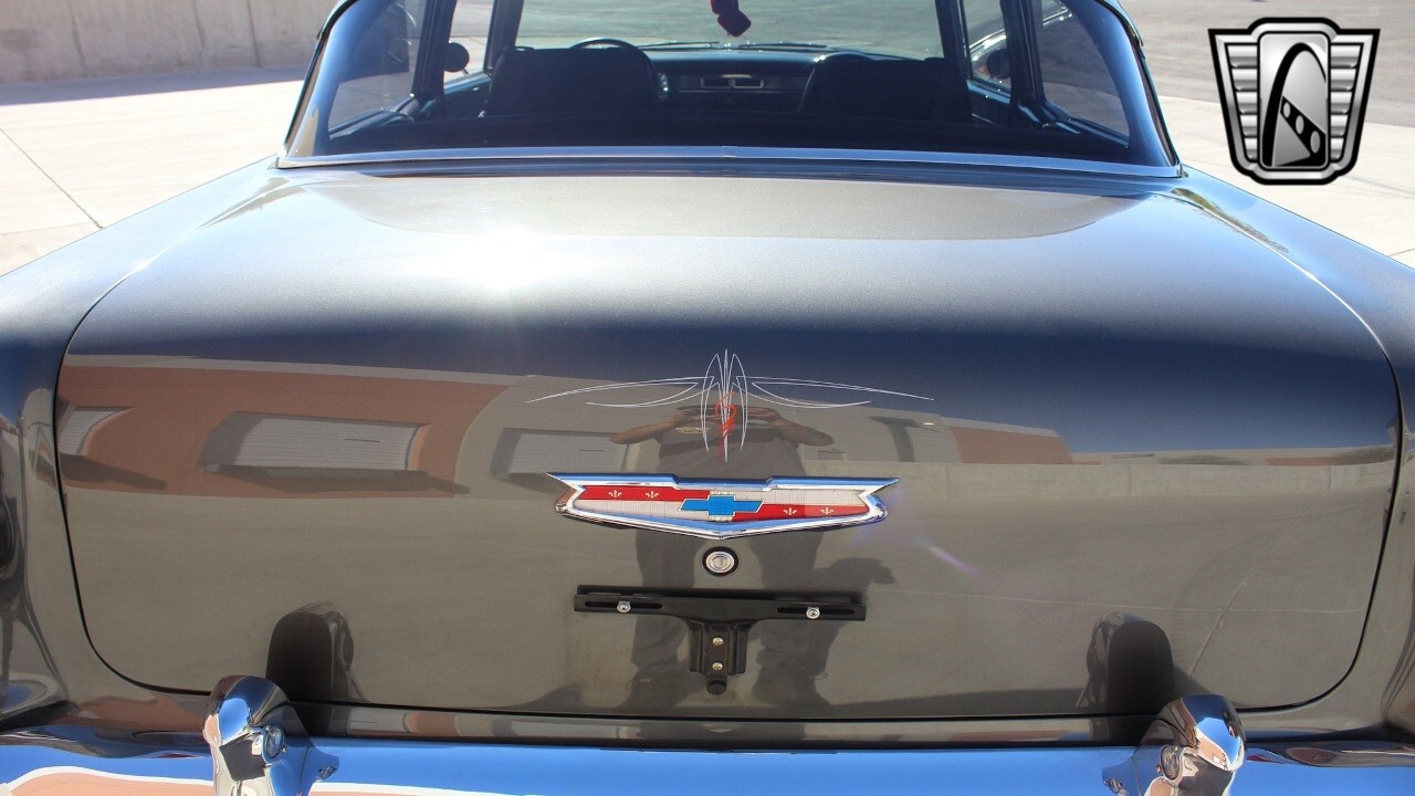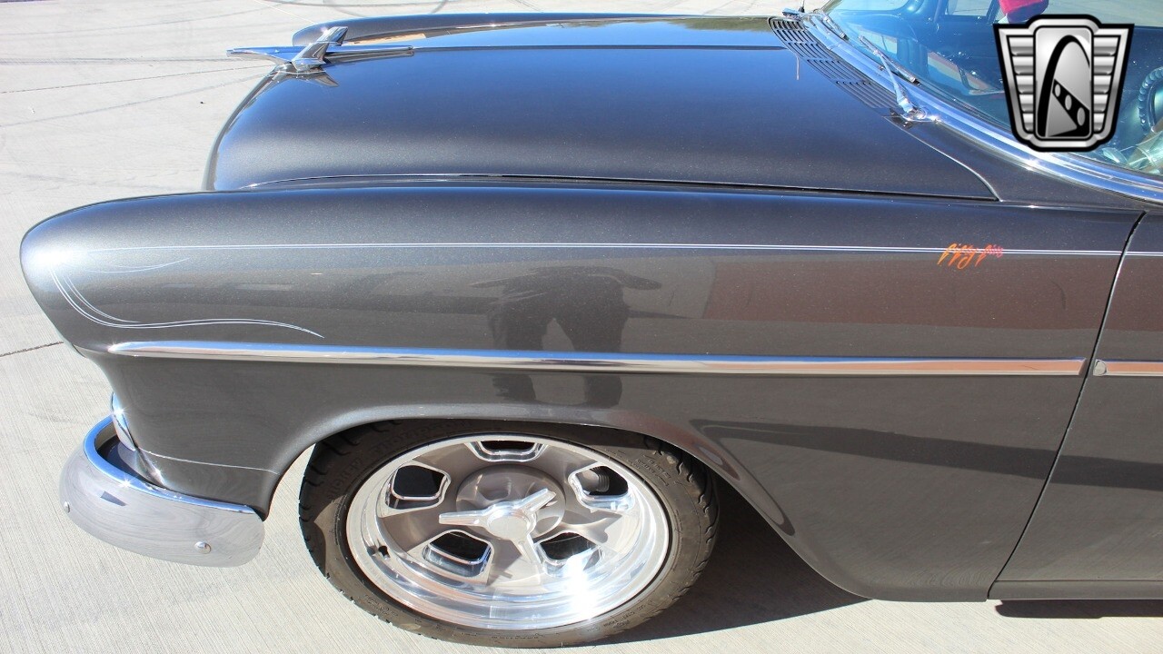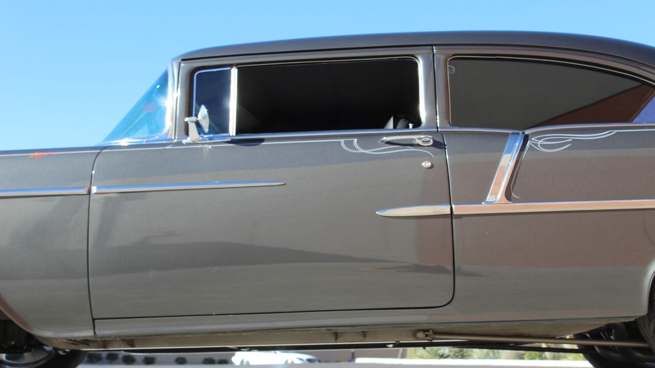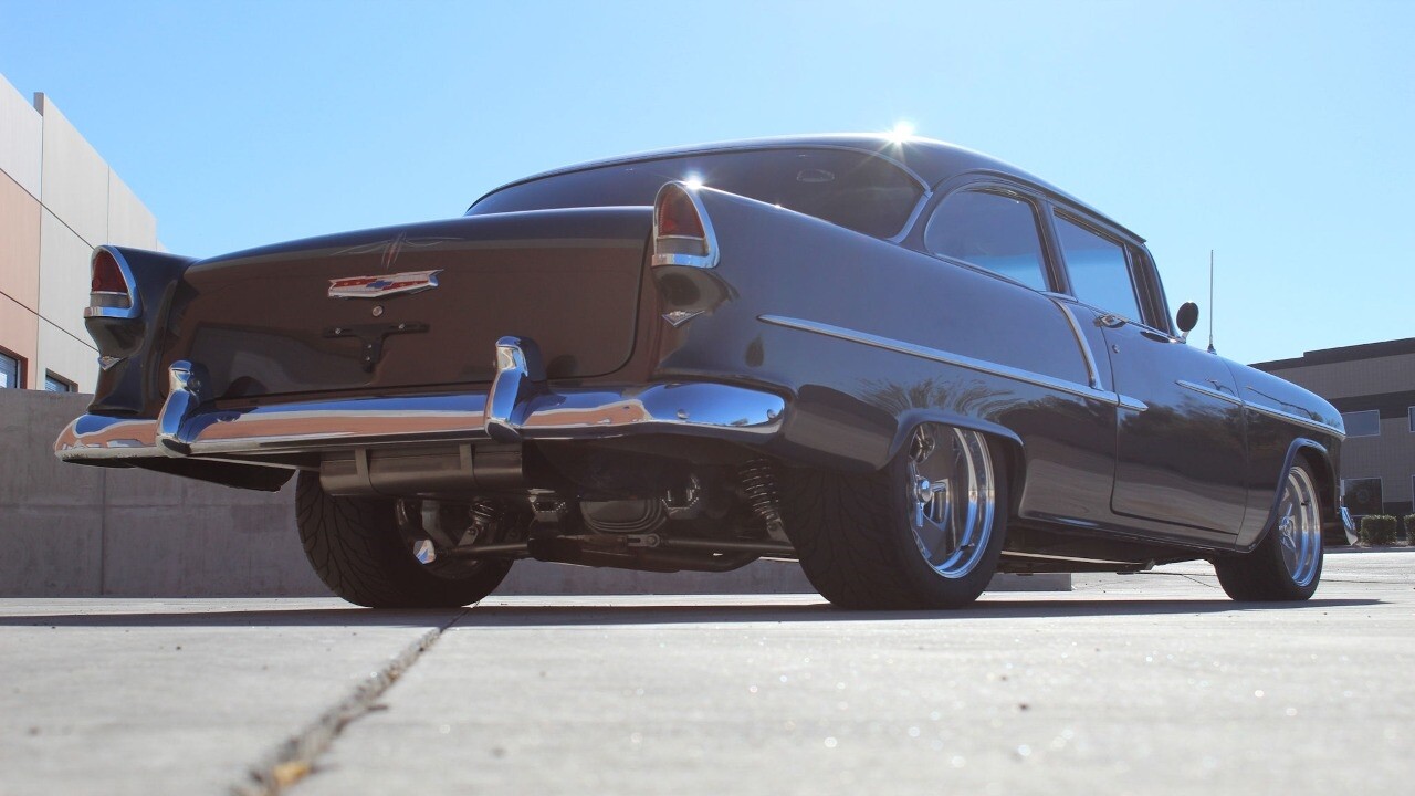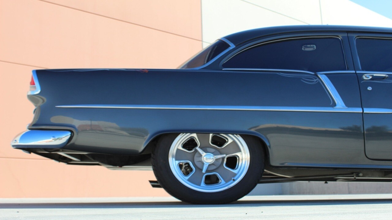 Gateway Classic Cars of Scottsdale is revved up to present for sale, on consignment, this stunning resto-mod 1955 Chevrolet 210 Post! Picture seeing this from across the parking lot as it pulls into the show. It's gliding across the pavement with a very subtle, almost muted rumble and as it gets closer your ears also detect a slight whining noise, as it passes, you take note of the custom pinstriping that more than makes up for the lack of the typical two-tone paint job seen on 210's elsewhere. The car is parked and the hood opens up to reveal the true gem of this a build, a 6.2 liter LS2 with a blower and just about every polished accessory you can think of. The 376 cubic inch engine is mated to a Tremec 6 speed manual transmission that sends the owner claimed, 600 horsepower to a Heidts independent rear suspension, disc brakes and coilovers with 3:55 gears. Up front is a Heidts front suspension package with disc brakes, tubular upper and lower control arms and coilovers. All of this is sitting on a Heidts Hot Rod Shop frame which really helps give this car a menacing stance. Rolling stock comes by way of 18" Billet Specialties Legacy 2 wheels with both brushed and polished surfaces that are wrapped in Mickey Thompson Sportsman S/R rubber. This car features air conditioning, AM/FM/CD radio, power brakes, power steering, power windows, power locks, keyless entry, tilt wheel and leather interior. [ omitted ].