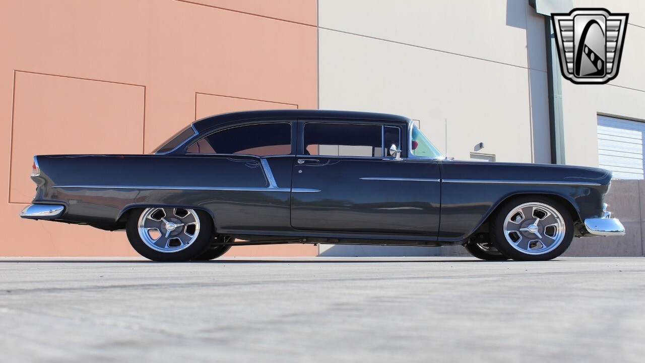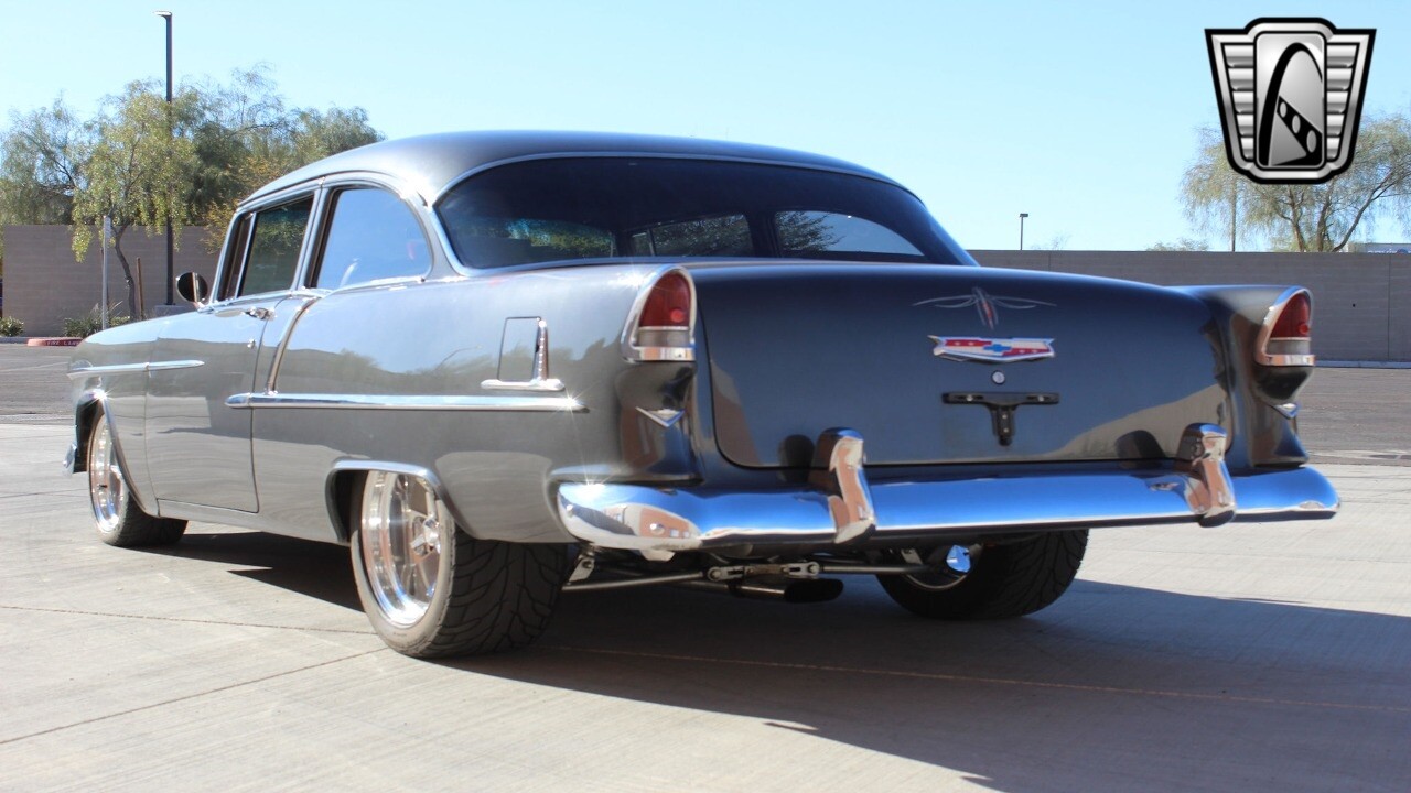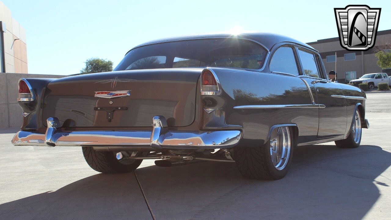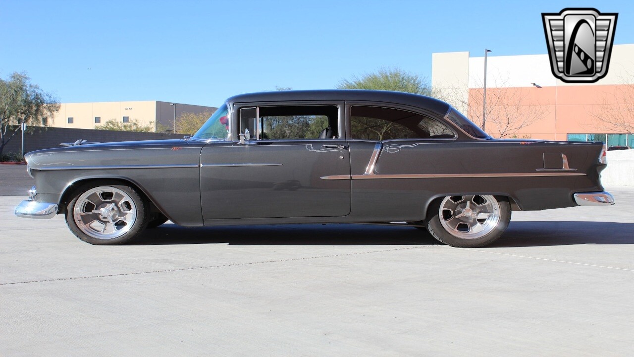 Gateway Classic Cars of Scottsdale is revved up to present for sale, on consignment, this stunning resto-mod 1955 Chevrolet 210 Post! Picture seeing this from across the parking lot as it pulls into the show. It's gliding across the pavement with a very subtle, almost muted rumble and as it gets closer your ears also detect a slight whining noise, as it passes, you take note of the custom pinstriping that more than makes up for the lack of the typical two-tone paint job seen on 210's elsewhere. The car is parked and the hood opens up to reveal the true gem of this a build, a 6.2 liter LS2 with a blower and just about every polished accessory you can think of. The 376 cubic inch engine is mated to a Tremec 6 speed manual transmission that sends the owner claimed, 600 horsepower to a Heidts independent rear suspension, disc brakes and coilovers with 3:55 gears. Up front is a Heidts front suspension package with disc brakes, tubular upper and lower control arms and coilovers. All of this is sitting on a Heidts Hot Rod Shop frame which really helps give this car a menacing stance. Rolling stock comes by way of 18" Billet Specialties Legacy 2 wheels with both brushed and polished surfaces that are wrapped in Mickey Thompson Sportsman S/R rubber. This car features air conditioning, AM/FM/CD radio, power brakes, power steering, power windows, power locks, keyless entry, tilt wheel and leather interior. [ omitted ].