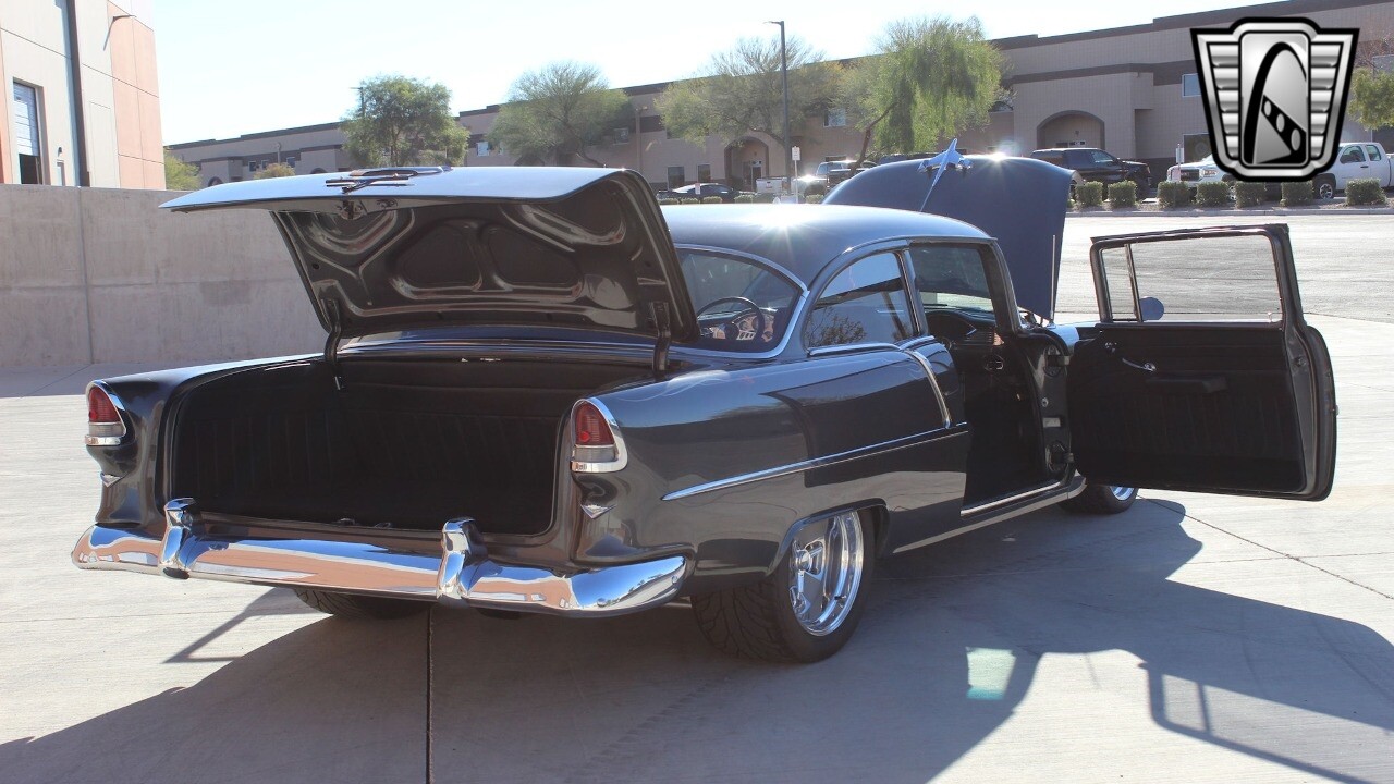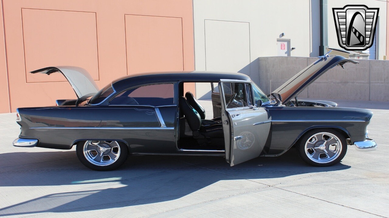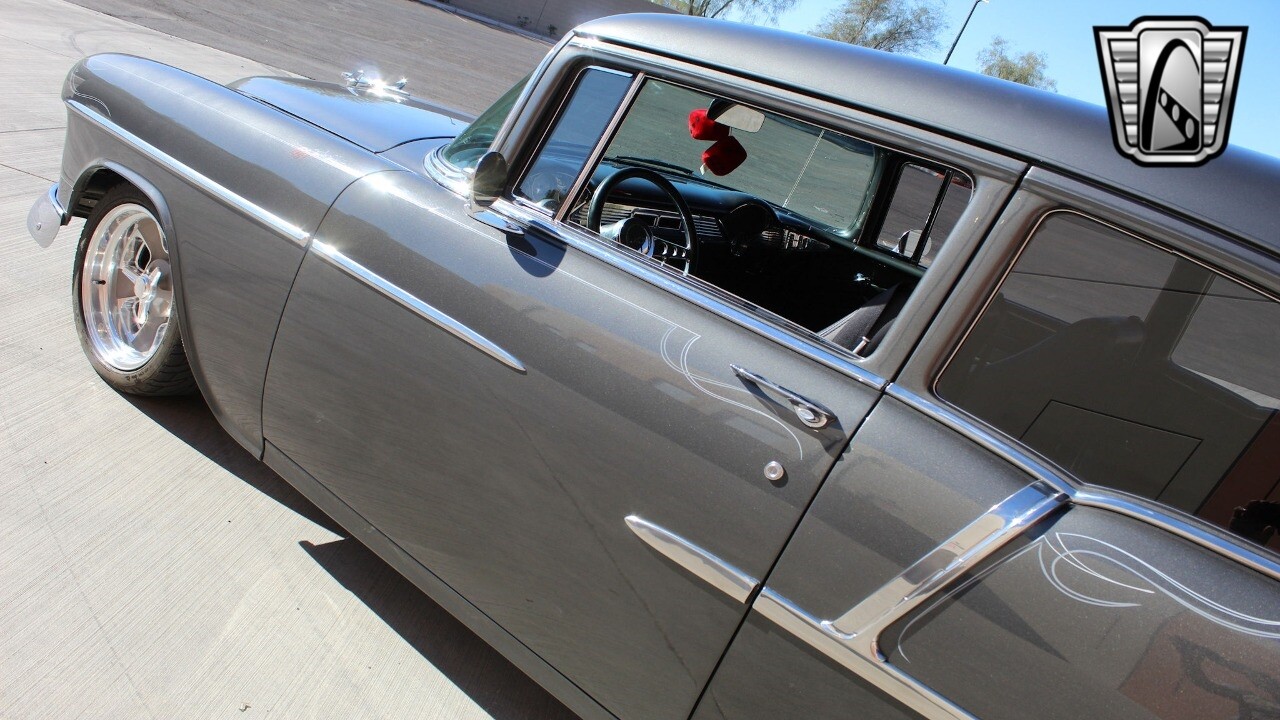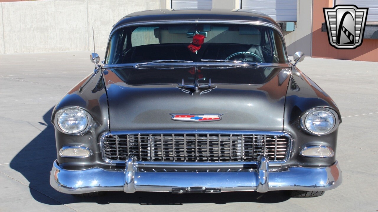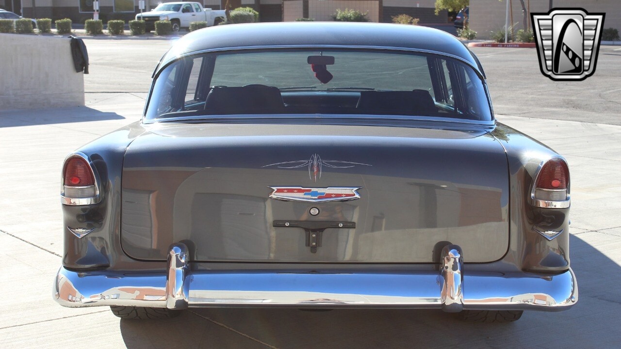 Gateway Classic Cars of Scottsdale is revved up to present for sale, on consignment, this stunning resto-mod 1955 Chevrolet 210 Post! Picture seeing this from across the parking lot as it pulls into the show. It's gliding across the pavement with a very subtle, almost muted rumble and as it gets closer your ears also detect a slight whining noise, as it passes, you take note of the custom pinstriping that more than makes up for the lack of the typical two-tone paint job seen on 210's elsewhere. The car is parked and the hood opens up to reveal the true gem of this a build, a 6.2 liter LS2 with a blower and just about every polished accessory you can think of. The 376 cubic inch engine is mated to a Tremec 6 speed manual transmission that sends the owner claimed, 600 horsepower to a Heidts independent rear suspension, disc brakes and coilovers with 3:55 gears. Up front is a Heidts front suspension package with disc brakes, tubular upper and lower control arms and coilovers. All of this is sitting on a Heidts Hot Rod Shop frame which really helps give this car a menacing stance. Rolling stock comes by way of 18" Billet Specialties Legacy 2 wheels with both brushed and polished surfaces that are wrapped in Mickey Thompson Sportsman S/R rubber. This car features air conditioning, AM/FM/CD radio, power brakes, power steering, power windows, power locks, keyless entry, tilt wheel and leather interior. [ omitted ].