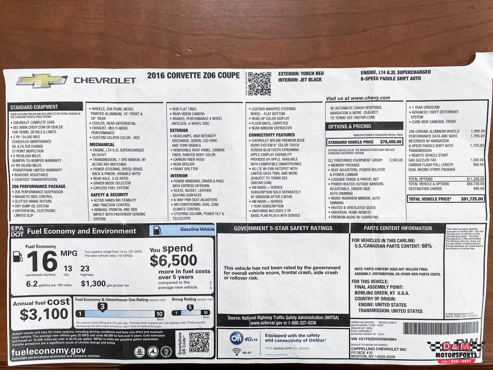 I wanted to let you know our Grand Sport arrived earlier today and you were right.......it looked even better in person. The car was in even better detailed condition than most vehicles I have purchased brand new. I want to thank you for all your great assistance with our purchase. D & M made the out of state purchase process simple and stress free beginning from your outstanding communication throughout the entire purchase process to your arranging the shipping of our car right to our front door! I will definitely recommend D & M to anyone looking to purchase low mileage pristine condition cars! Thank you again for a great corvette buying experience!