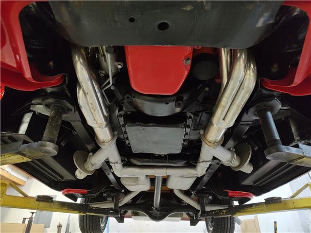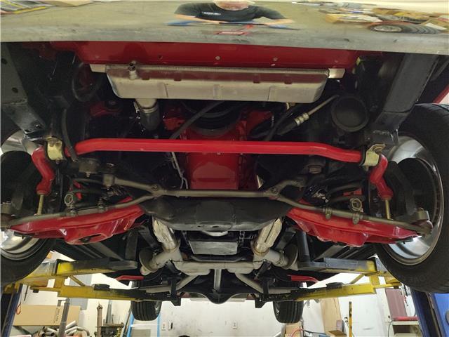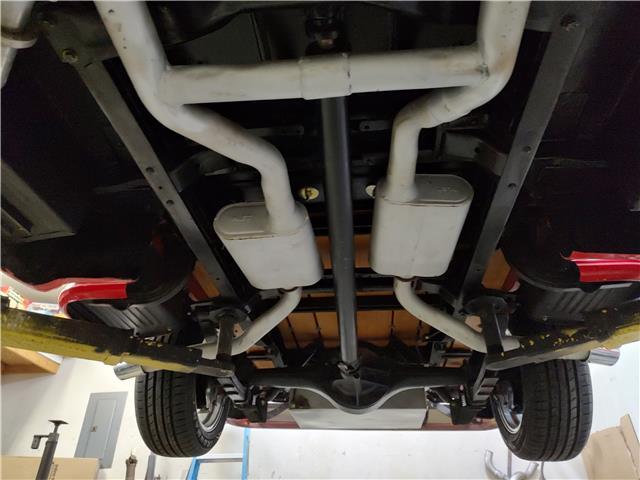 Under the hood we have a fresh 383 stroker, roller cam and rockers, Holley aluminum intake, dual feed Holley 4 barrel carb, updated with electronic ignition, chrome 80 amp alternator, finned aluminum valve covers and breather with K&N filter, heavy duty aluminum radiator with electric fan, billet recovery tank, set of long tube ceramic coated headers into 2 1/2 inch dual Flowmaster exhaust out the side with stainless tips; also has electric cutouts, this strong running 383 is backed up with a 700R4 overdrive trans, chassis has been nicely updated with a Camaro front-sub nicely graphed into the stock frame, front suspension has been completely redone, polyurethane bushings, 1 inch front sway bar, lowering springs all around, nicely updated with power steering, power 4 wheel disc brakes, posi rear end with 323 gear and disc brakes.