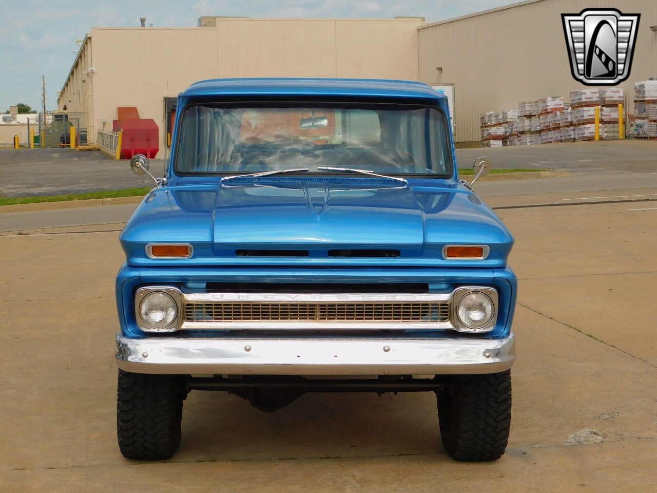 Delight in the timeless elegance of this 1966 Chevrolet K10. Wrapped in a striking blue exterior, this classic pickup exudes strength and finesse from every angle. It is powered by an impressive V8 engine, paired with an automatic transmission - a blend of power and convenience for a smooth, well-controlled ride.