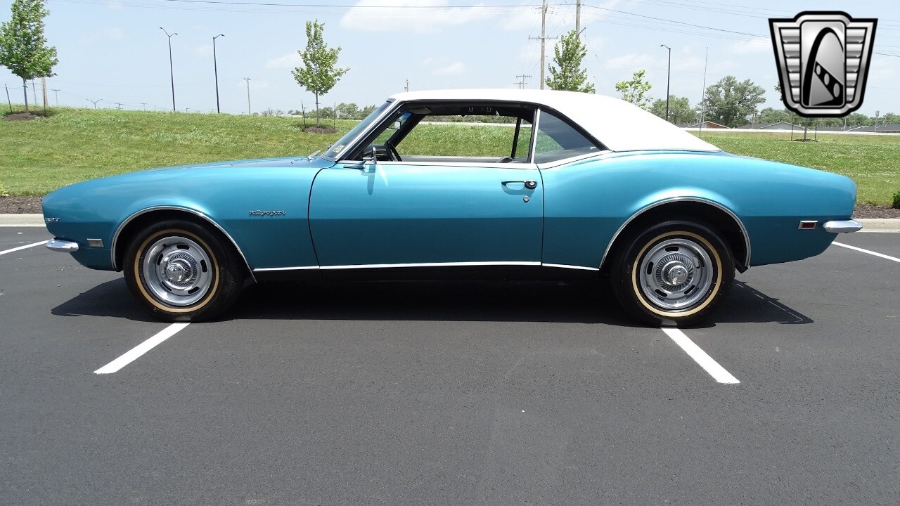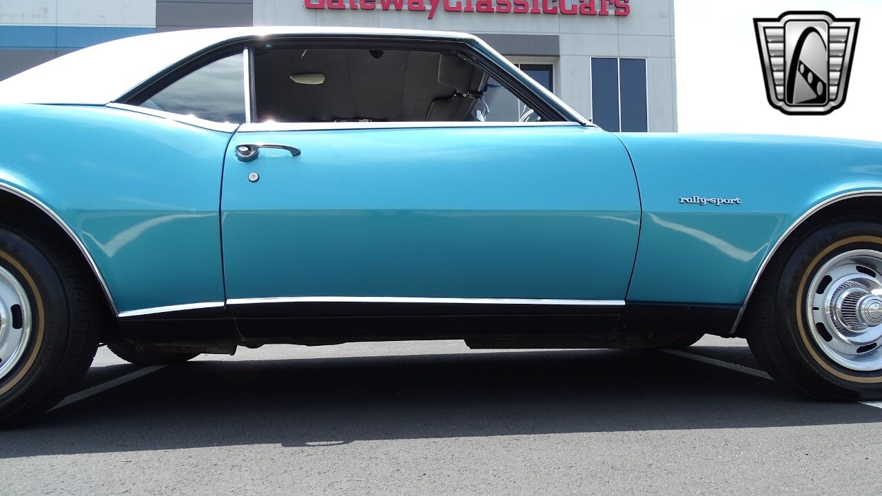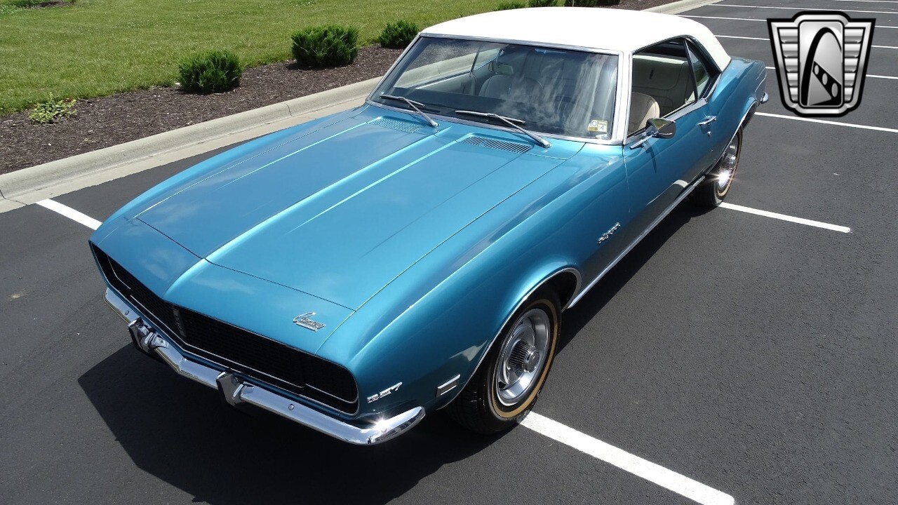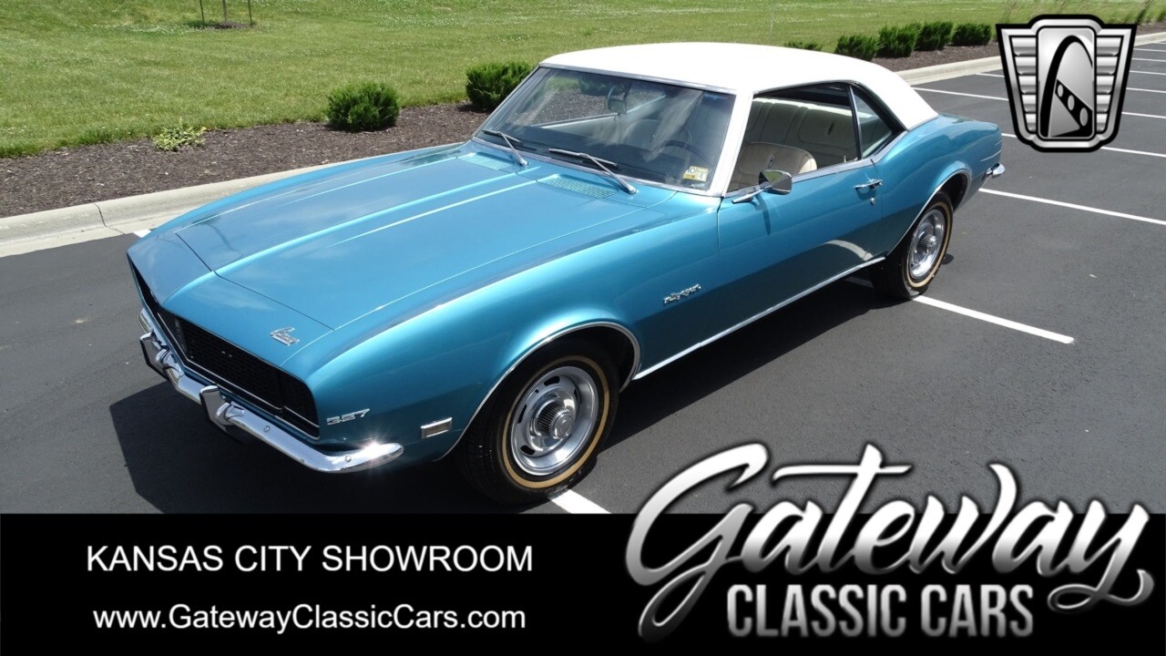 Gateway Classic Cars is proud to offer this nearly all original 1968 RS with the 327 small block V8. Sitting behind the motor is what the owner states to be the original automatic transmission. Not exactly a common color combination, the Turquoise paint with the White Vinyl Top compliments the White interior quite well! Featuring factory air conditioning to keep you cool on summer days. This is the first time this Camaro has seen the market in over 45 years, having been with the same owner for the last four decades. One of very few modifications is the 4 barrel carburetor, in place of the original 2 barrel. Don't miss this one. .