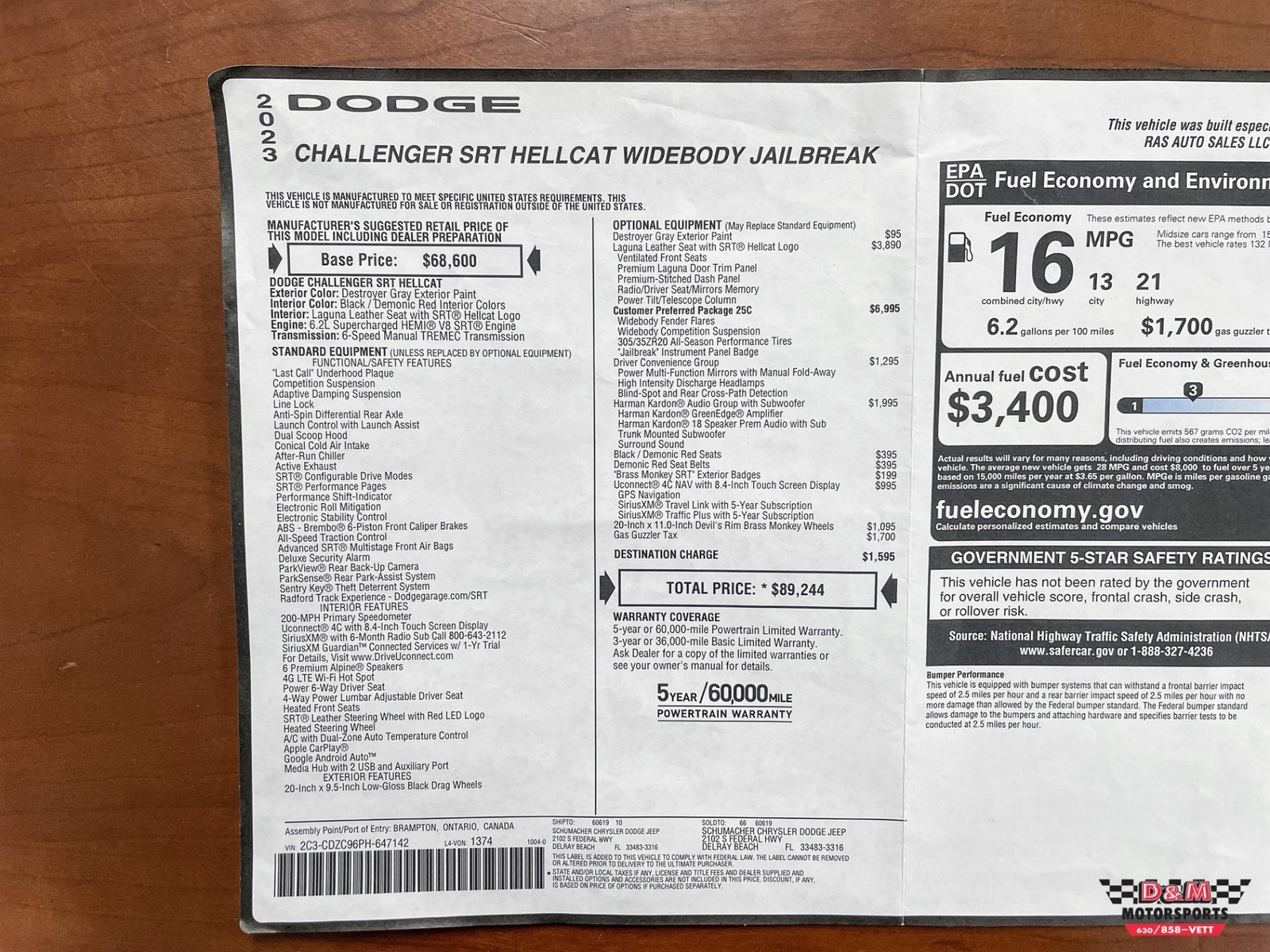 I had been wanting a Shelby gt500 since they started coming back out. it took me many years to save the money needed to buy this car. I always wanted the grabber blue with white stripes. When I found the one D&M had for sale I knew I wanted the car because it was 2010 grabber blue with red stripe ( never seen the combo before ) I always said I would never buy a car sight unseen but everything just felt right. They were great, helpful and most of all not pushy. I took a big risk in buying this car because if any issues It would take me a long time to save again. Worry no more, car arrived and is unbelievable. It was as advertised if not better. Still has new car smell and it has 9,300 miles. I can’t be happier that I made this decision. Also of note had minor setback with missing wheel lock key and notified D&M to see if they had it. They never found it but offered to pay for replacement. Being that's the only misstep I think they came through with flying colors (grabber blue of course) did a little research and did find out this color combo is low production and was also the color combo picked by no other then Mr. Carroll Shelby himself. Thanks D&M