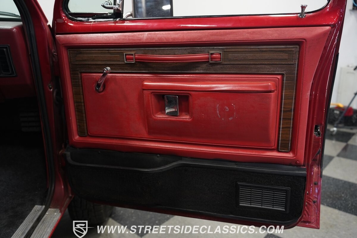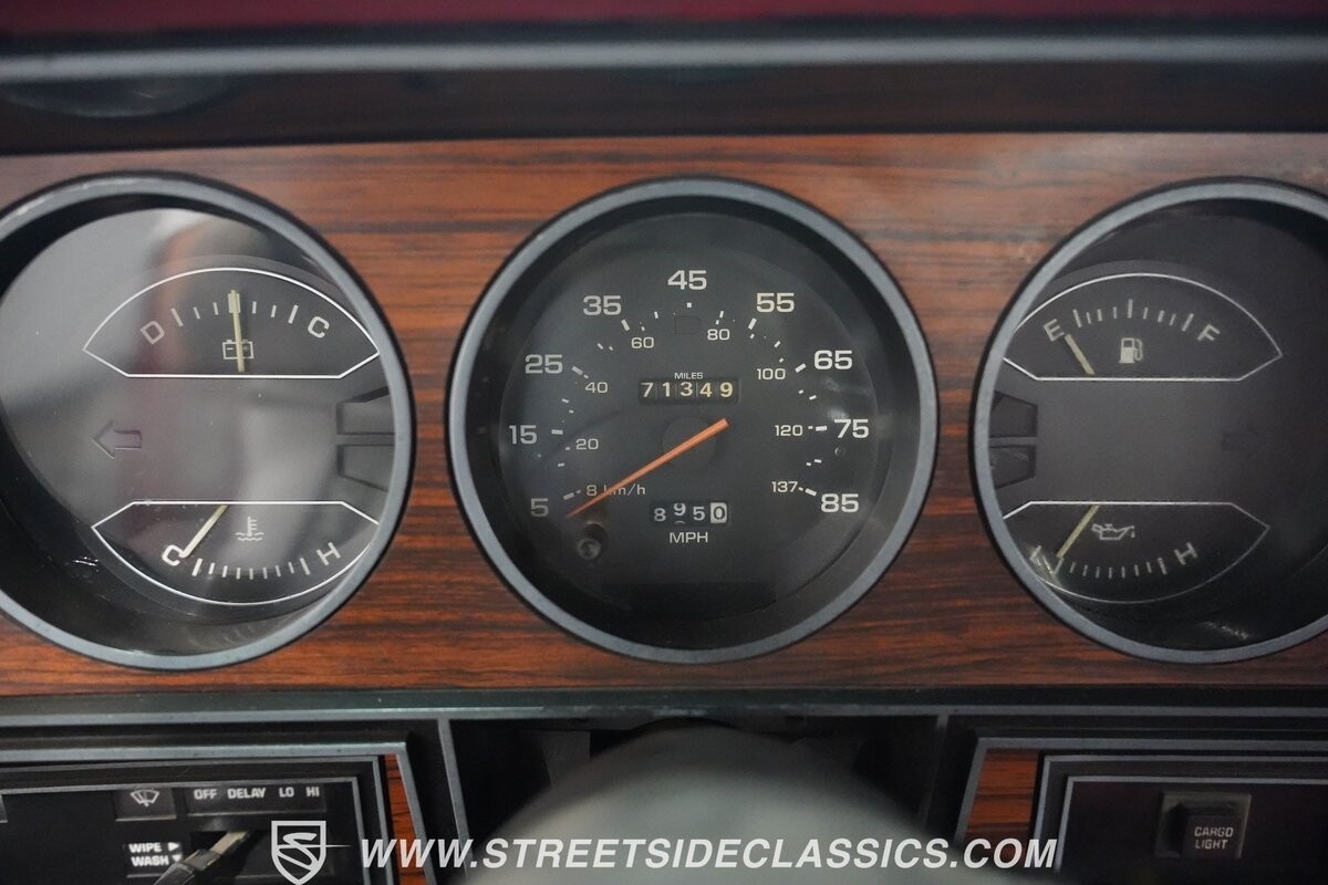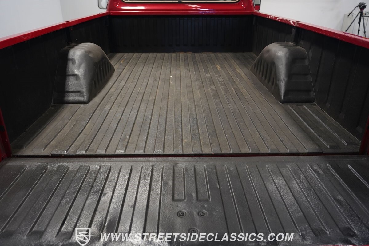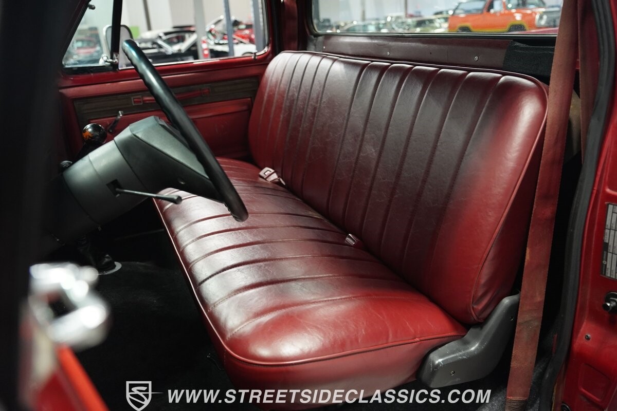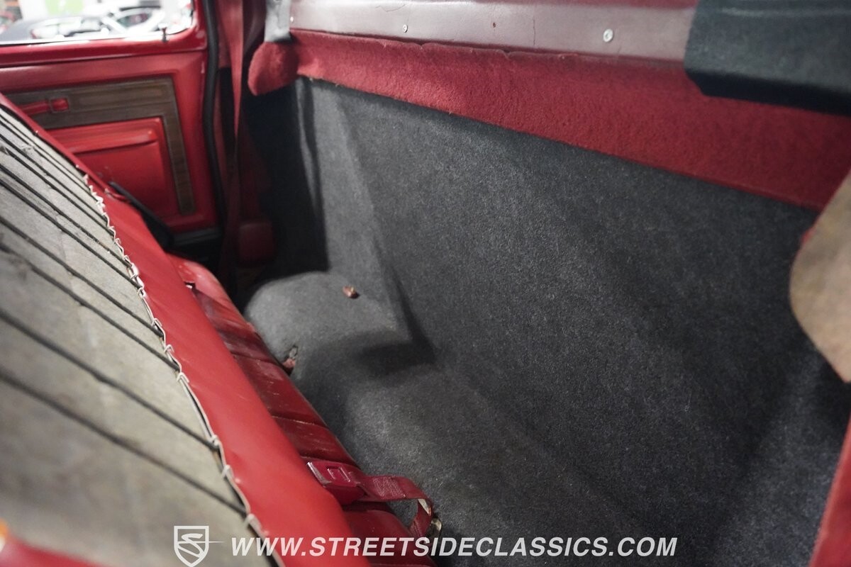 Inside is a tasteful full red package. The carpeting, door panels, and seat have the kind of clean look that makes this an easy place to spend some time. You may choose to do some updating like adding a modern stereo or restoring the factory air conditioning, but this already has the solid pickup kind of attitude that makes you love a robust classic. In fact, everything from the working map light to the smooth wood-like trim has the simple but neat feeling that makes this retro-cool.