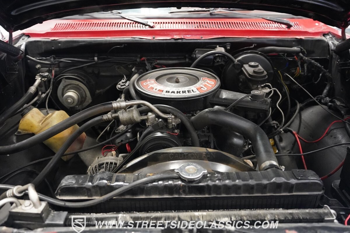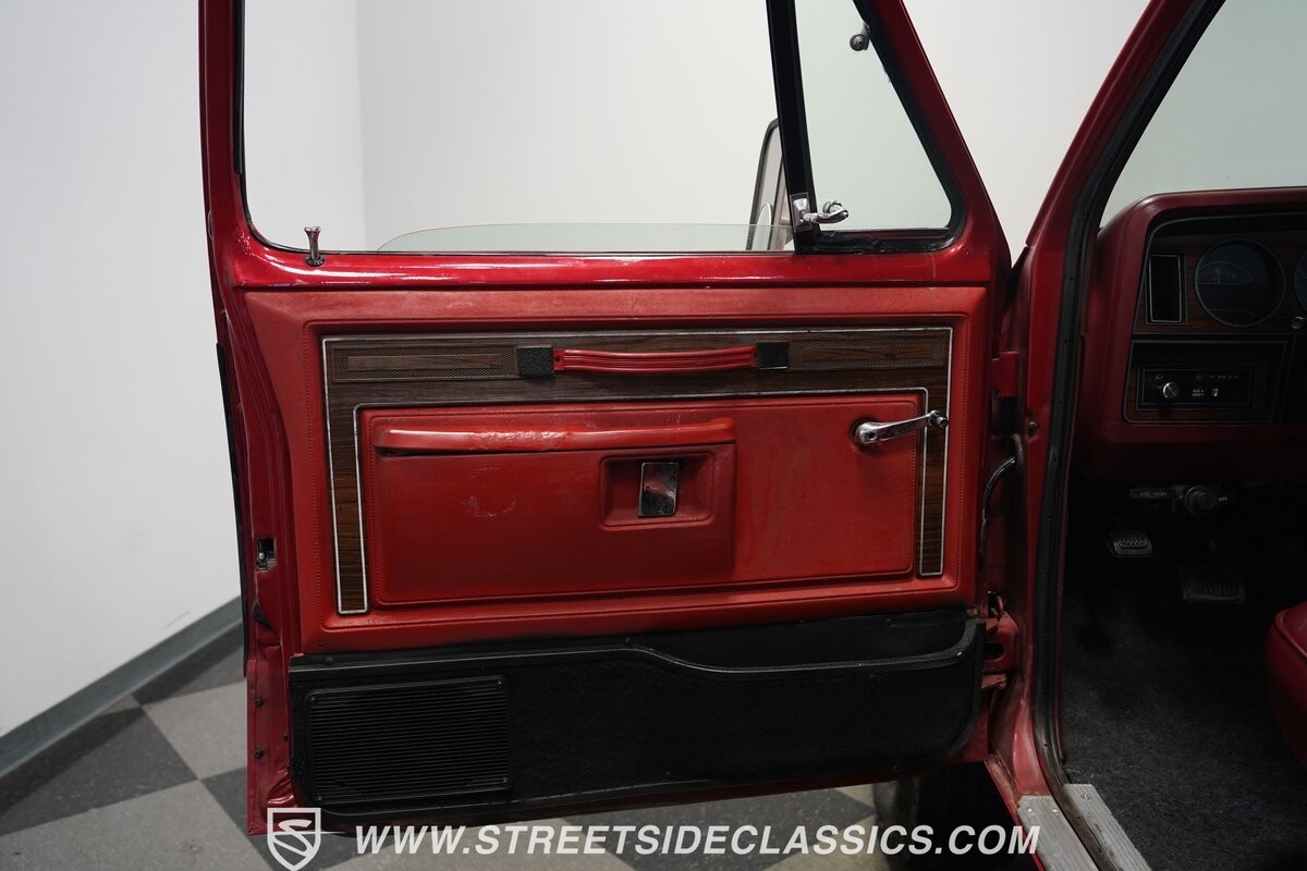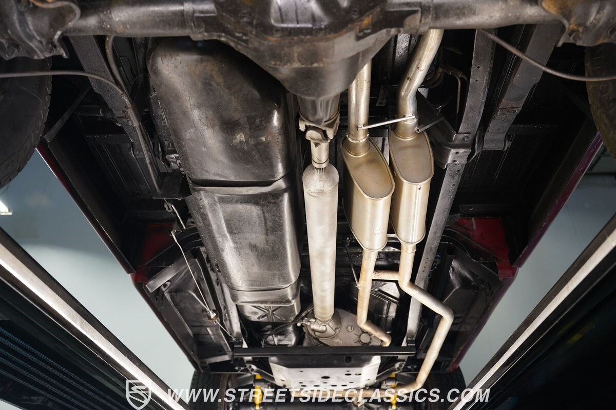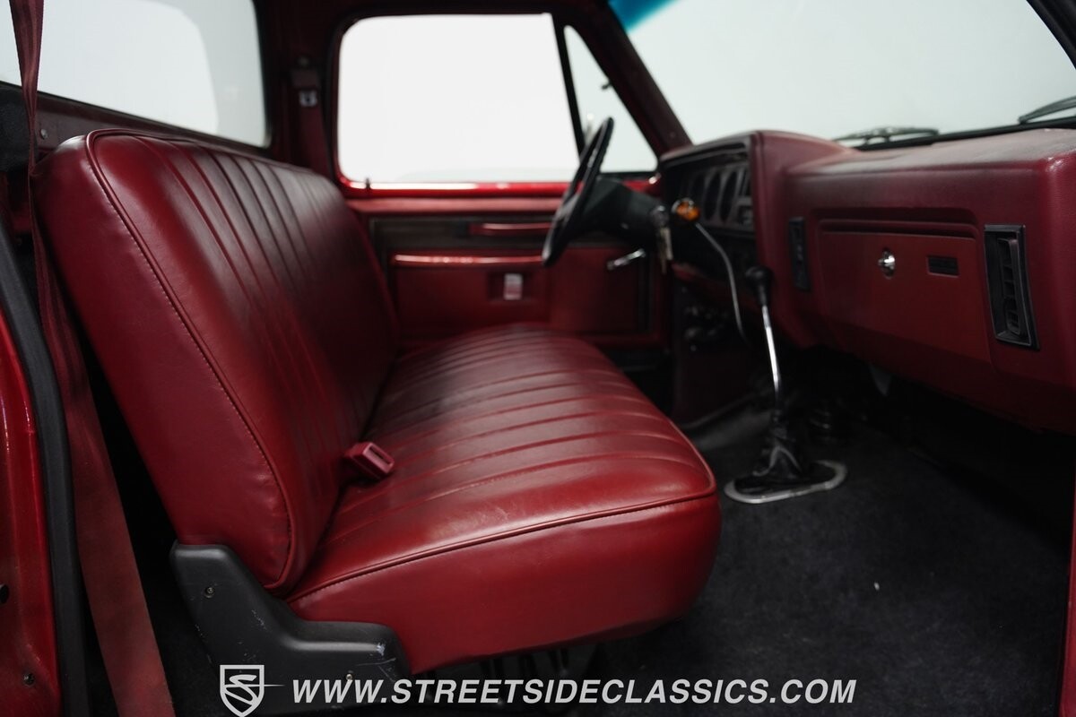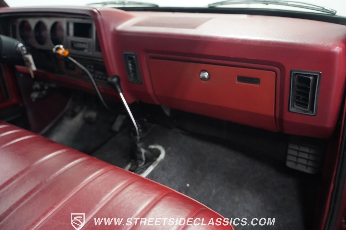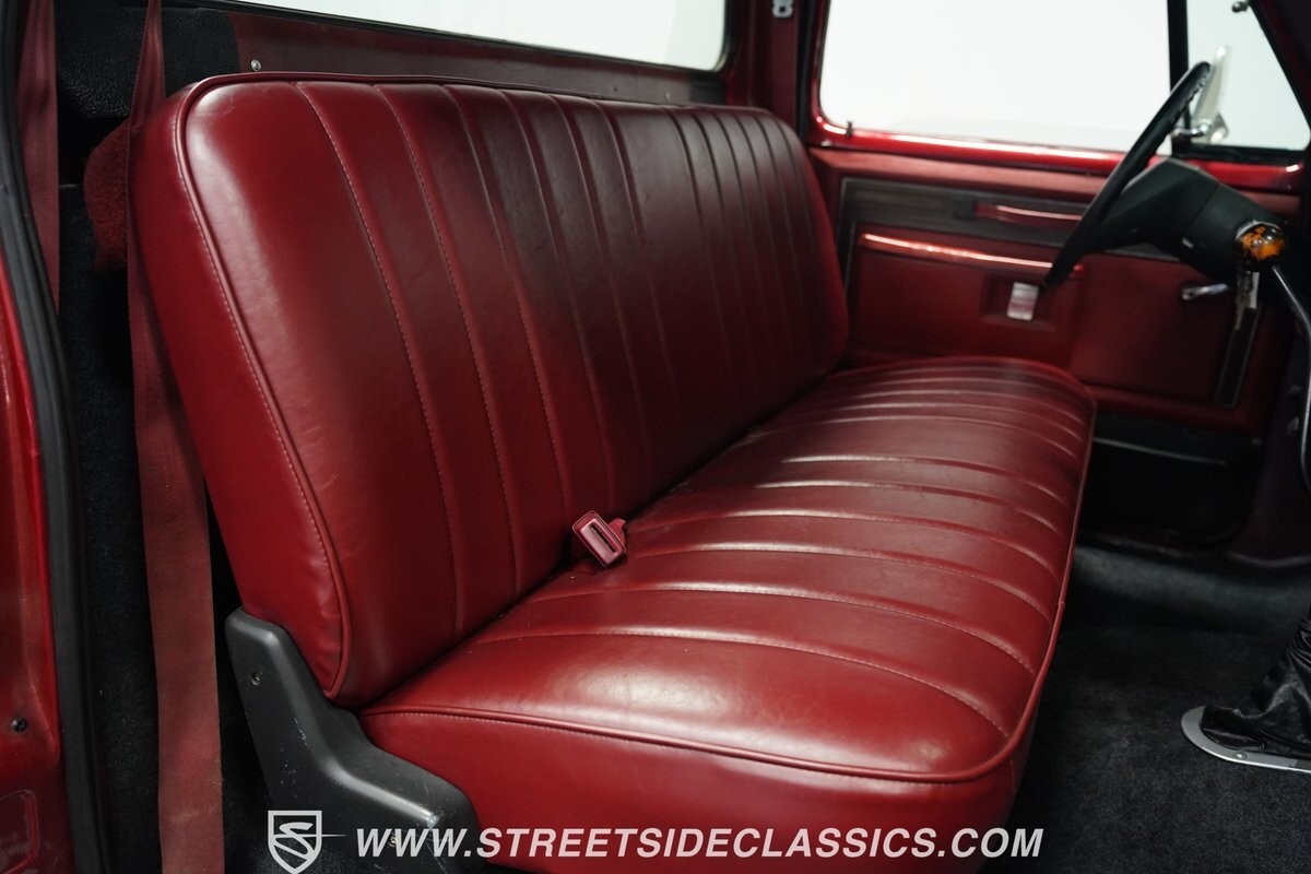 Inside is a tasteful full red package. The carpeting, door panels, and seat have the kind of clean look that makes this an easy place to spend some time. You may choose to do some updating like adding a modern stereo or restoring the factory air conditioning, but this already has the solid pickup kind of attitude that makes you love a robust classic. In fact, everything from the working map light to the smooth wood-like trim has the simple but neat feeling that makes this retro-cool.