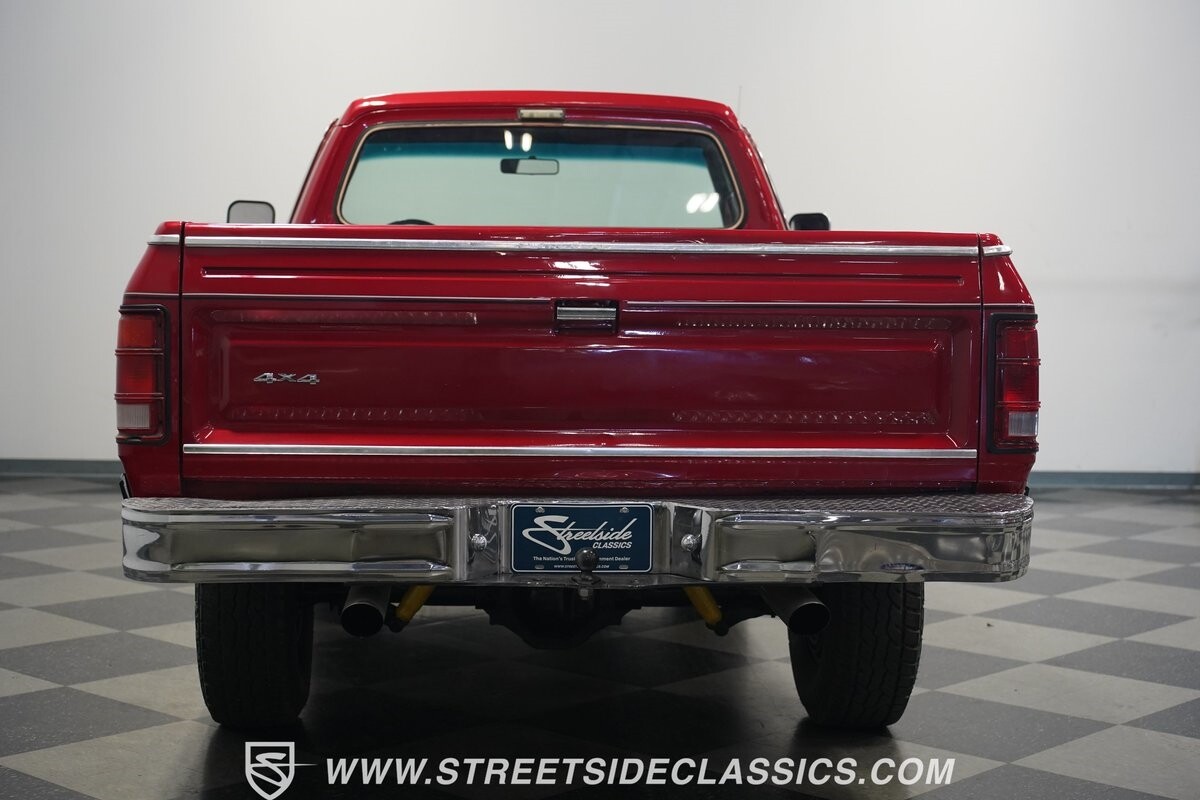 Under the hood is proper Dodge power. The 318 cubic-inch V8 has a reputation for being a hardy powerhouse. It looks stock and well-maintained, which is why this one continues to feel like a robust pickup. The two-speed transfer case gives you true go-anywhere 4x4 ability. And for those who want to get the most out of this package, the four-speed manual transmission is a great feature to have. It has a low first gear that instantly delivers some serious torque. And features like power steering, power brakes, front discs, and new shocks keep this classic an easy cruiser.