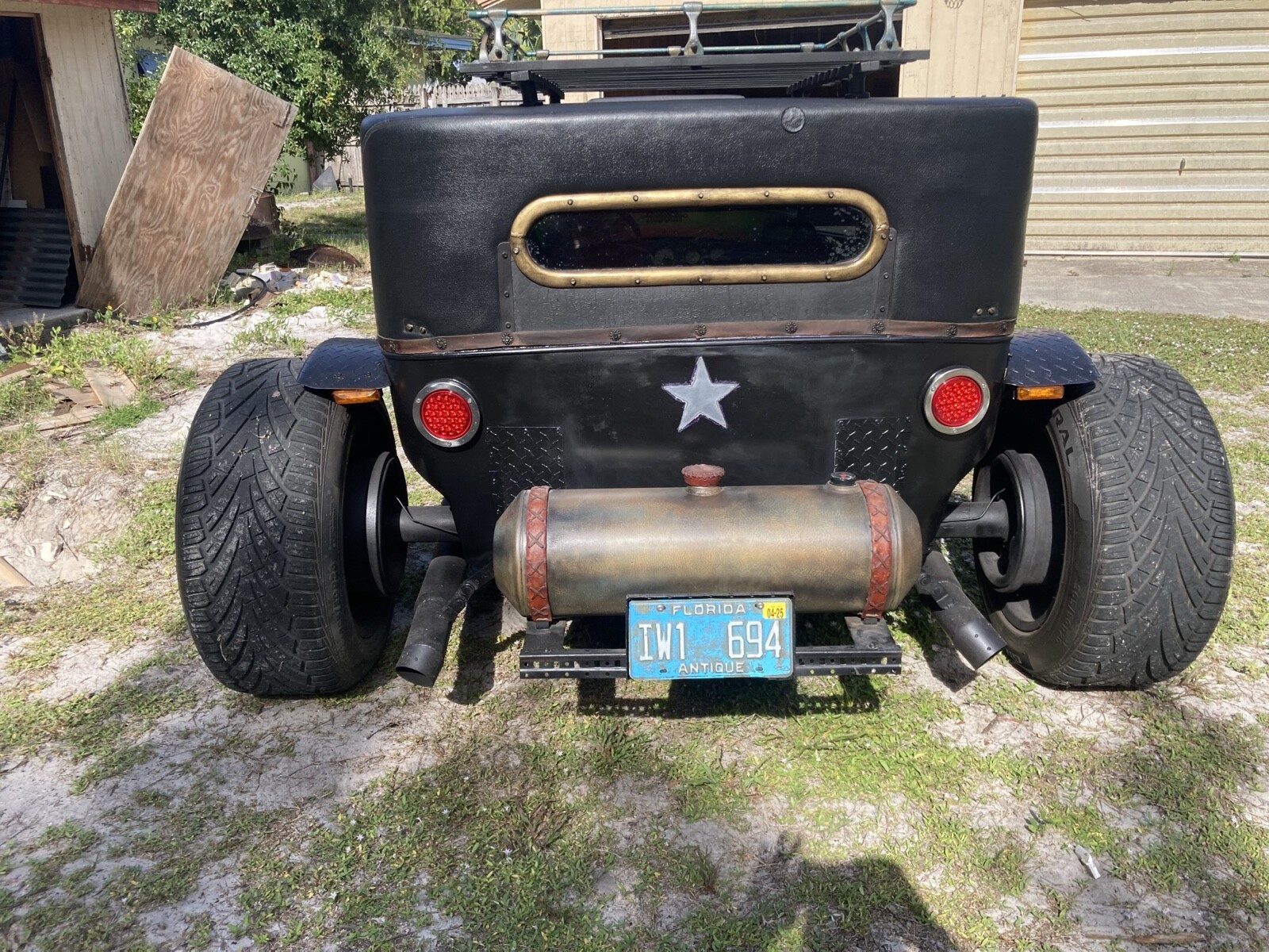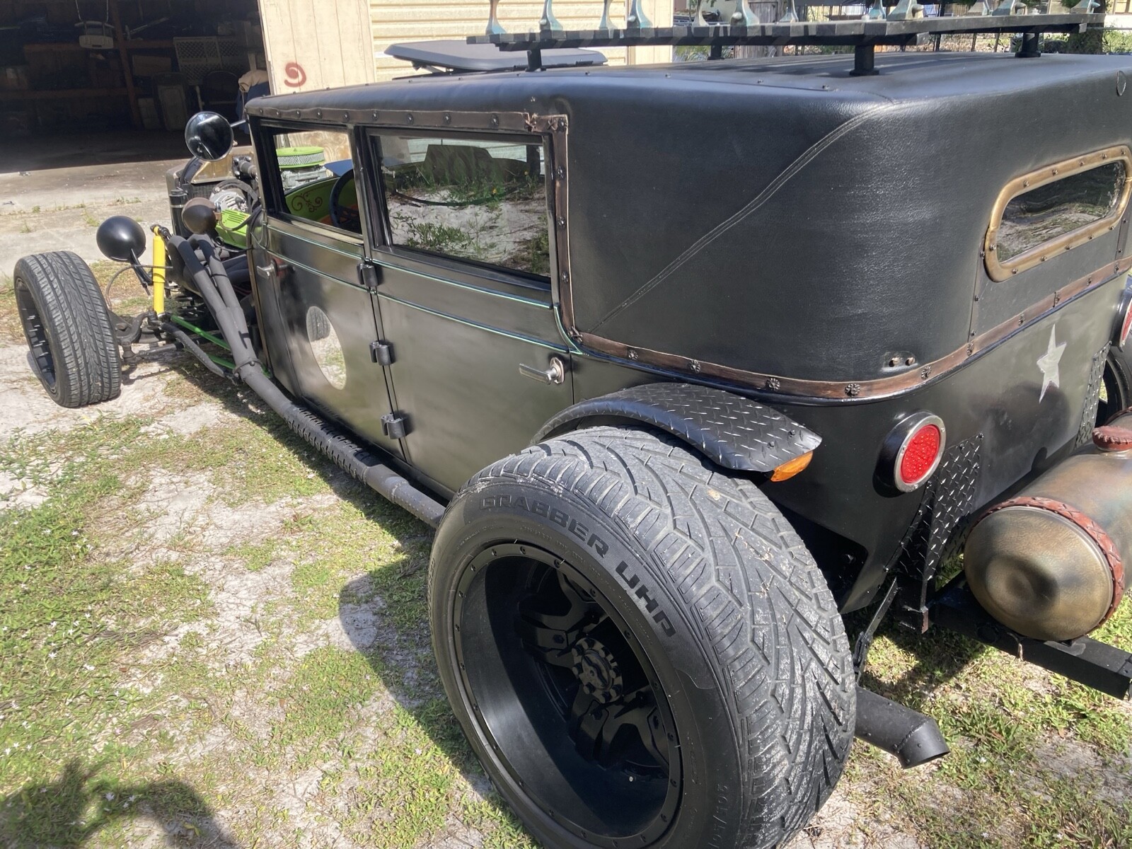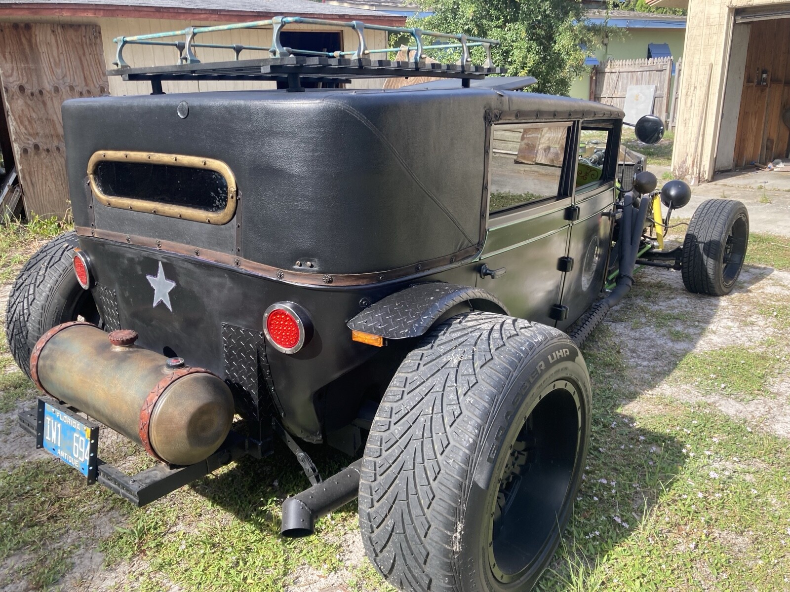 Exterior: Black patina with pin-stripping. Sun-visor from a rare antiquated crosscut saw. All doors & windows functional. Headlights 12 Antique brass, modern internal elements, cowl turn signal original 29 Hudson. Heavy duty brass radiator serviced annually, NO overheating problems. Gas tank new aluminum w/ Patina added & 2-reserve tanks.