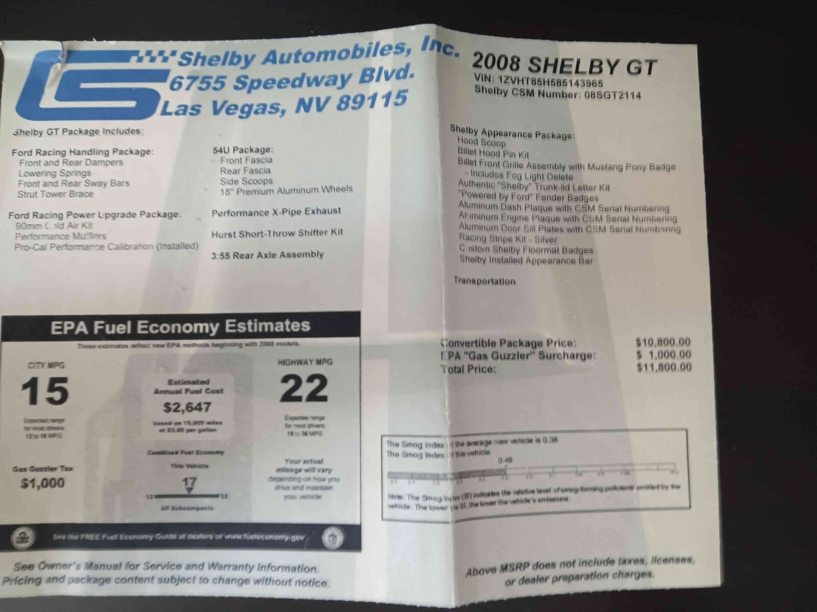 This 2008 Ford Mustang Convertible is an original Shelby GT/SC car with all paperwork. The owner has had it for 10+ years. The vehicle runs great and is mainly used for car shows.Seller's Notes
