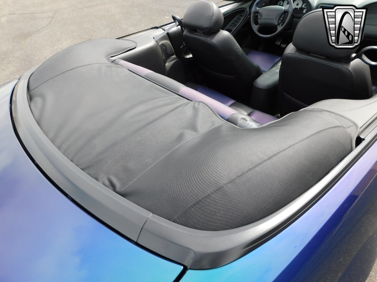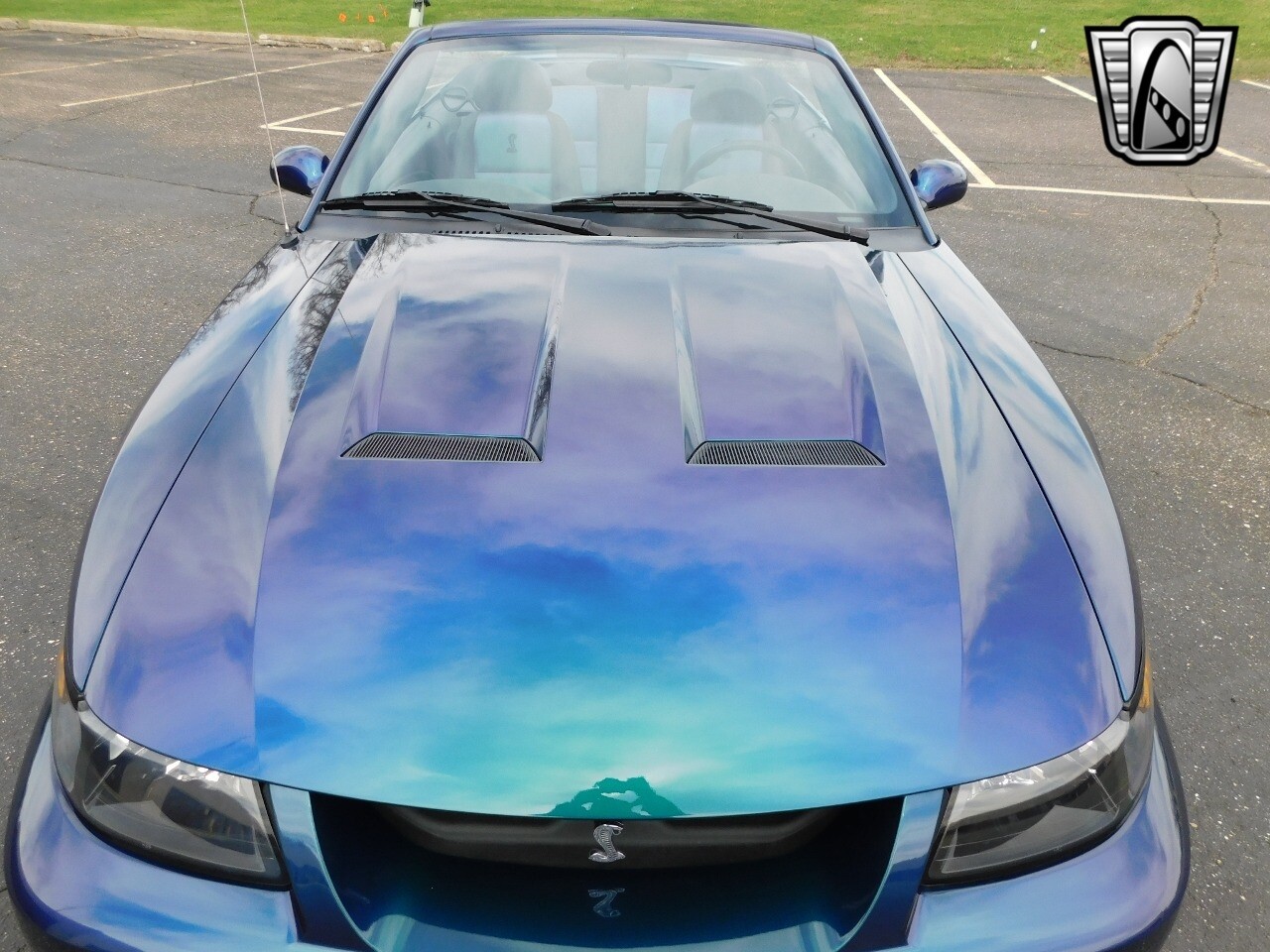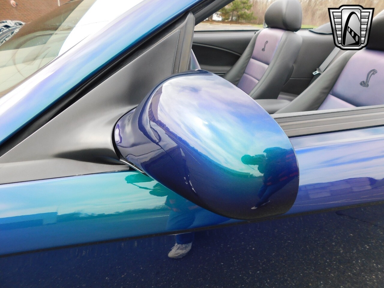 Vibrant colors have been a part of the Mustang's history since it's beginning, with colors such as Grabber Blue, Screaming Yellow, and Twister Orange which each have their own following in some way. But one color (or colors), in particular, has stood out from anything any other car manufacturer has produced, even to this day. Finished in the ultra rare color changing Mystichrome paint, with just 495 Convertibles made this year and just 515 coupes. A mix of blue, green, purple, brown, and black hues, Mystichrome was one of the most complex paint jobs ever offered on any car. SVT worked directly with Garden State Tanning to get the Mystichrome color in the leather inserts found on the Cobra's Front and rear seats. The Mystichrome leather production process required dying the leather black, then spraying the Special Mystichrome paint directly onto the leather, finally sealing it with clear to protect/prevent damage to the color-changing seat inserts. The steering wheel also had the Mystichrome color at the 2, 6, & 10 o'clock positions for a stand-out and unique appearance.