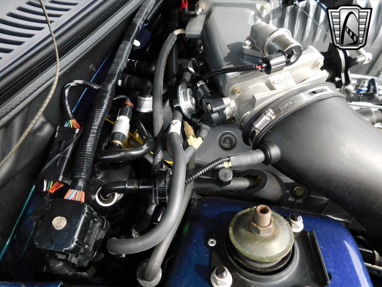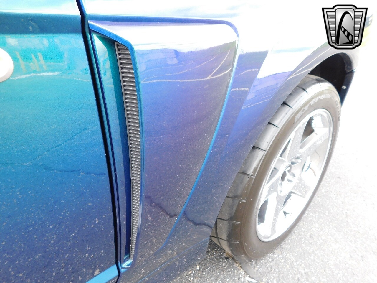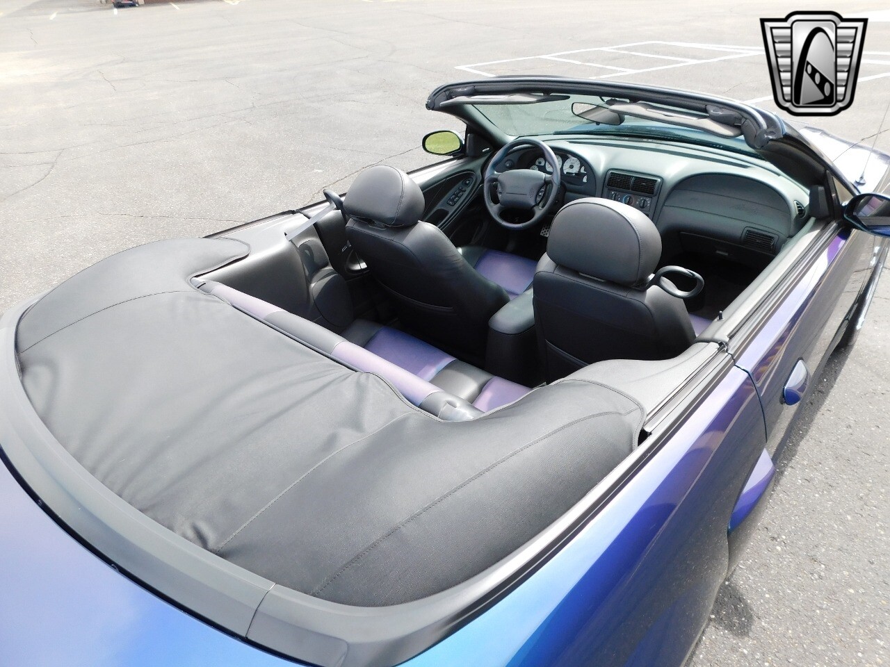Vibrant colors have been a part of the Mustang's history since it's beginning, with colors such as Grabber Blue, Screaming Yellow, and Twister Orange which each have their own following in some way. But one color (or colors), in particular, has stood out from anything any other car manufacturer has produced, even to this day. Finished in the ultra rare color changing Mystichrome paint, with just 495 Convertibles made this year and just 515 coupes. A mix of blue, green, purple, brown, and black hues, Mystichrome was one of the most complex paint jobs ever offered on any car. SVT worked directly with Garden State Tanning to get the Mystichrome color in the leather inserts found on the Cobra's Front and rear seats. The Mystichrome leather production process required dying the leather black, then spraying the Special Mystichrome paint directly onto the leather, finally sealing it with clear to protect/prevent damage to the color-changing seat inserts. The steering wheel also had the Mystichrome color at the 2, 6, & 10 o'clock positions for a stand-out and unique appearance.