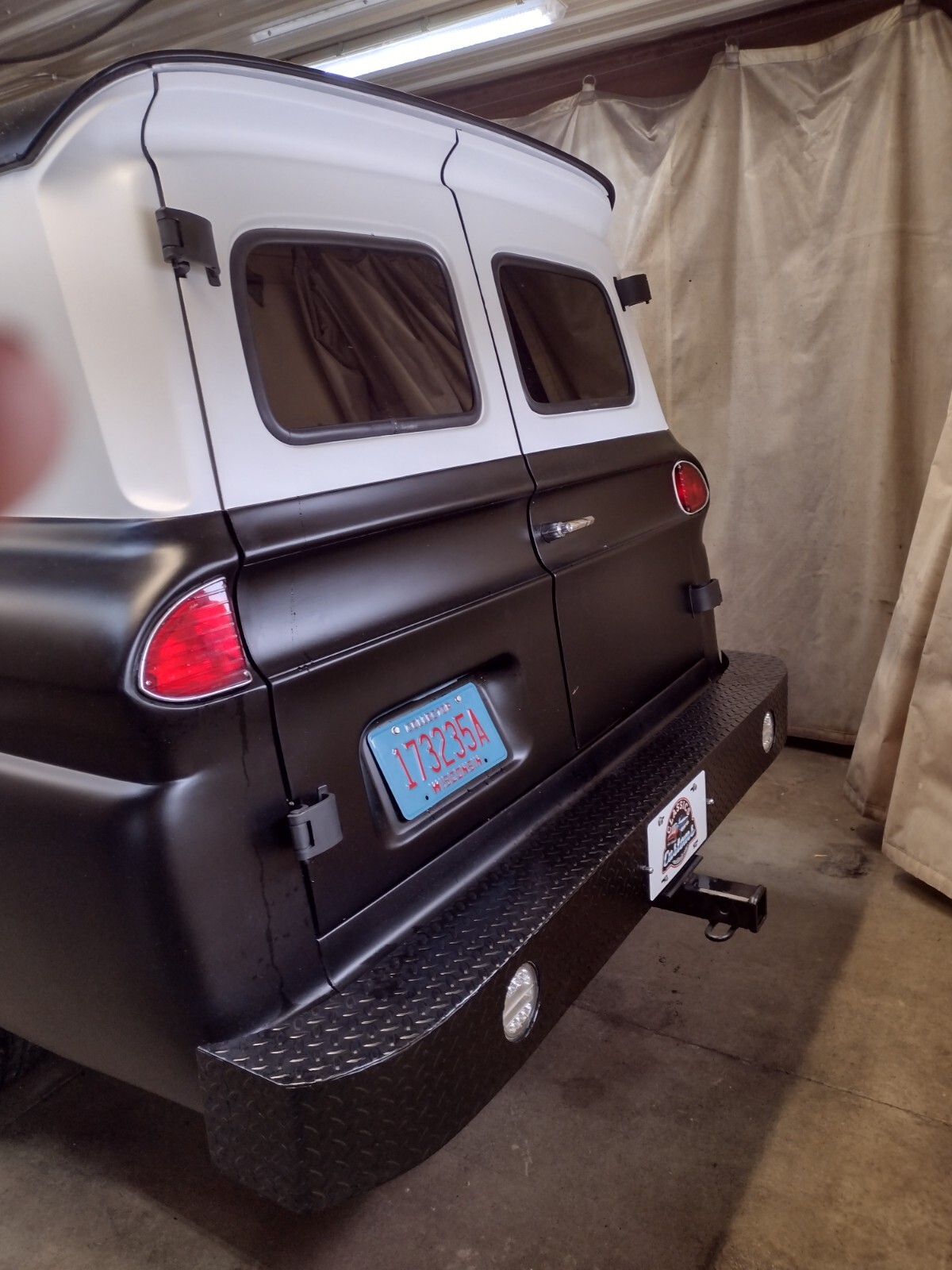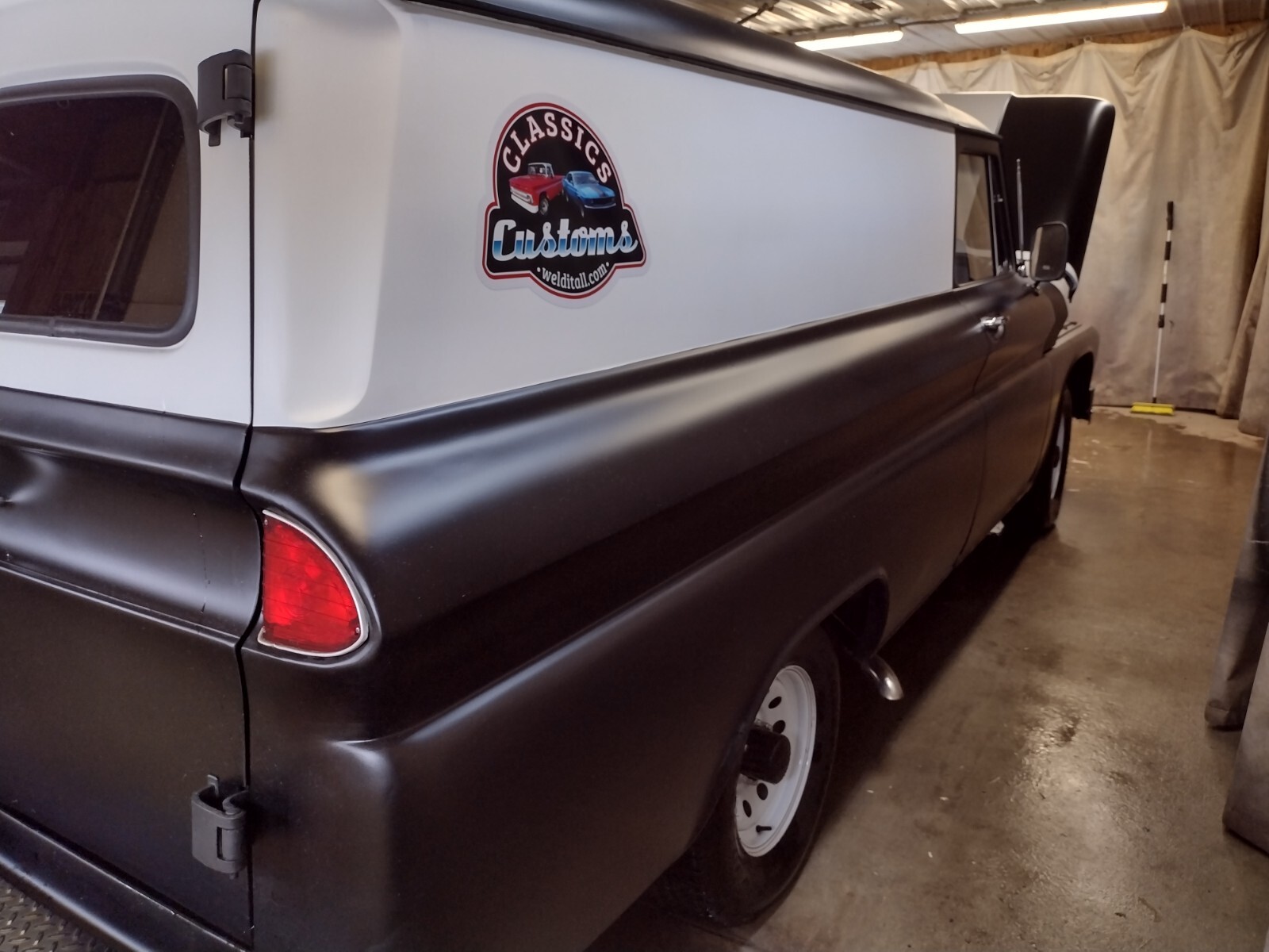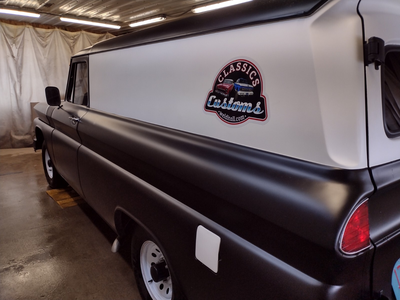 1965 gmc panel truckrebuilt 700r4 4 speed auto w/odPower steering all new steering components with close ratio gear boxPower disk brakesrebuilt 12 bolt 3.73 ratio with posinew al radiatorNew ac unitnew leather seatsall new rubberNew tint glasswestern truckretro sound stereonew tires and rimsnew gaugesdual stainless exhaustRuns, drives great, with lots of power