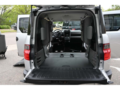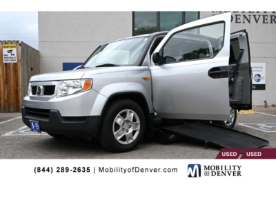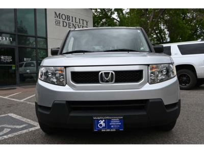 Door Opening Height: 56" and width: 29". Time Capsule: 1,100 original miles. 2011 Honda Element LX Freedom Motors xWav Power Side Entry SUV for sale. This unique vehicle converted by Freedom Motors is a driver capable wheelchair accessible SUV. It is well designed and offers an alternative to the traditional minivan conversions. The floor has been lowered and the doors modified so that a side ramp comes out to offer access for a full-sized wheelchair on the Driver's side with removable front seats, an even rarer option. This low mileage well maintained SUV features; beautiful Silver exterior, tan cloth interior, steel wheels, 90% tire tread life, lowered rubberized floor, power side load, wide bi-fold ramp, Driver's Side EZ-Lock L-Channel restraint system rails, manual Q'Straint wheelchair restraint straps, AM/FM/CD player sound system, key-less remote with power windows, locks, and mirrors, rear privacy glass, hot Heat and cold AC, cruise control, electronic parking brake, quick and efficient 2.4L Honda 4-Cylinder motor with front wheel drive, and much more. This vehicle is currently available for sale at Mobility of Denver, located at: 2311 S Platte River Drive, Denver CO 80223. We don't charge a Dealer Handling Fee and are now your mobility one-stop-shop. Just give us a call as we offer it all: sales, service, parts, and rentals. Open M-F 9am - 6pm. Sat by appt. Call 303-351-7379.