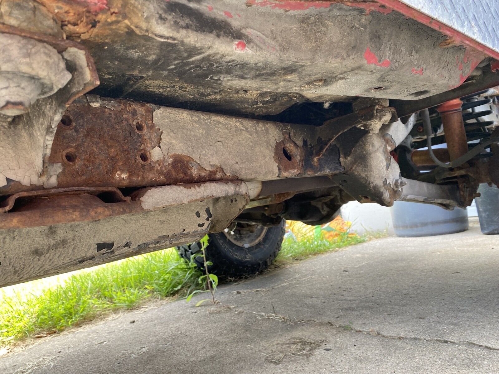 She’s a project. Needs new tub, or more panels than the driver’s floorboard that’s included. Frame is good, no rust through. Was running and driving when parked, due to leaking fuel line. My son may have that fixed soon, and I’ll also list it locally at that point in time and update this listing. Engine was rebuilt around 150,000 miles and runs good. AX-5 manual lost fifth gear, recommend replacing with an AX-15. Tires have less than 1,000 miles on them, comes with full and half doors and hard top. Feel free to request any specific pictures. Cash at pickup, local pickup in Warsaw, IN.