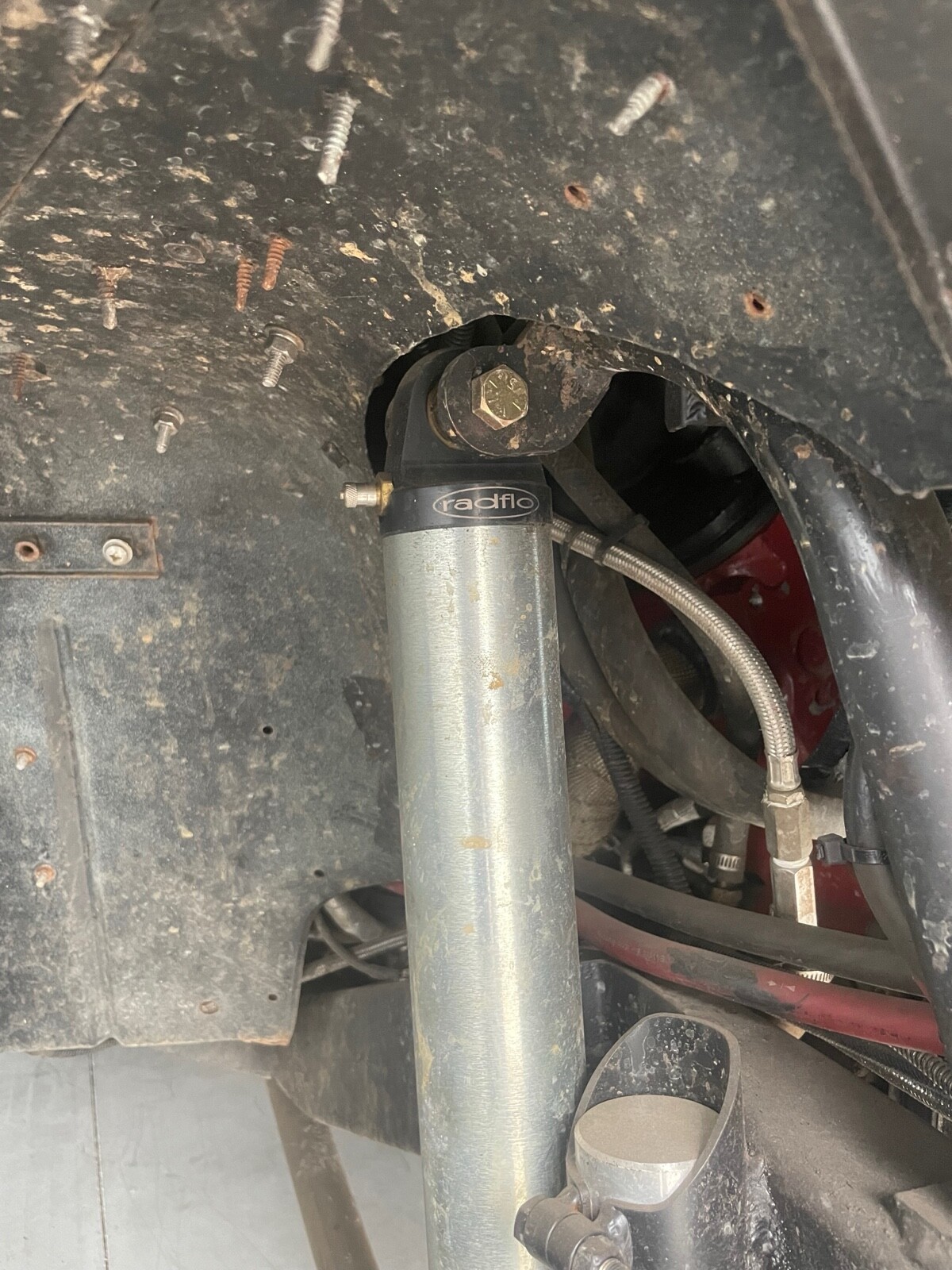 -Front: Metal Cloak Lock N Load radius arm, Radflo 2.5 airshocks, Rear: 4 link suspension, Radflo 2.5 air shocks.