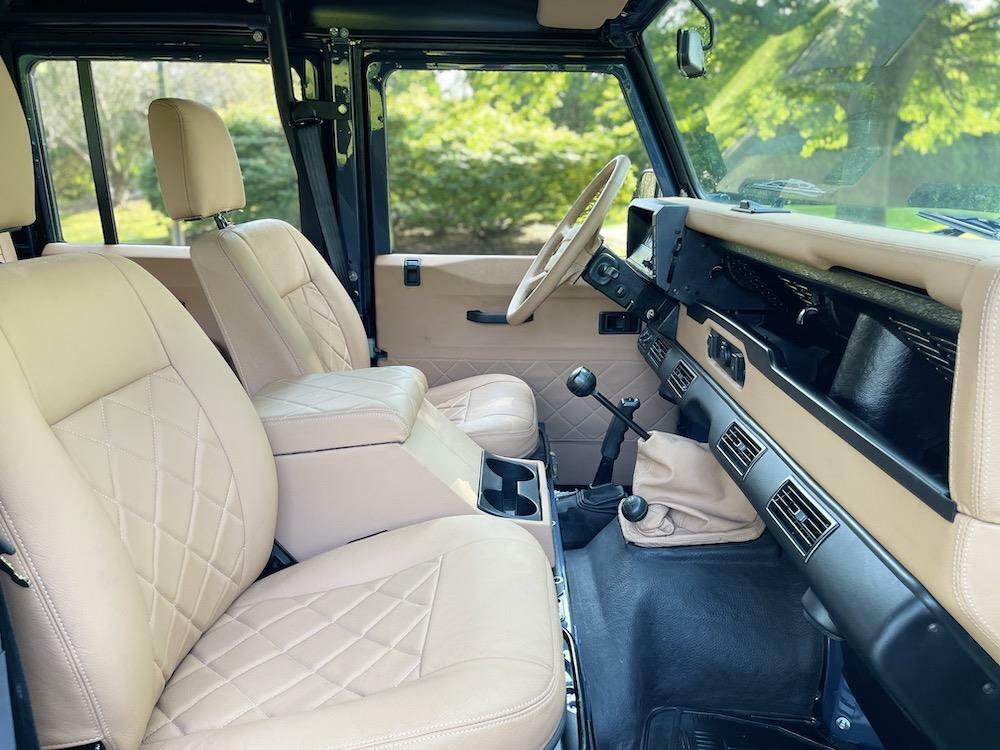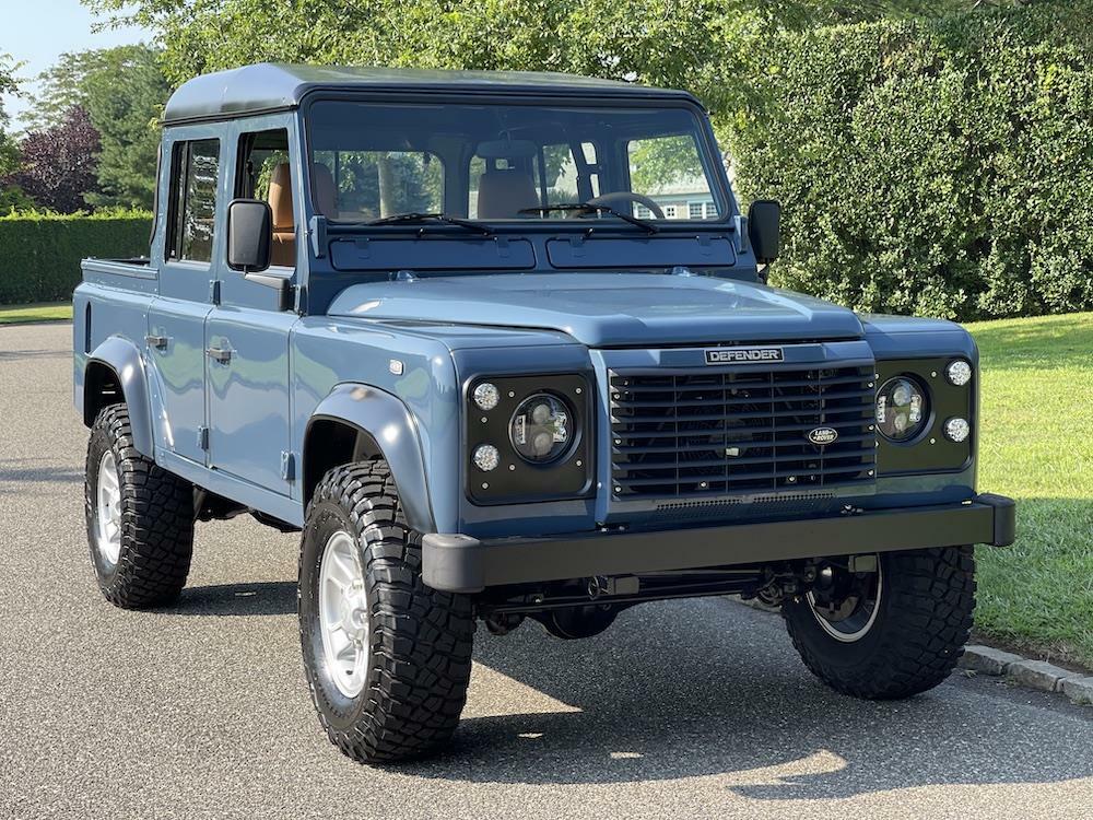 Offered for sale is a 1985 Land Rover Defender 110 Crew Cab. This example was completely restored and is in excellent condition. This defender has a gasoline V8 engine and a 5-speed manual transmission. It comes equipped with air conditioning. The seats, door panels, and dash have been refinished in high quality leather. The engine and transmission have been rebuilt. It has new brakes in the rear and the front.