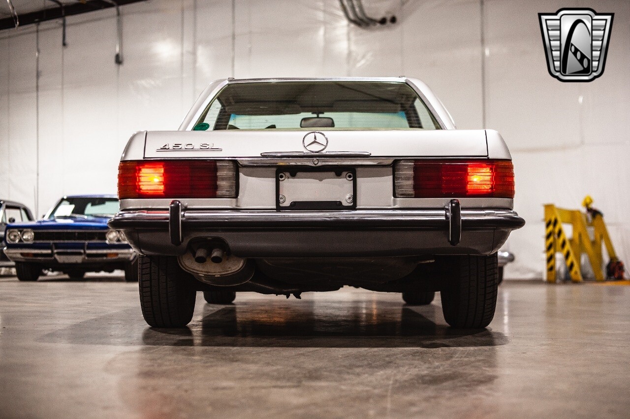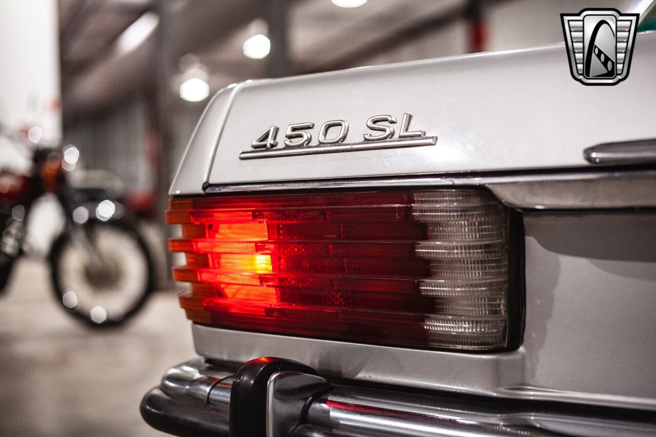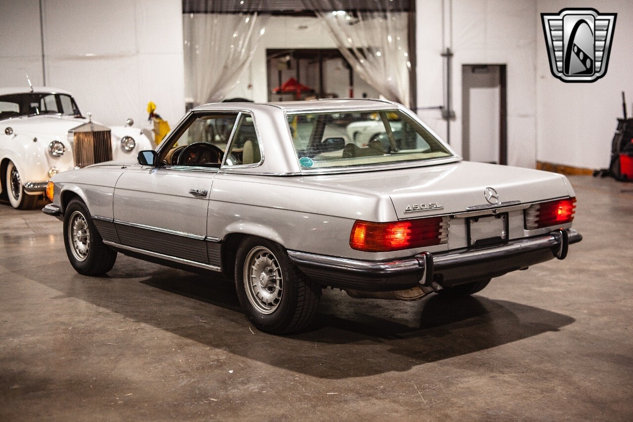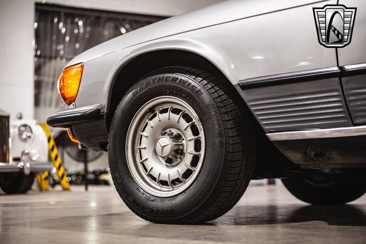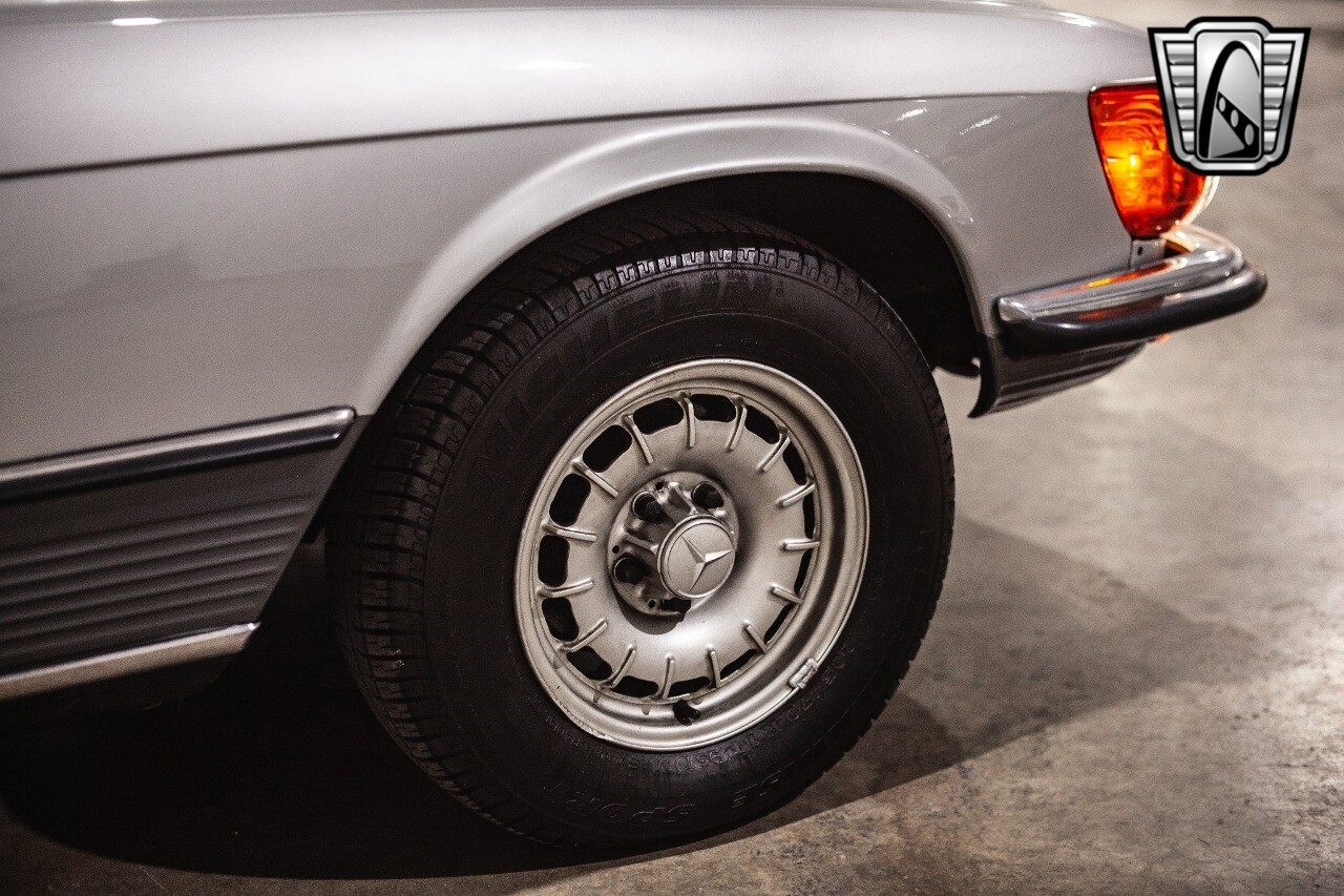 The 450SL also features aluminum wheels, adding a touch of modern style to its classic design. The car is fitted with radial tires, known for their durability and performance, ensuring a stable and comfortable ride.