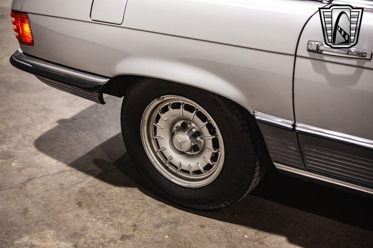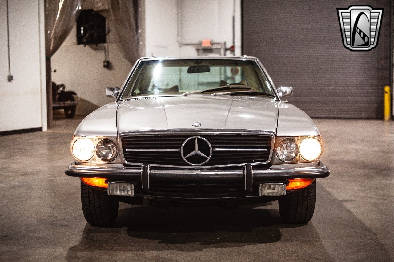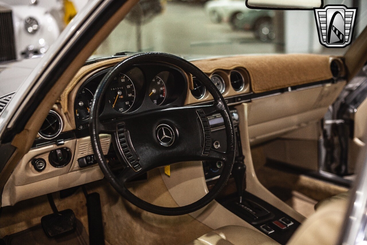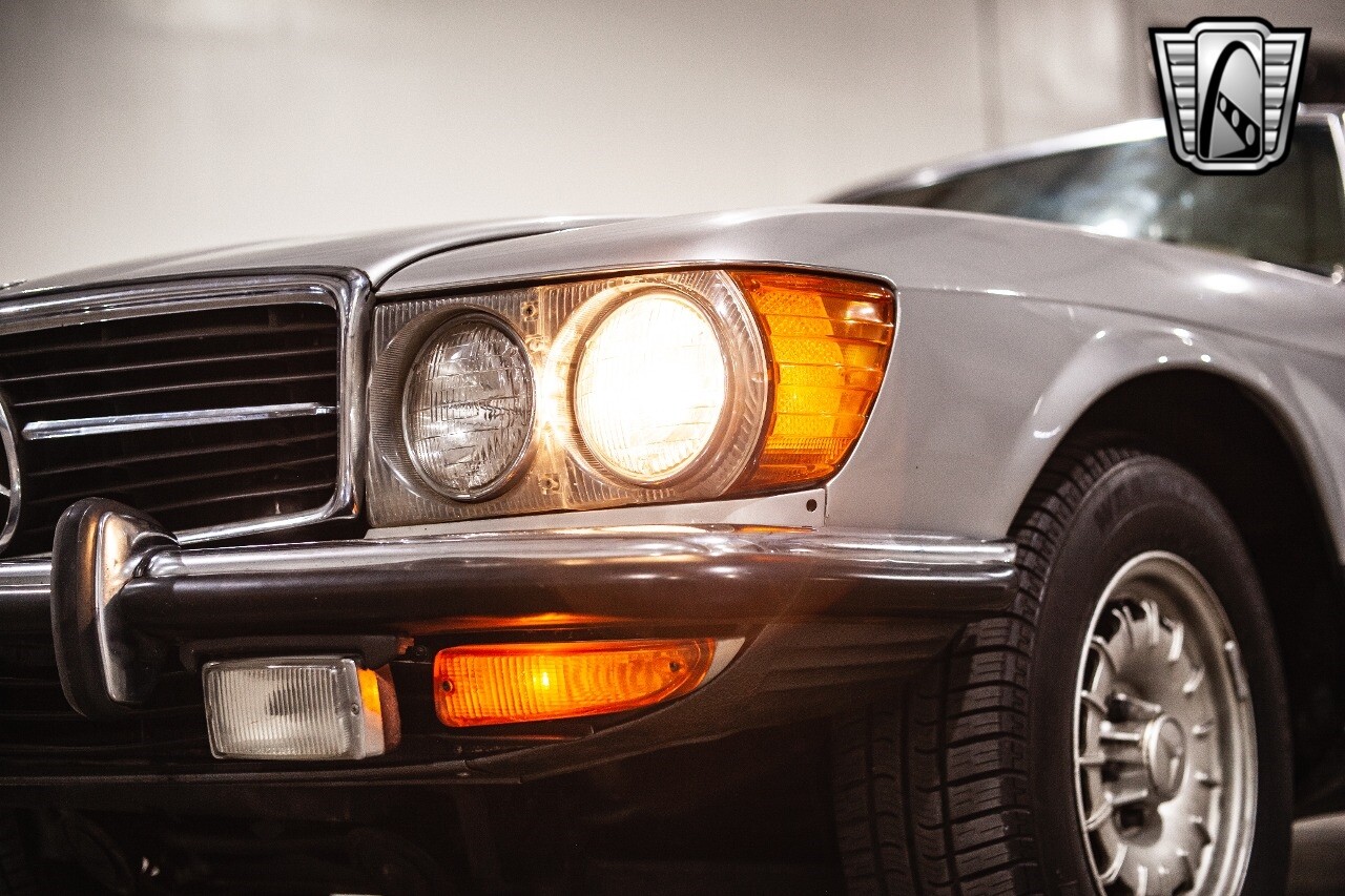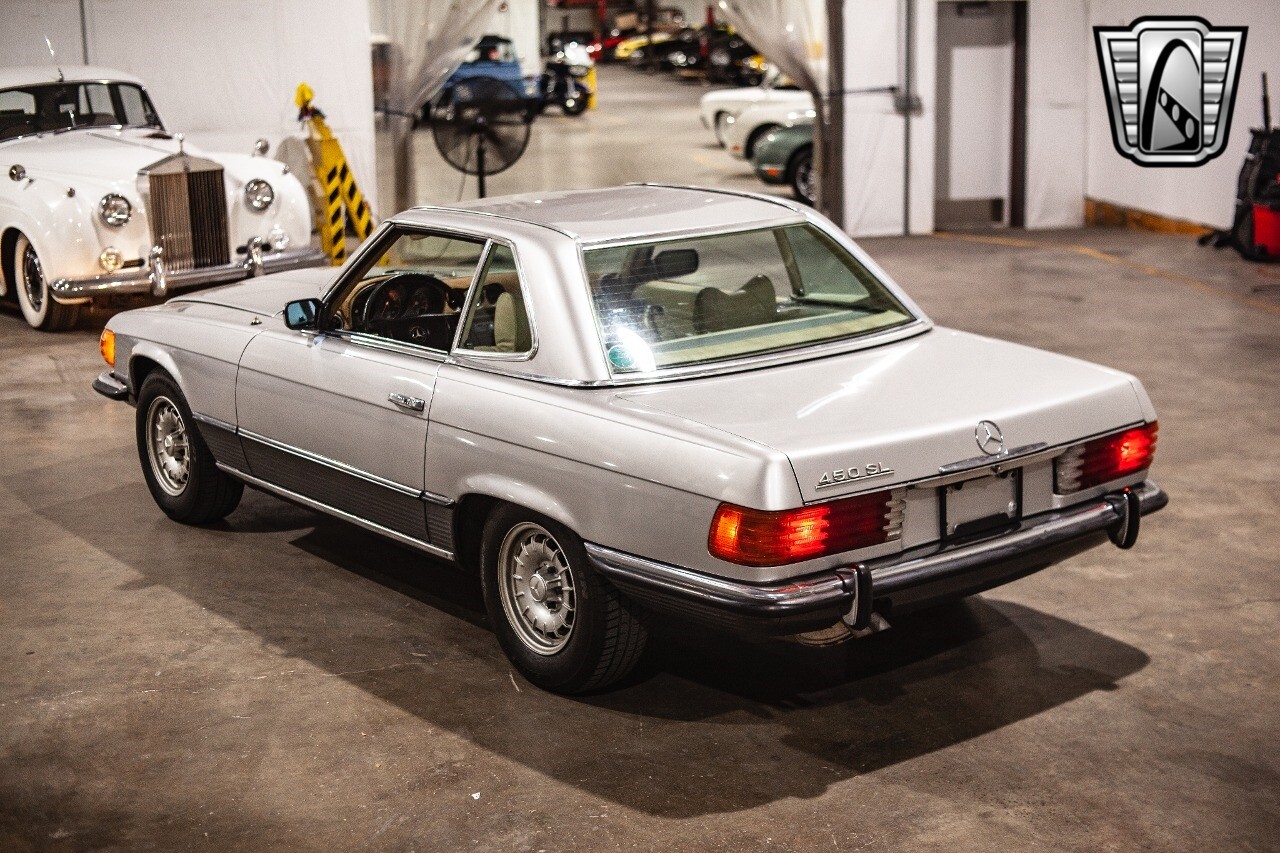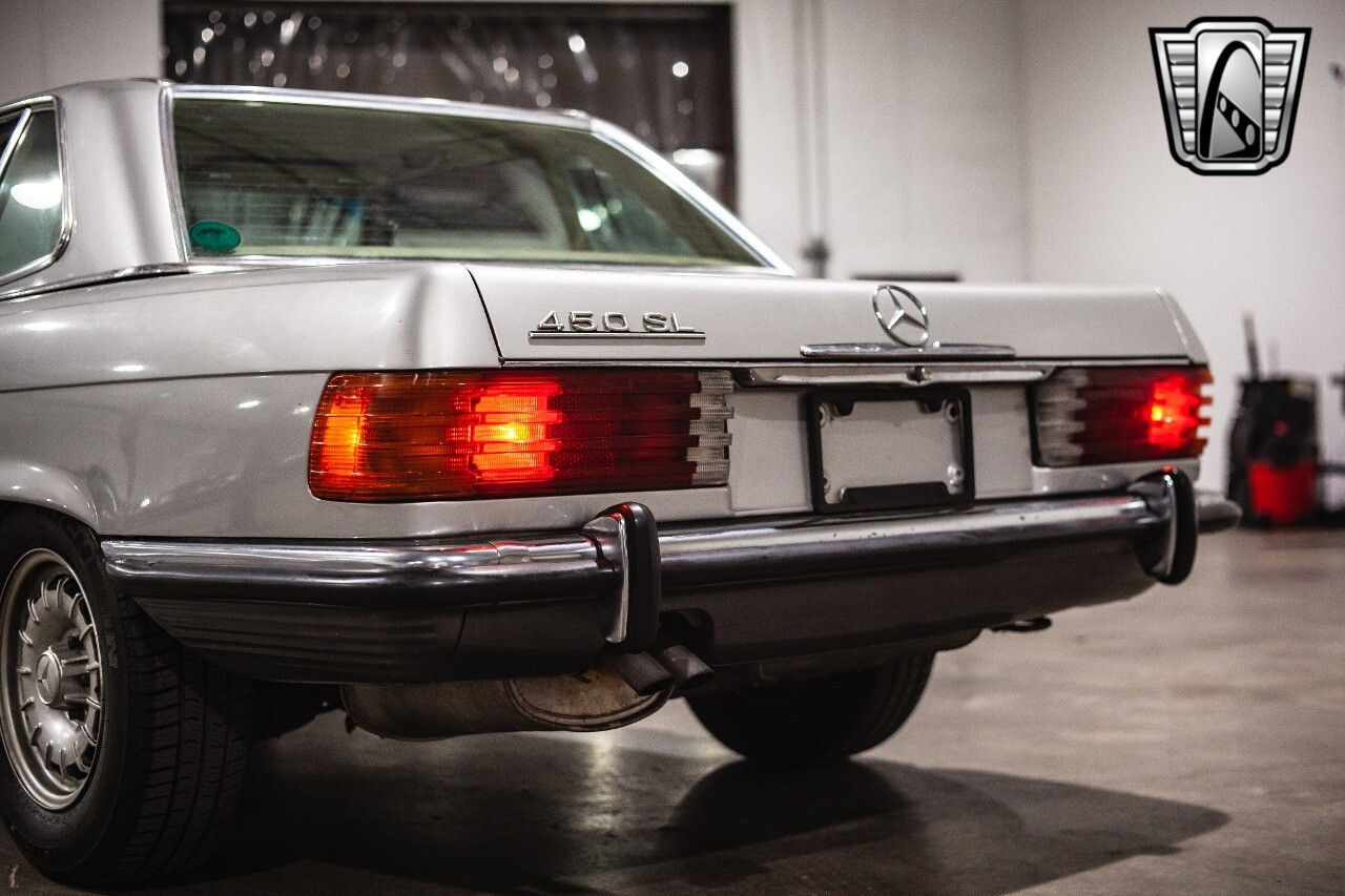 The 450SL also features aluminum wheels, adding a touch of modern style to its classic design. The car is fitted with radial tires, known for their durability and performance, ensuring a stable and comfortable ride.