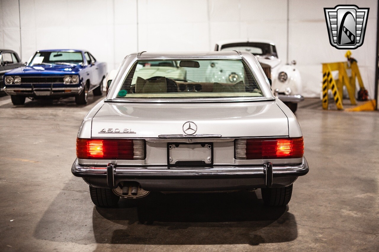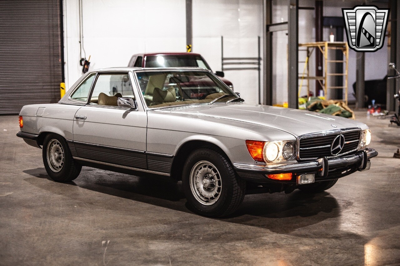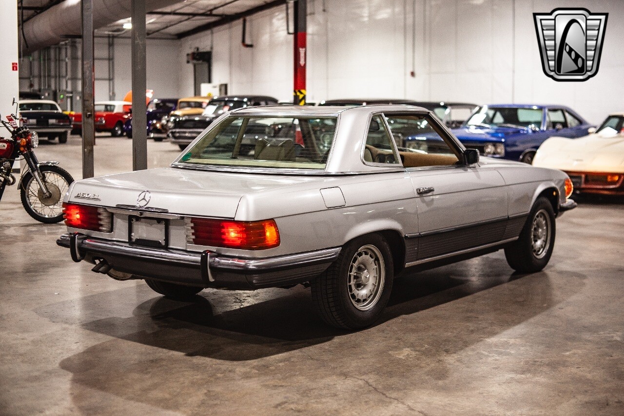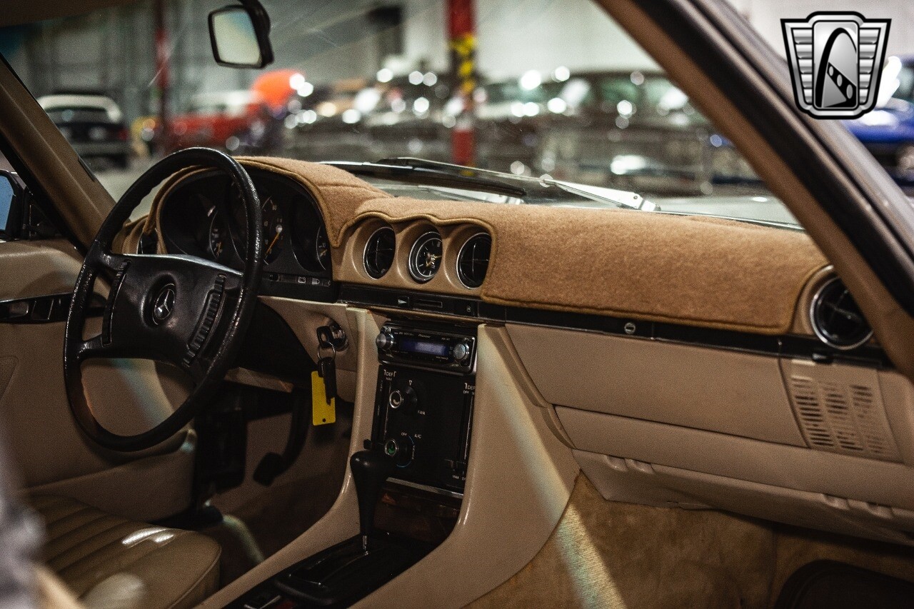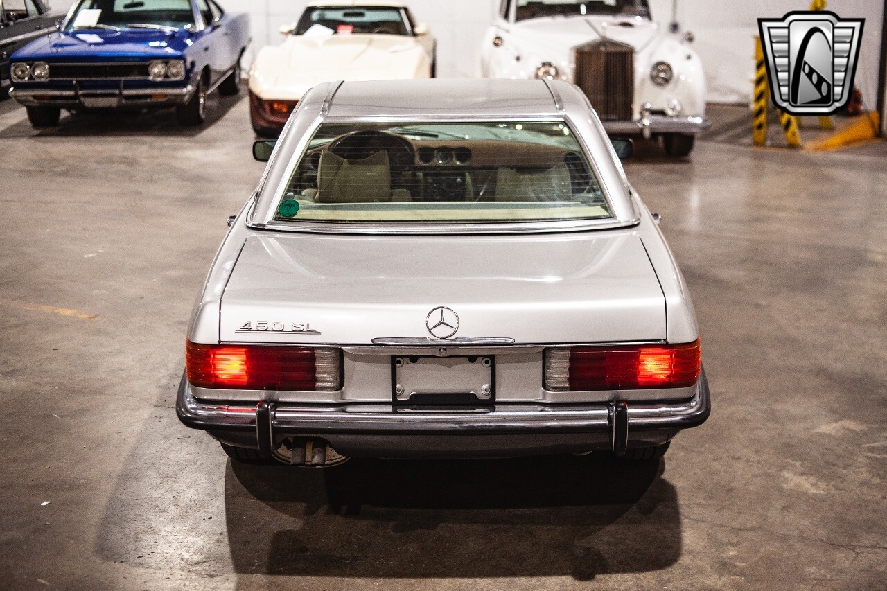 The 450SL also features aluminum wheels, adding a touch of modern style to its classic design. The car is fitted with radial tires, known for their durability and performance, ensuring a stable and comfortable ride.