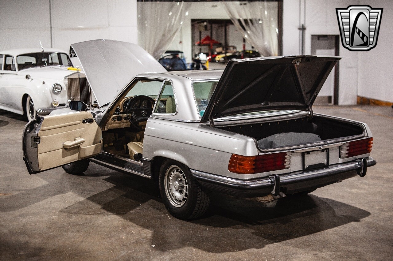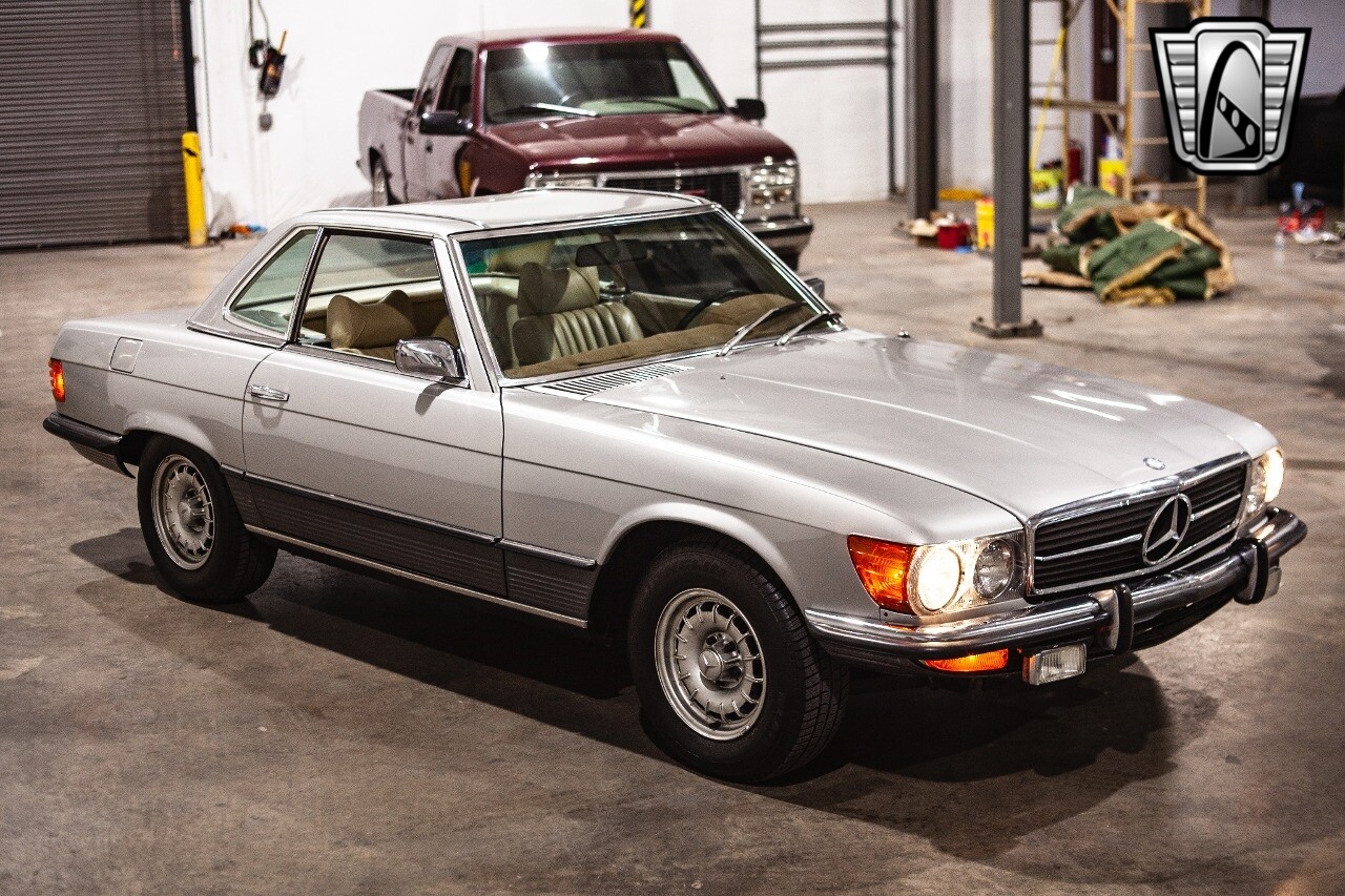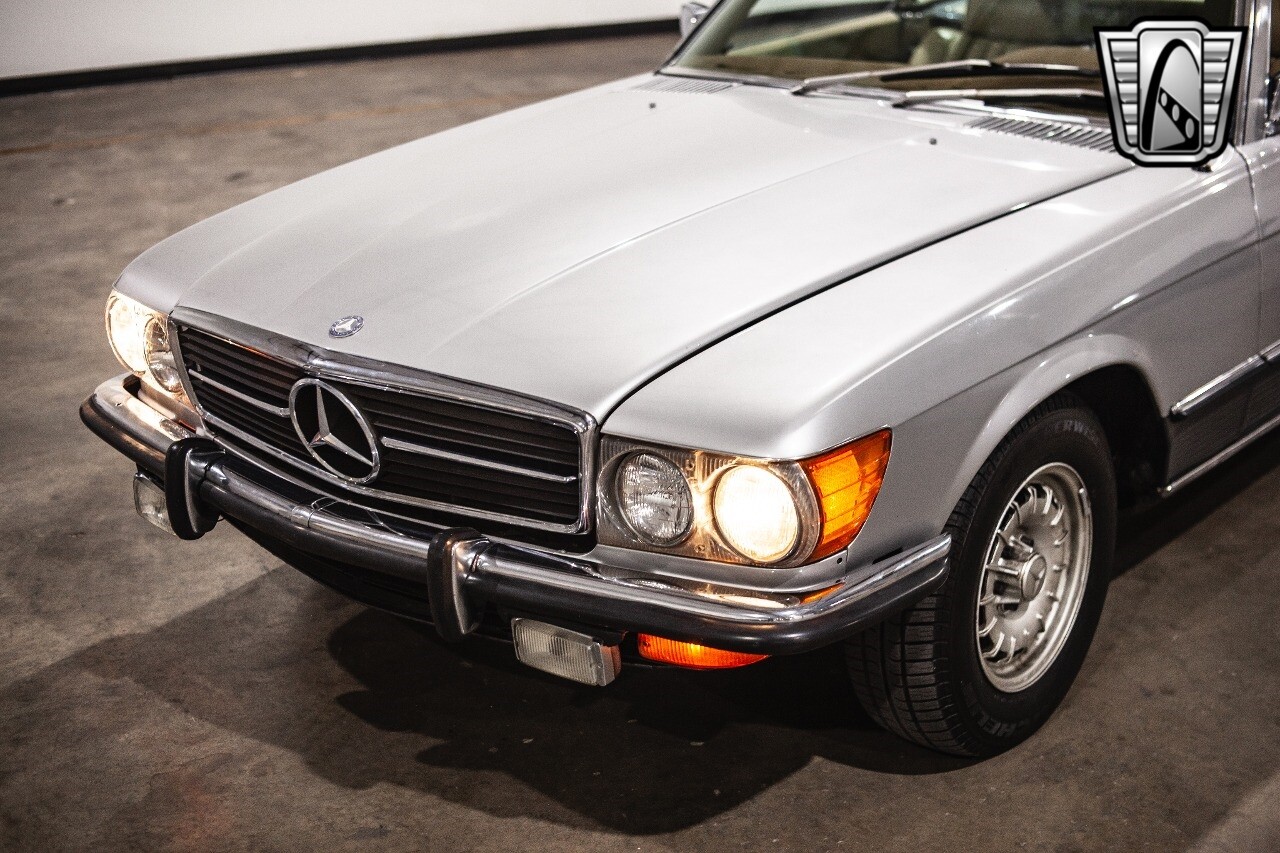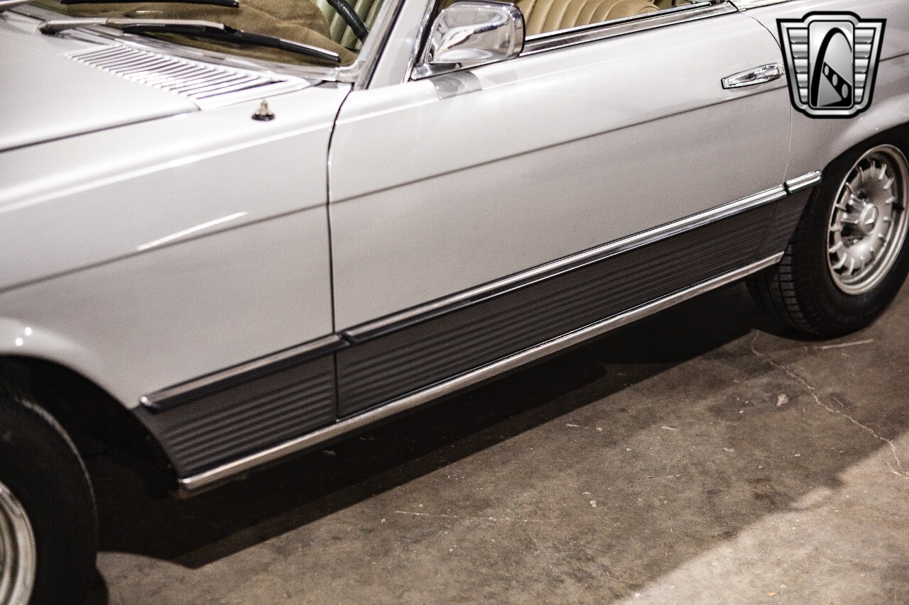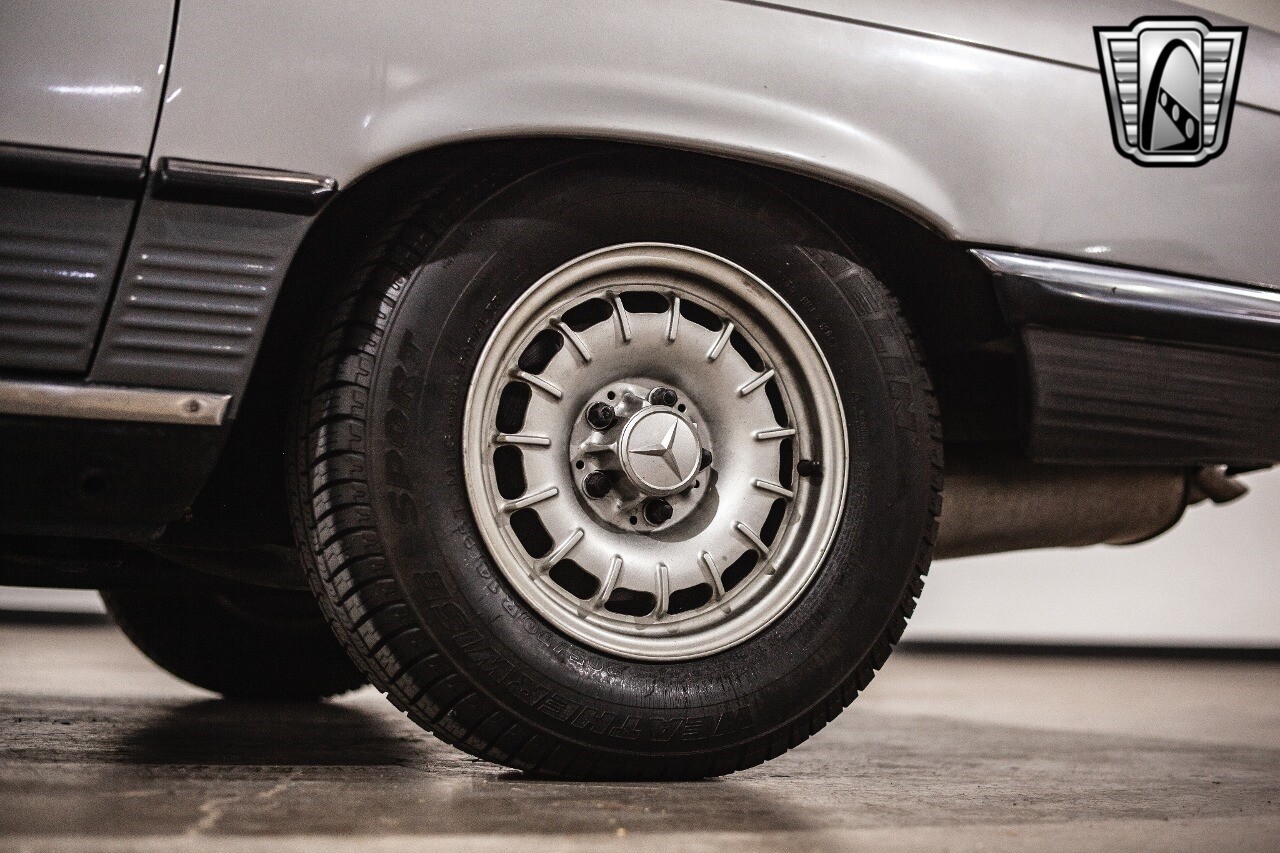 The 450SL also features aluminum wheels, adding a touch of modern style to its classic design. The car is fitted with radial tires, known for their durability and performance, ensuring a stable and comfortable ride.