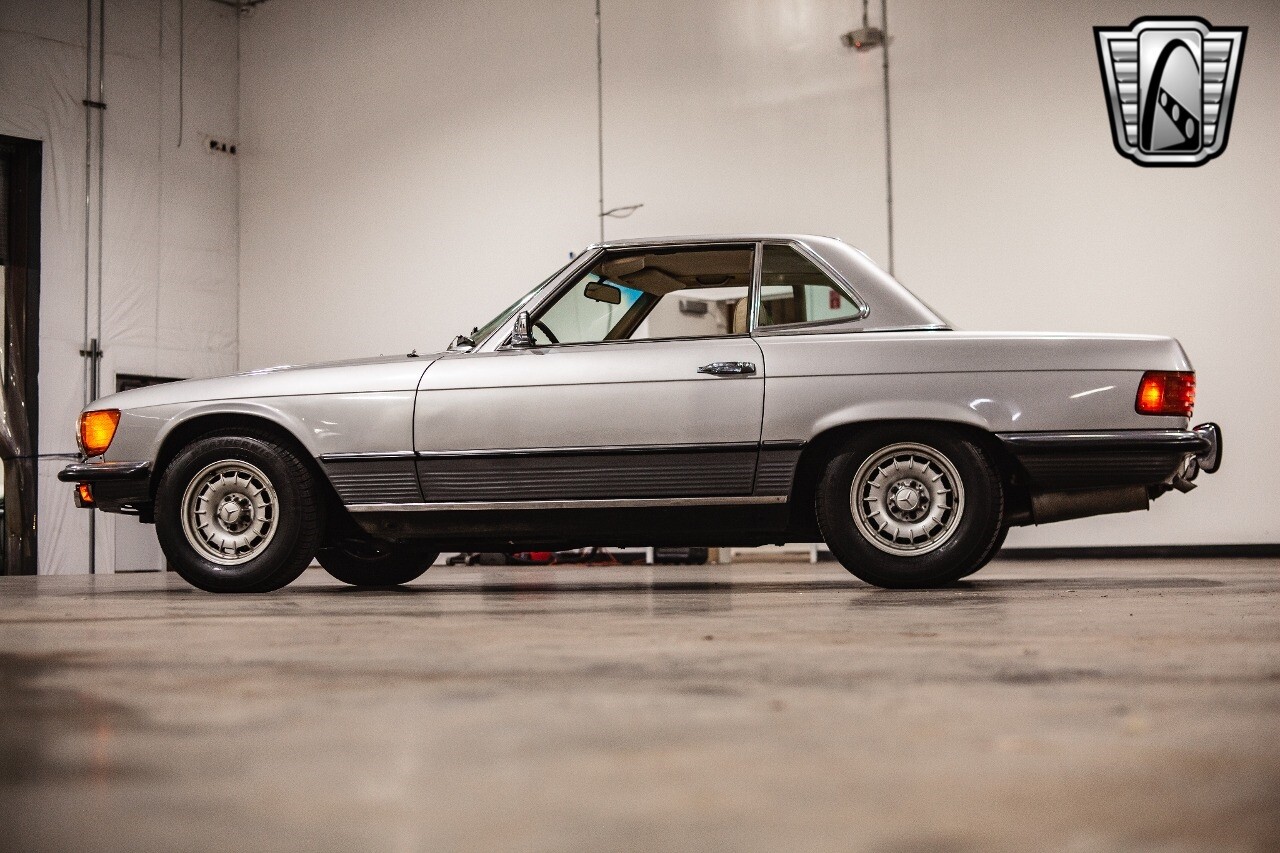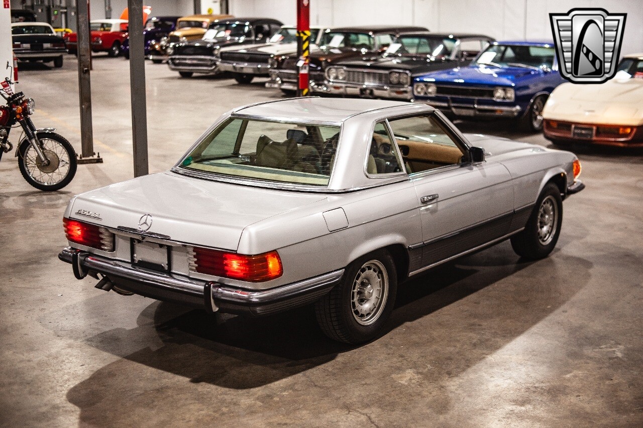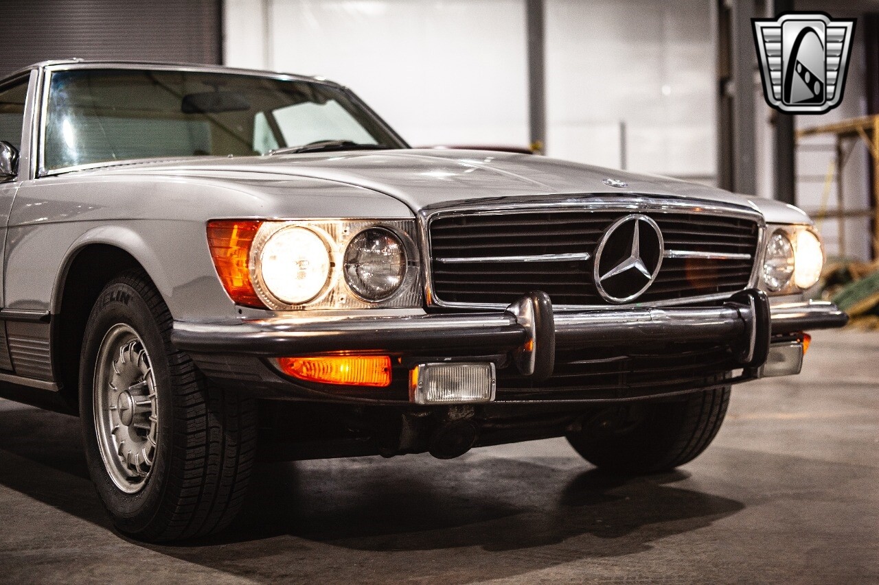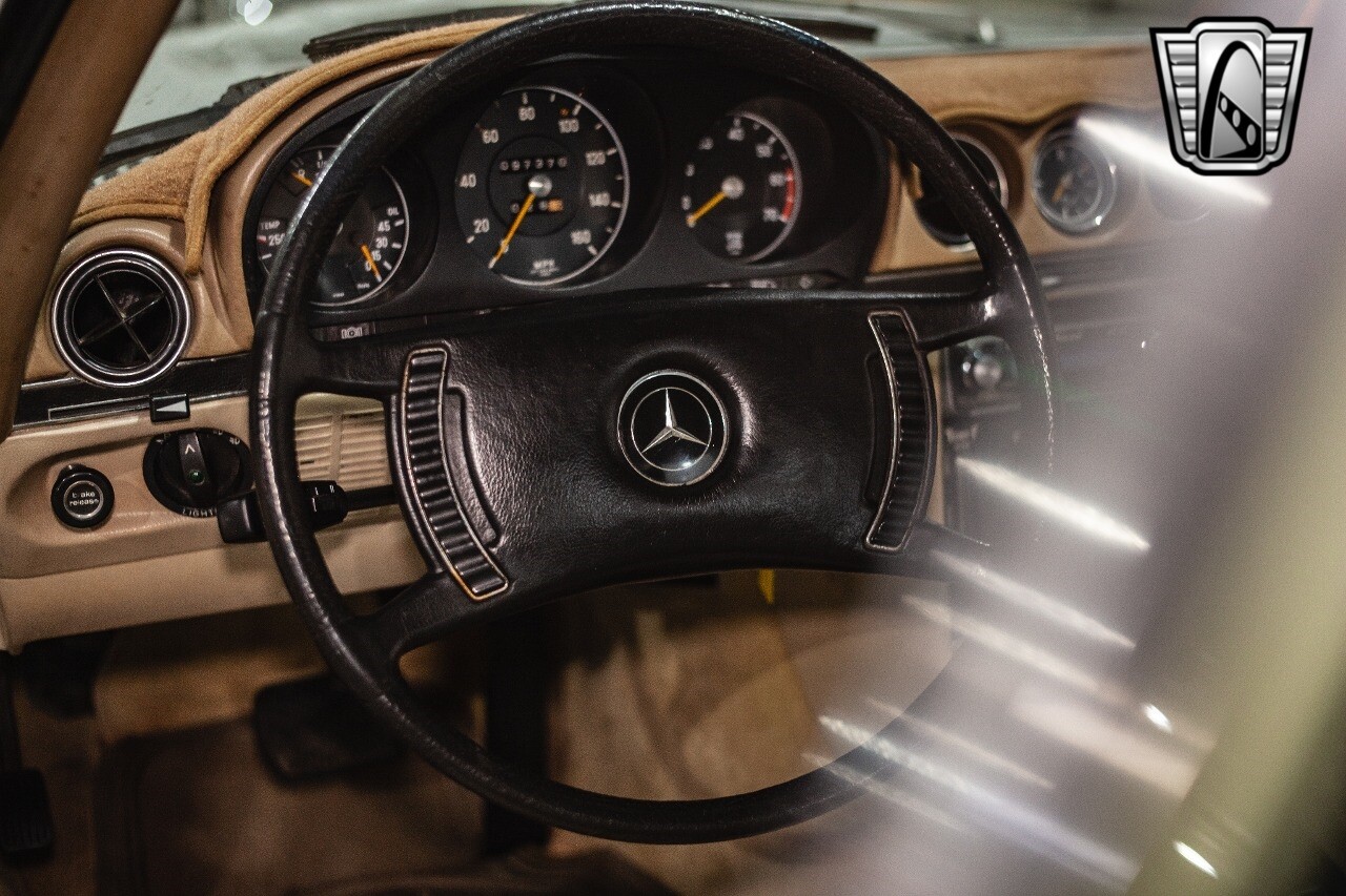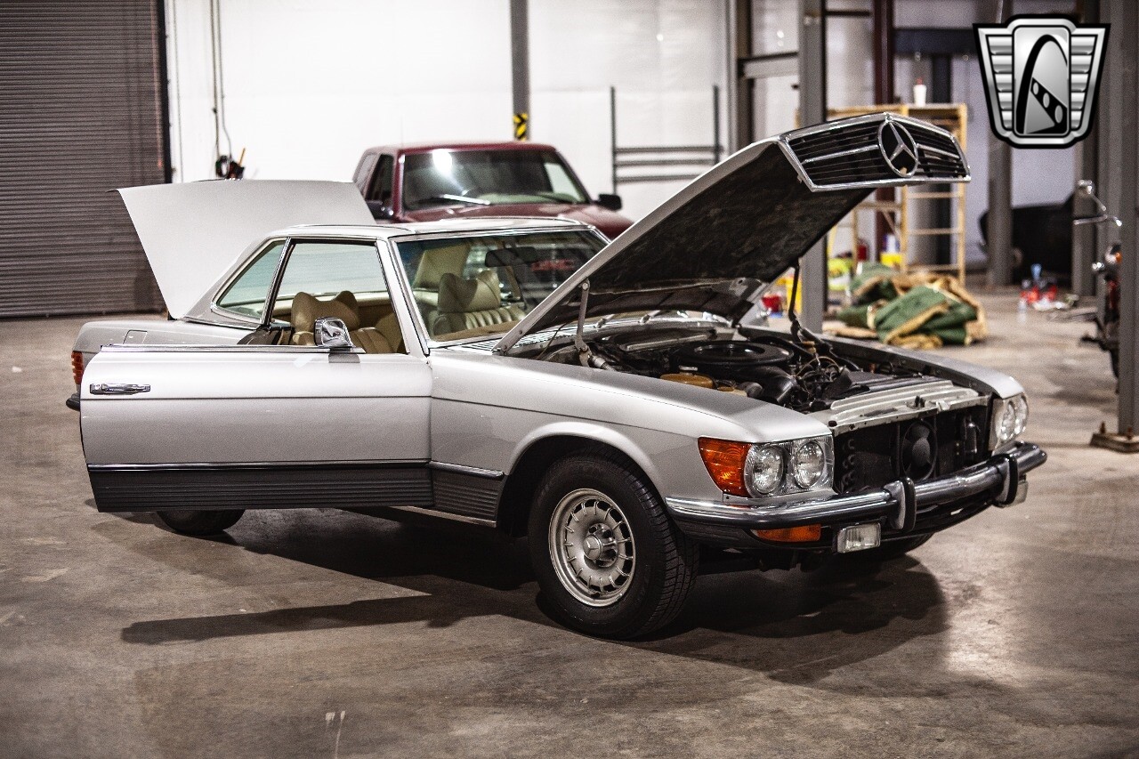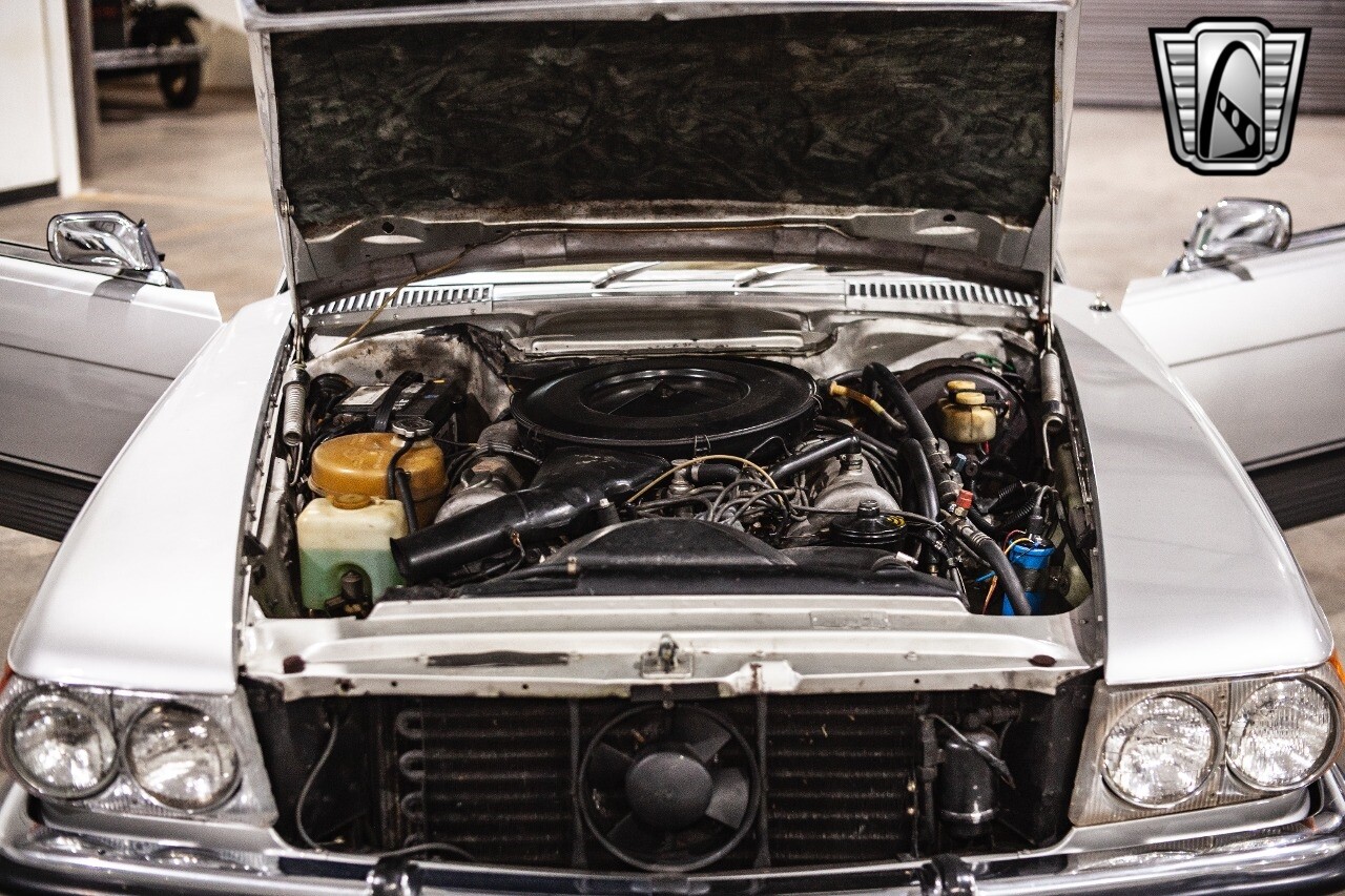 The 450SL also features aluminum wheels, adding a touch of modern style to its classic design. The car is fitted with radial tires, known for their durability and performance, ensuring a stable and comfortable ride.