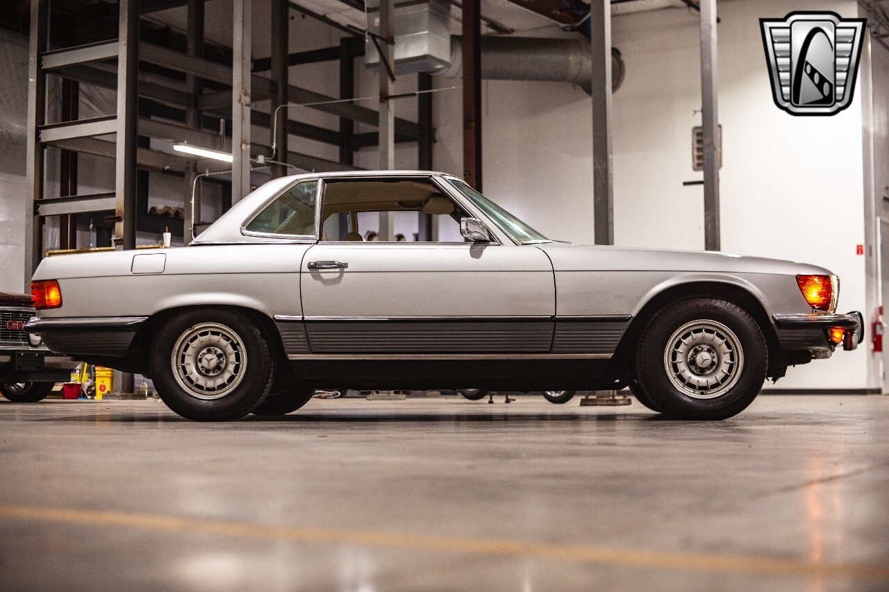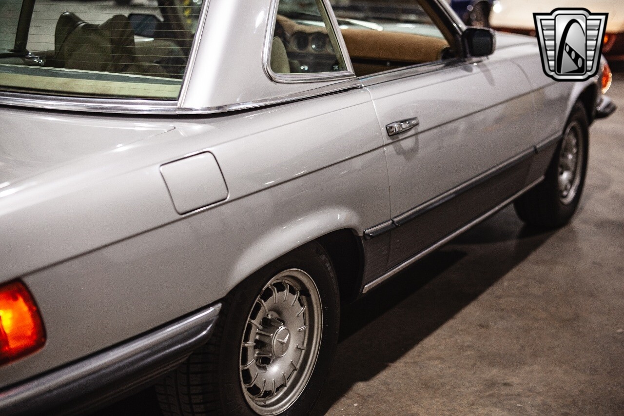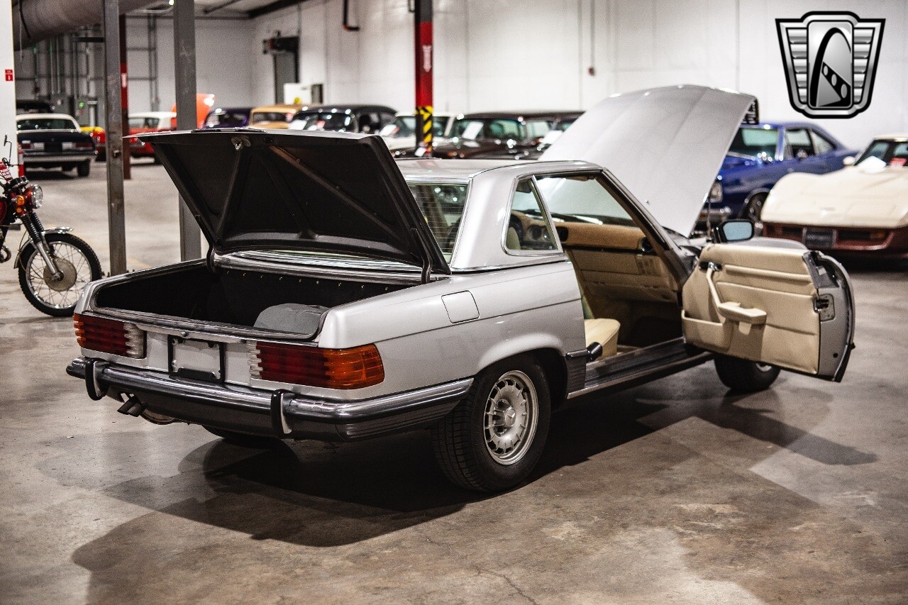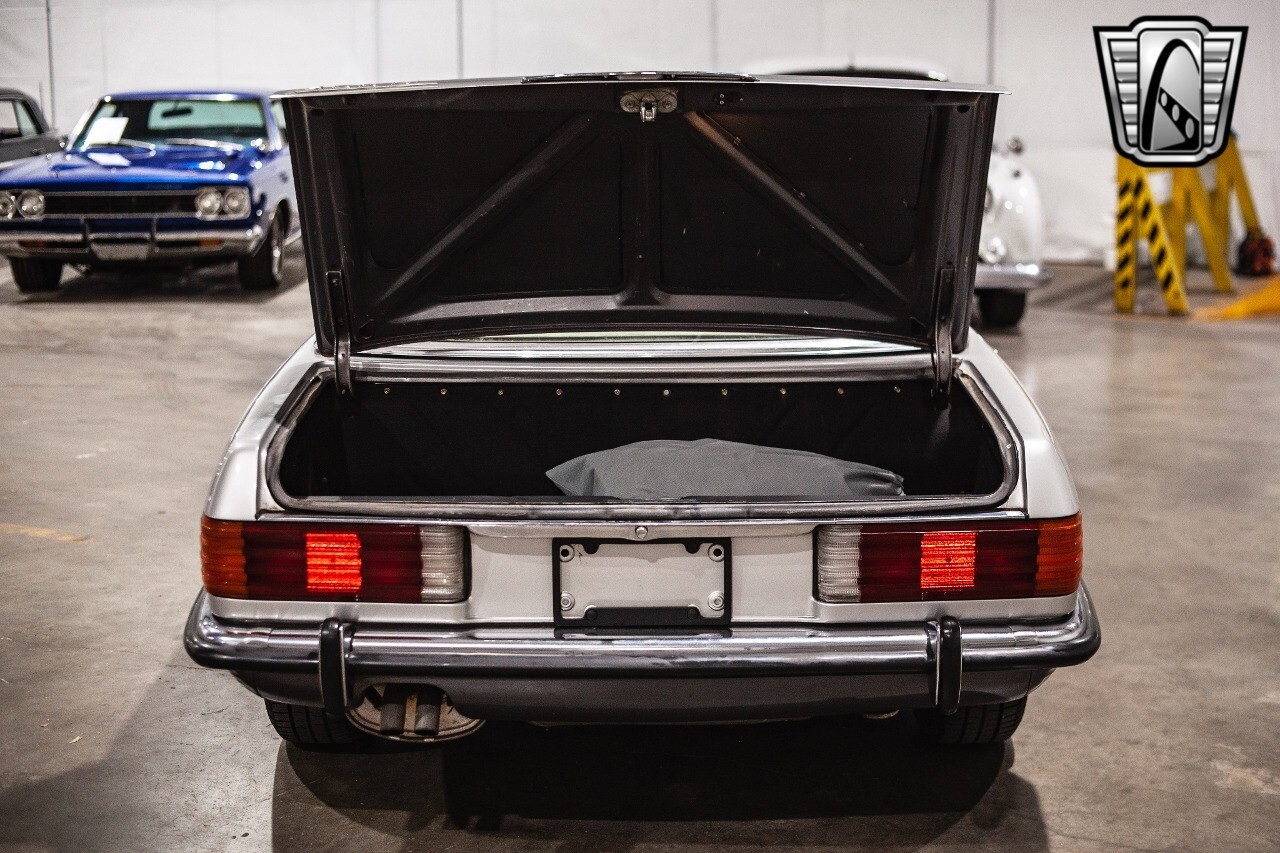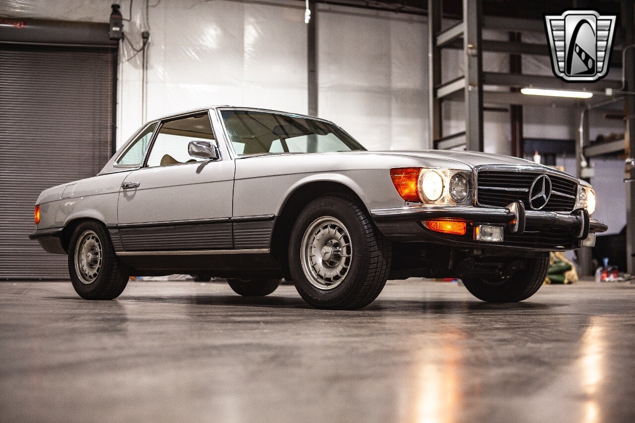 The 450SL also features aluminum wheels, adding a touch of modern style to its classic design. The car is fitted with radial tires, known for their durability and performance, ensuring a stable and comfortable ride.