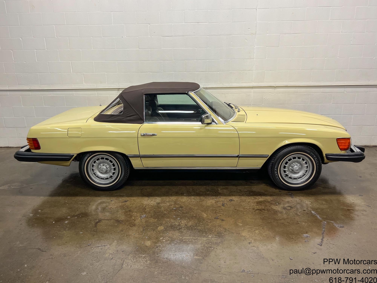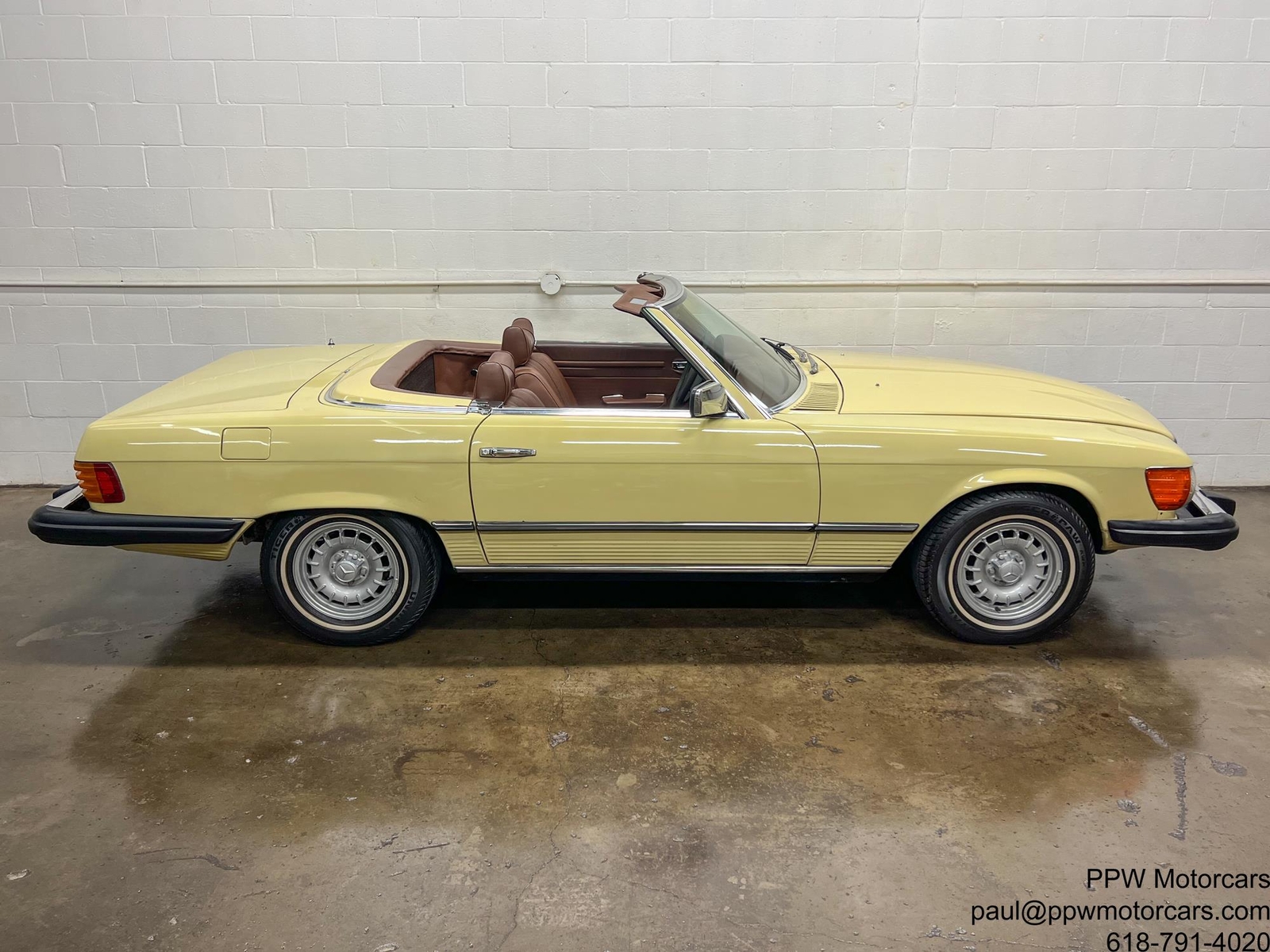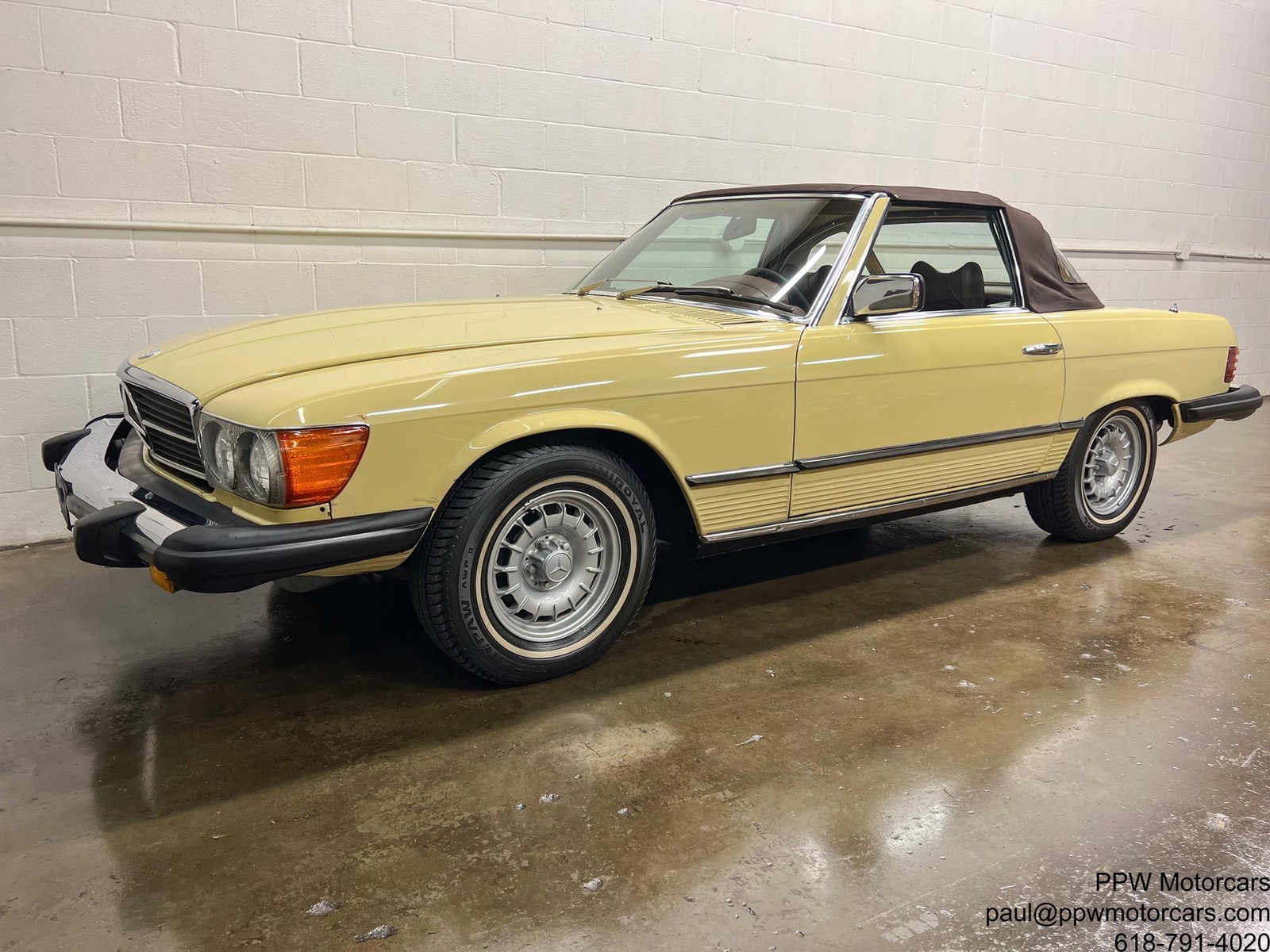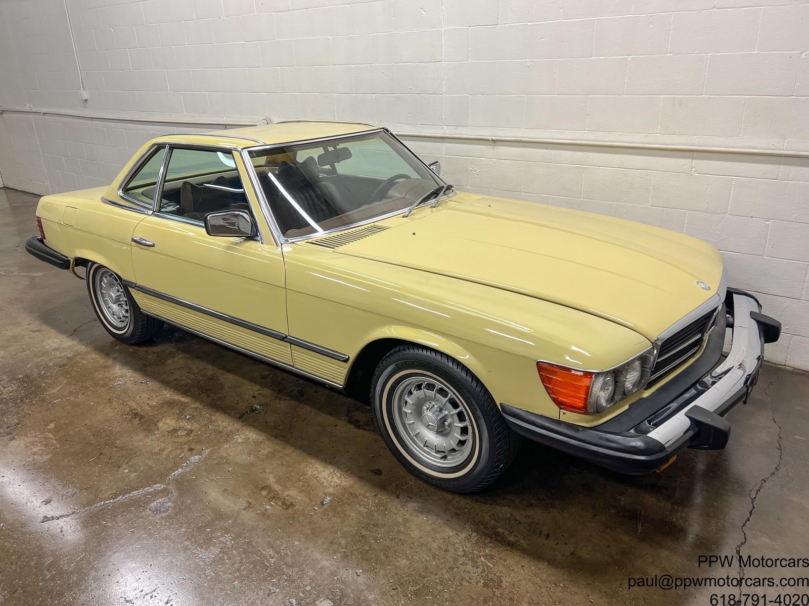 PPW Motorcars is pleased to offer this Stunning 1977 Mercedes-Benz 450SL, which was exquisitely ordered in the highly desirable Maple Yellow over a powdery and supple Chocolate Interior, which is one of just a few equipped in this highly desirable and iconic color combination. This particular example has been ordered with every option available; fitted with Climate Control Air Conditioning, Power Windows, Hardtop, Alloy Wheels, and AM/FM Radio. Further, this example has just received a massive major service and is ready to be enjoyed today! This example has clearly been well cared for as indicated by the stunning interior striking highly original paint with as much depth as we have ever seen, magnificent mechanical condition, and other small details that show beautifully. We are proud to offer what we believe to be one of the best ordered, lowest mile, best driving, maintained, and exceptional examples of the coveted 450SL Mercedes available today. A better looking and driving car would be difficult to find at any price and certainly does not exist for less. Bid with confidence-you will not be disappointed in this truly amazing motorcar!