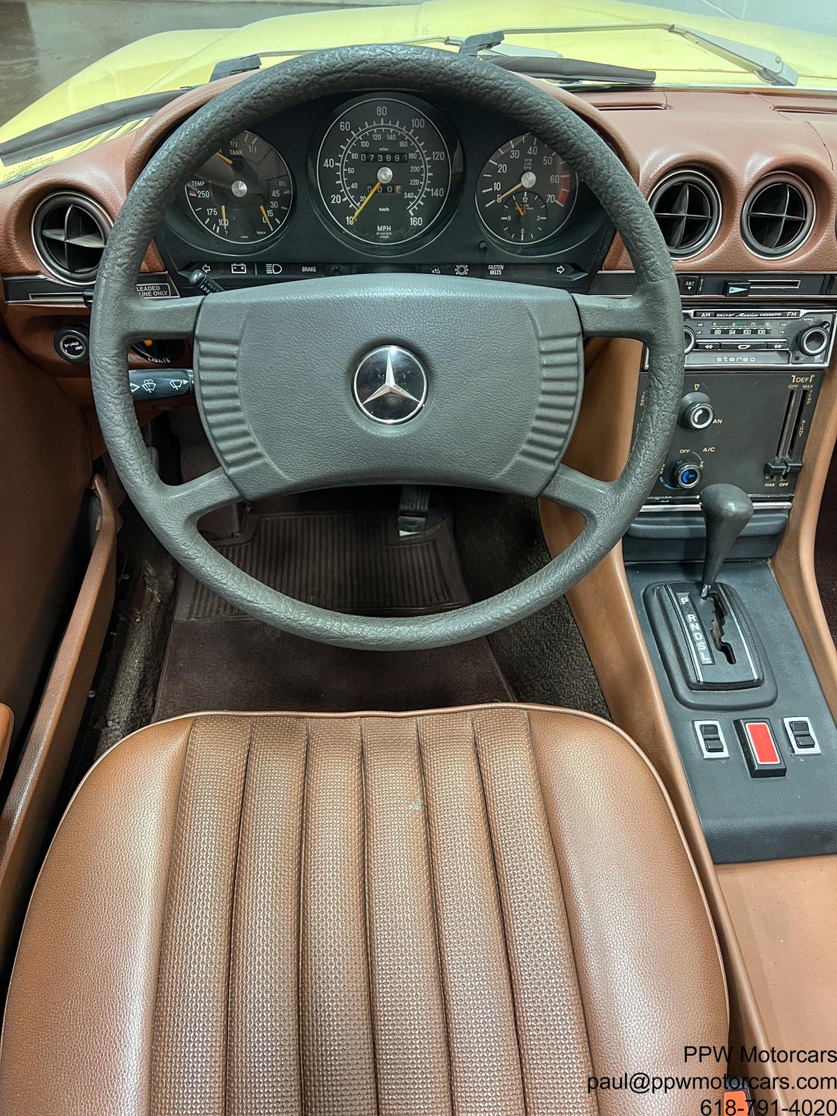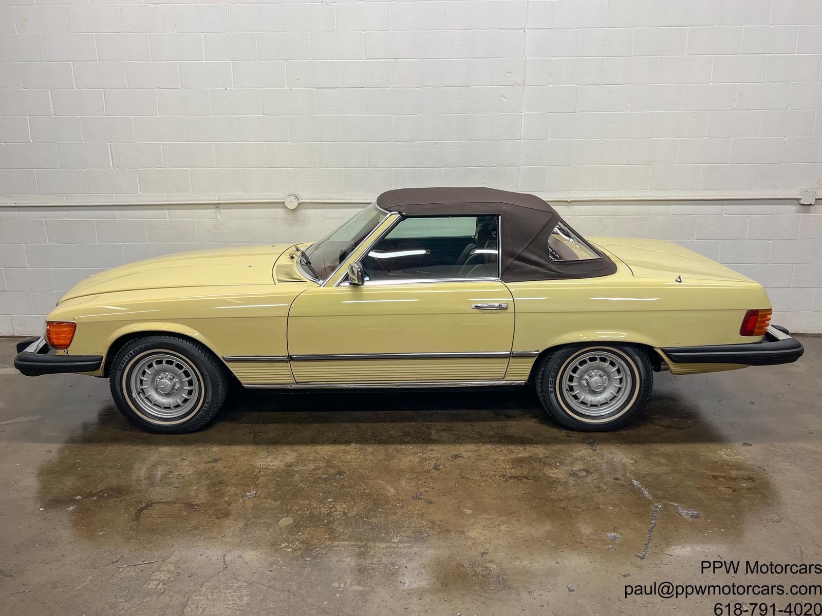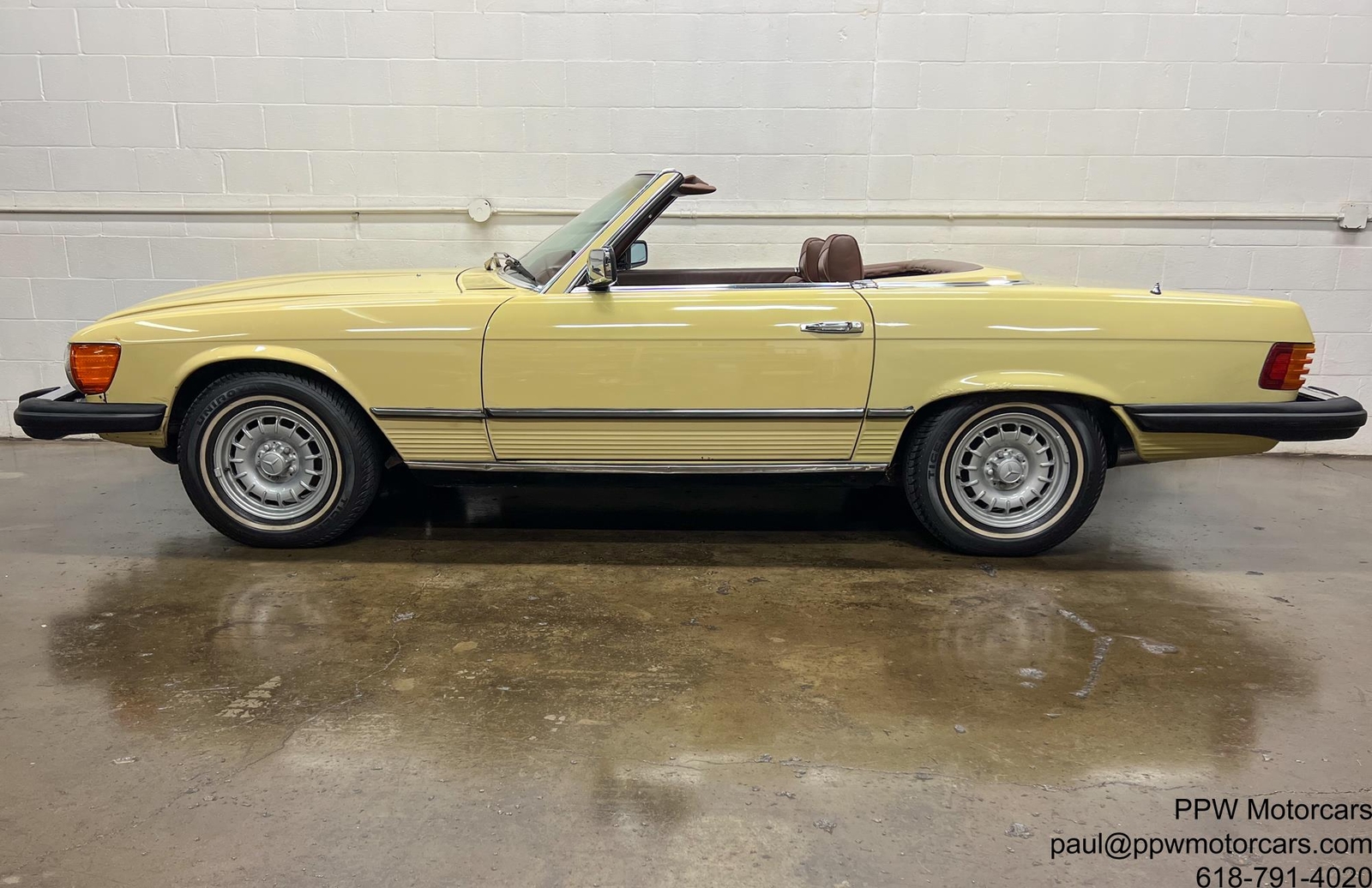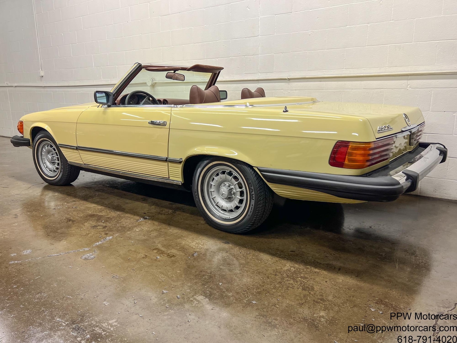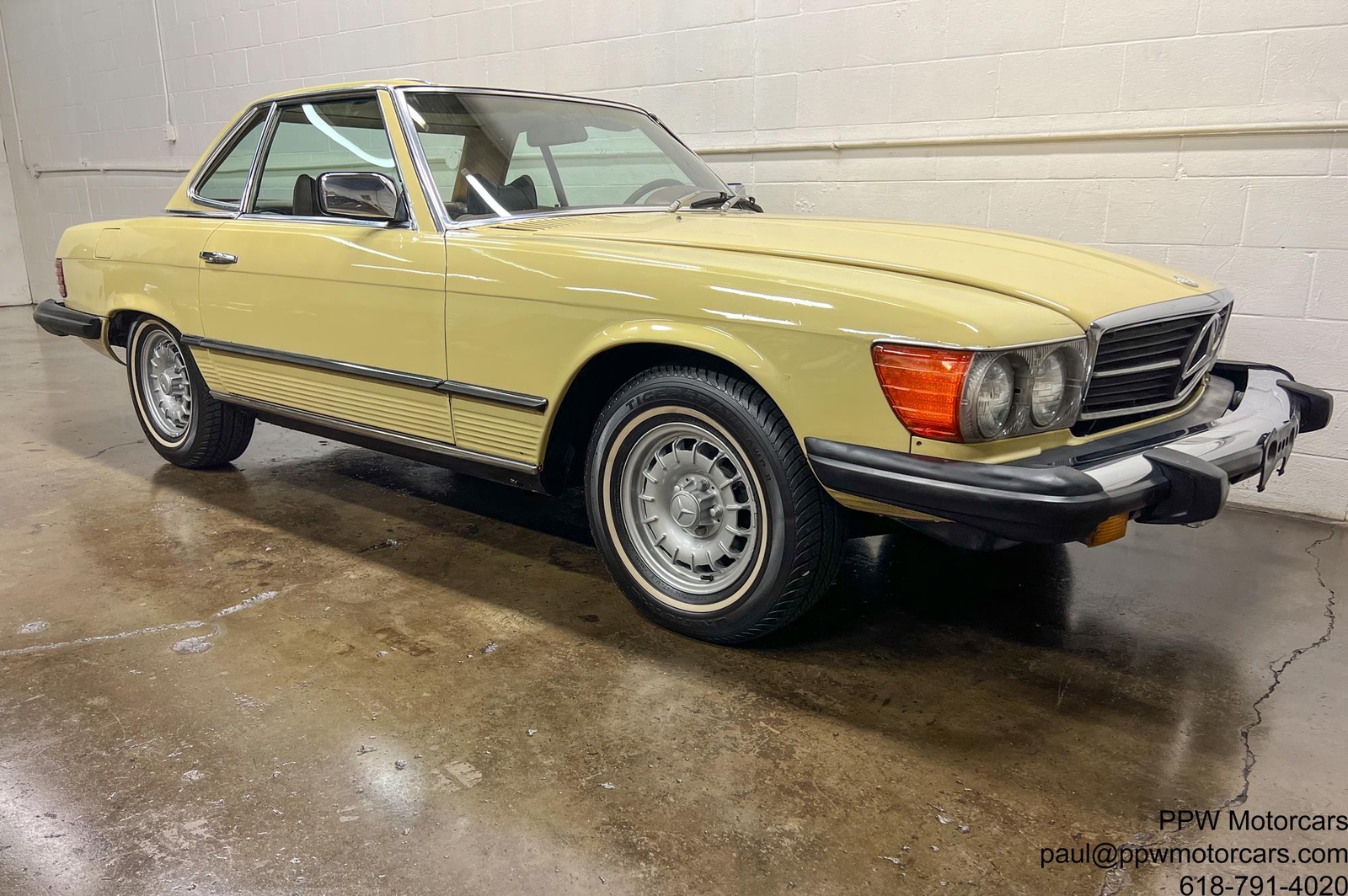 PPW Motorcars is pleased to offer this Stunning 1977 Mercedes-Benz 450SL, which was exquisitely ordered in the highly desirable Maple Yellow over a powdery and supple Chocolate Interior, which is one of just a few equipped in this highly desirable and iconic color combination. This particular example has been ordered with every option available; fitted with Climate Control Air Conditioning, Power Windows, Hardtop, Alloy Wheels, and AM/FM Radio. Further, this example has just received a massive major service and is ready to be enjoyed today! This example has clearly been well cared for as indicated by the stunning interior striking highly original paint with as much depth as we have ever seen, magnificent mechanical condition, and other small details that show beautifully. We are proud to offer what we believe to be one of the best ordered, lowest mile, best driving, maintained, and exceptional examples of the coveted 450SL Mercedes available today. A better looking and driving car would be difficult to find at any price and certainly does not exist for less. Bid with confidence-you will not be disappointed in this truly amazing motorcar!