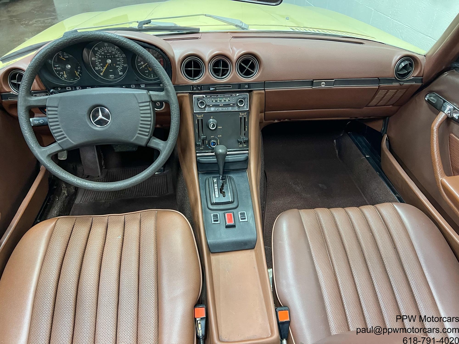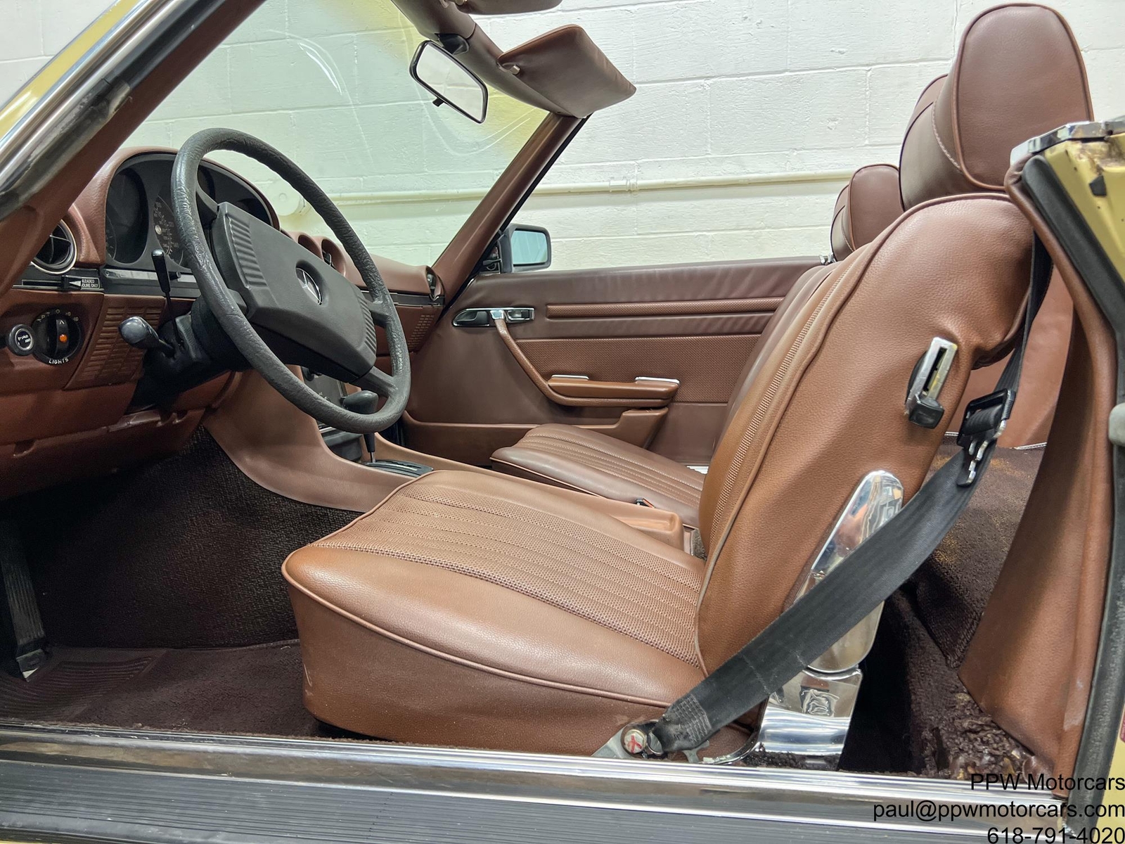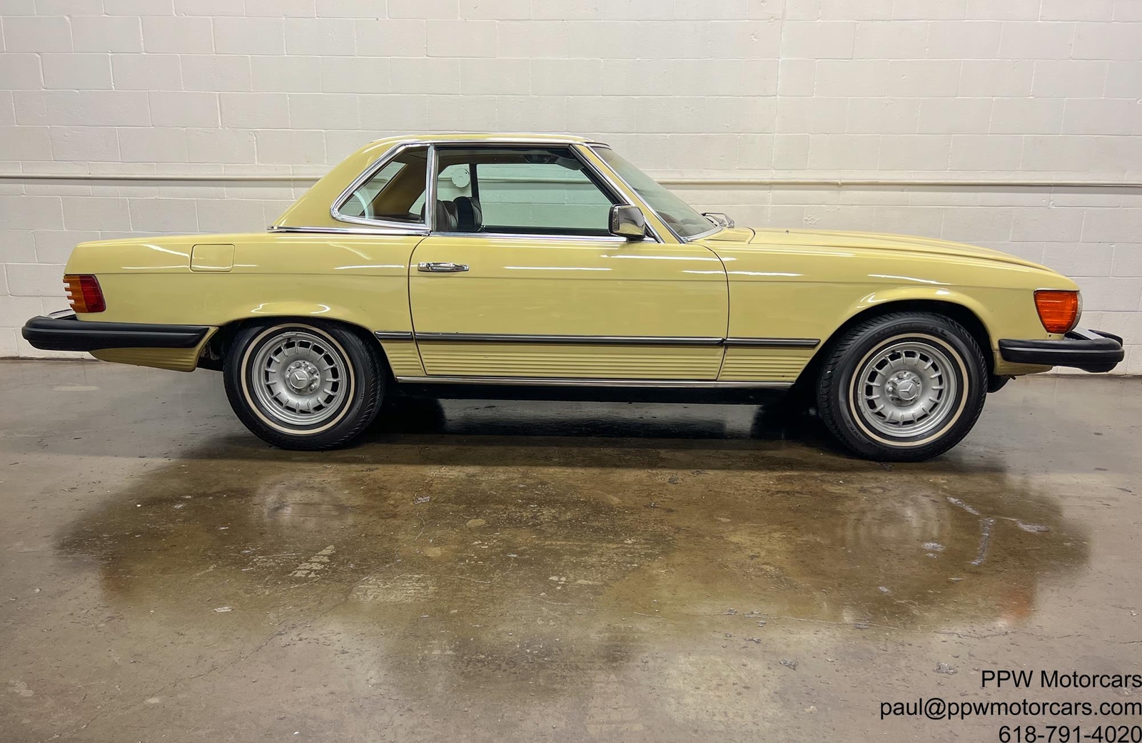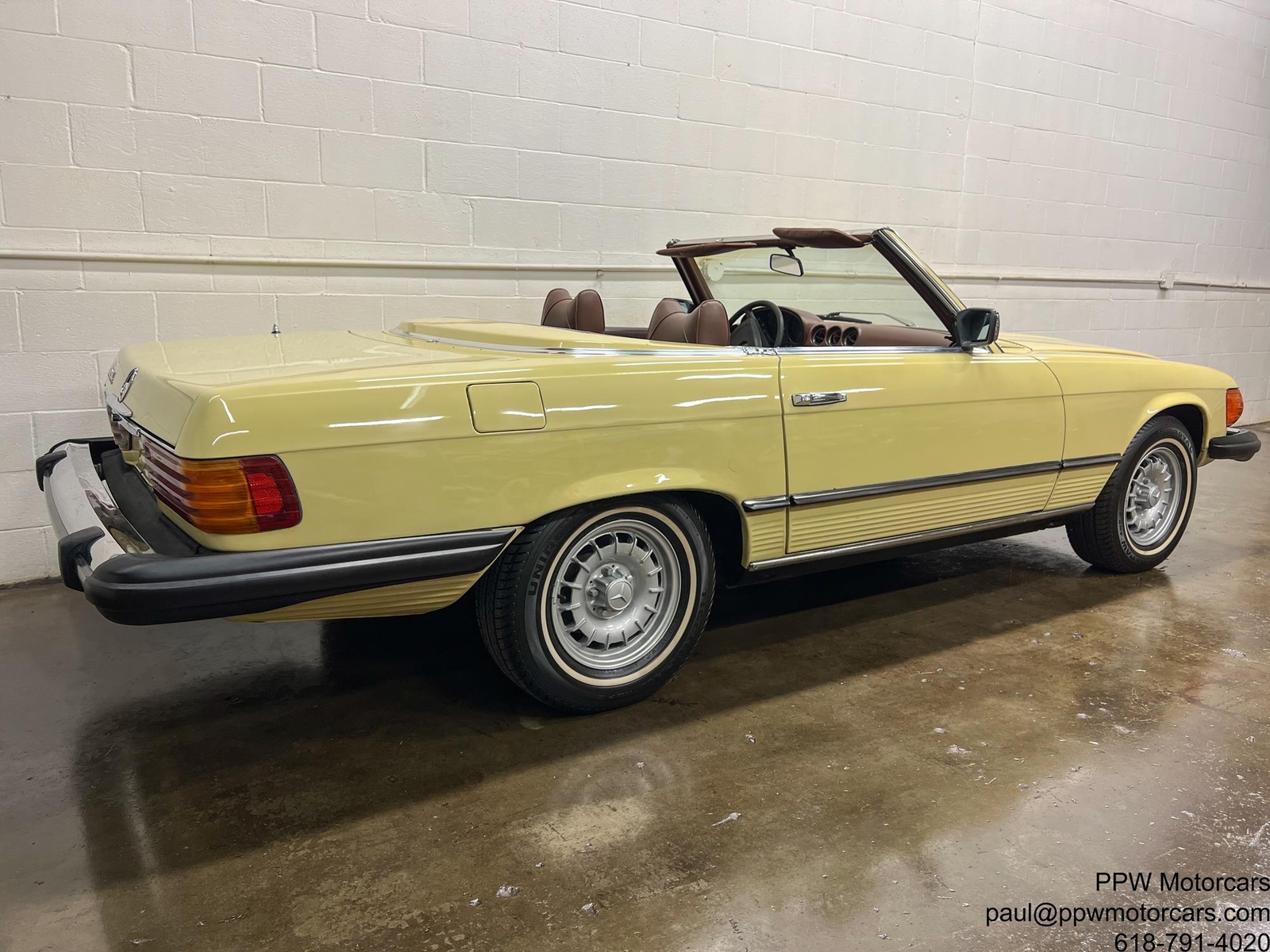 PPW Motorcars is pleased to offer this Stunning 1977 Mercedes-Benz 450SL, which was exquisitely ordered in the highly desirable Maple Yellow over a powdery and supple Chocolate Interior, which is one of just a few equipped in this highly desirable and iconic color combination. This particular example has been ordered with every option available; fitted with Climate Control Air Conditioning, Power Windows, Hardtop, Alloy Wheels, and AM/FM Radio. Further, this example has just received a massive major service and is ready to be enjoyed today! This example has clearly been well cared for as indicated by the stunning interior striking highly original paint with as much depth as we have ever seen, magnificent mechanical condition, and other small details that show beautifully. We are proud to offer what we believe to be one of the best ordered, lowest mile, best driving, maintained, and exceptional examples of the coveted 450SL Mercedes available today. A better looking and driving car would be difficult to find at any price and certainly does not exist for less. Bid with confidence-you will not be disappointed in this truly amazing motorcar!