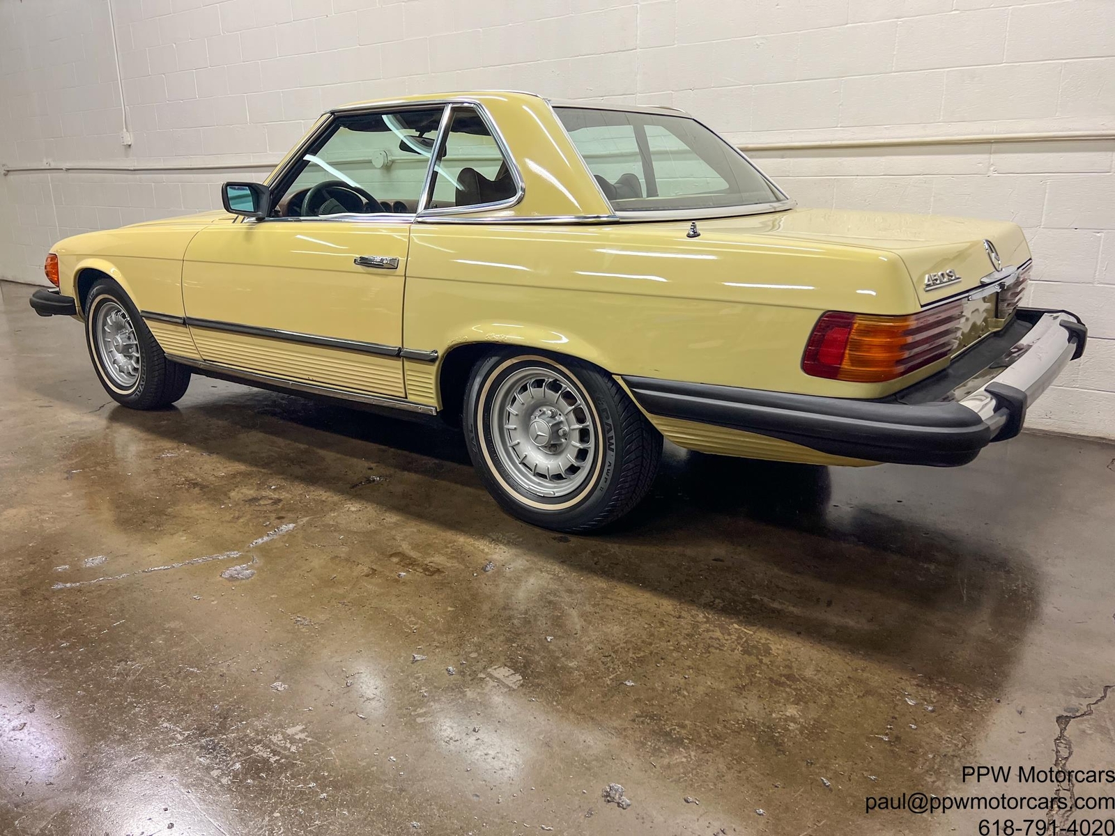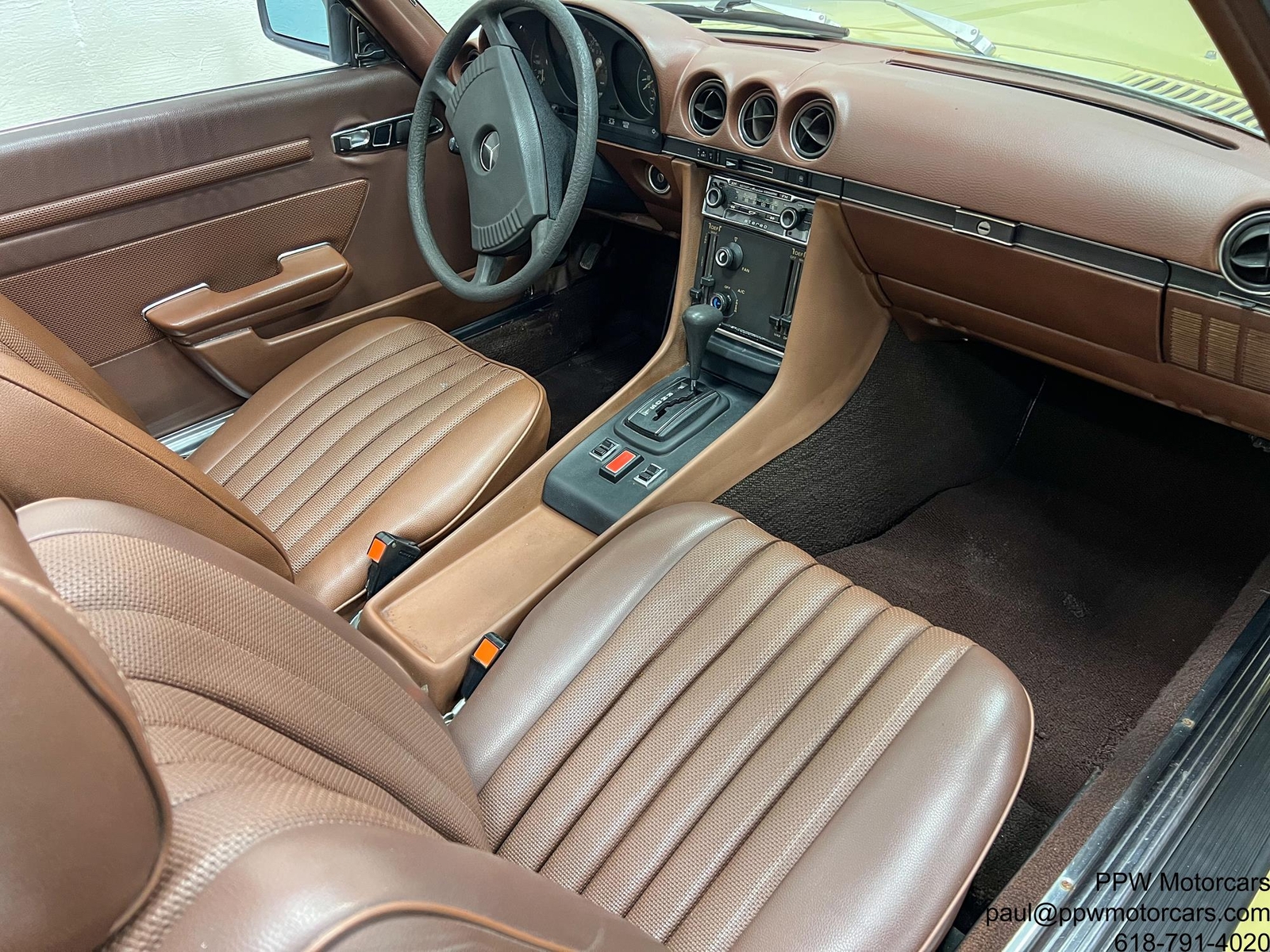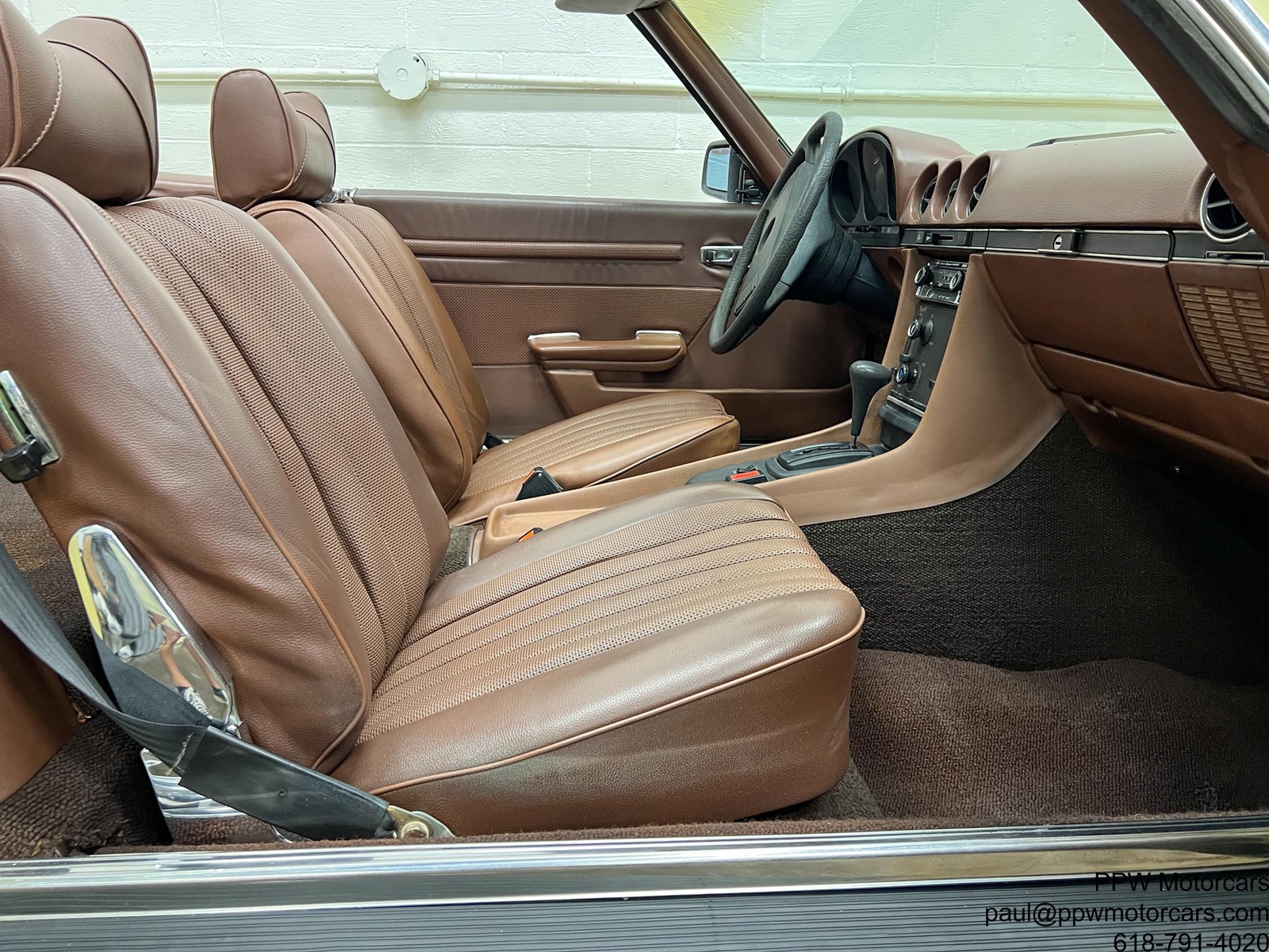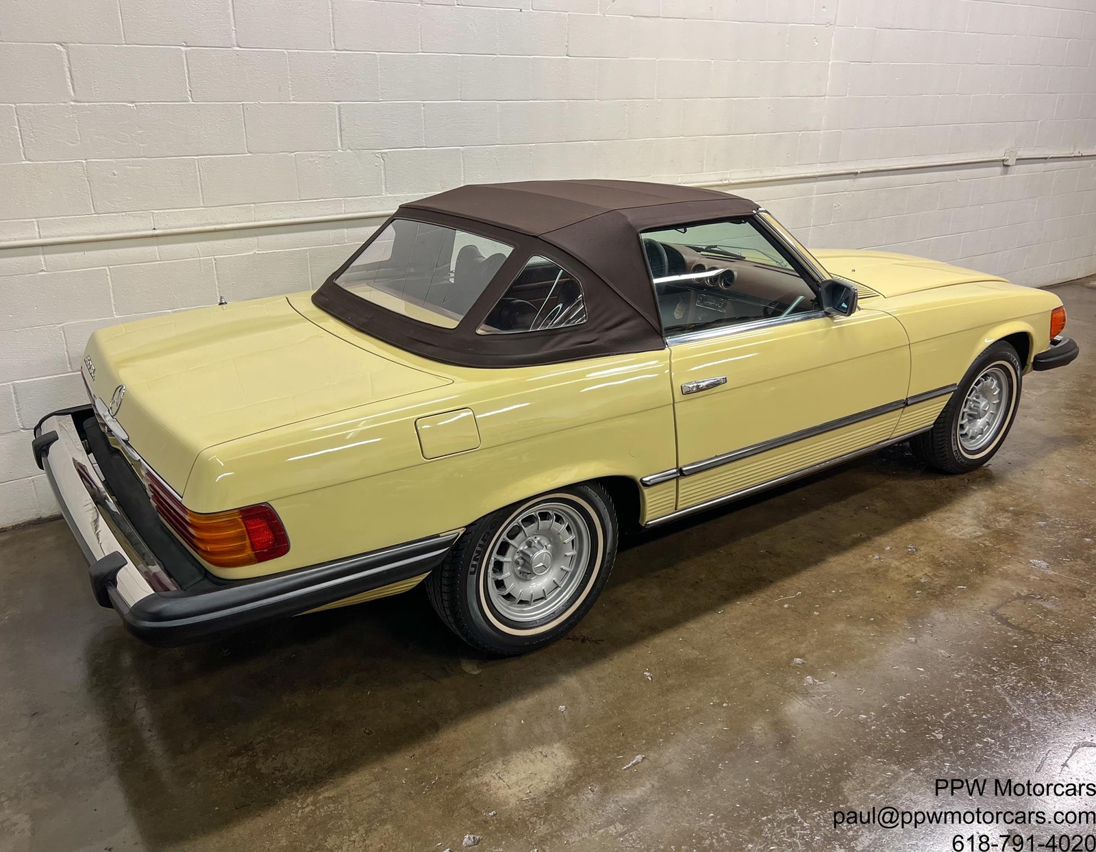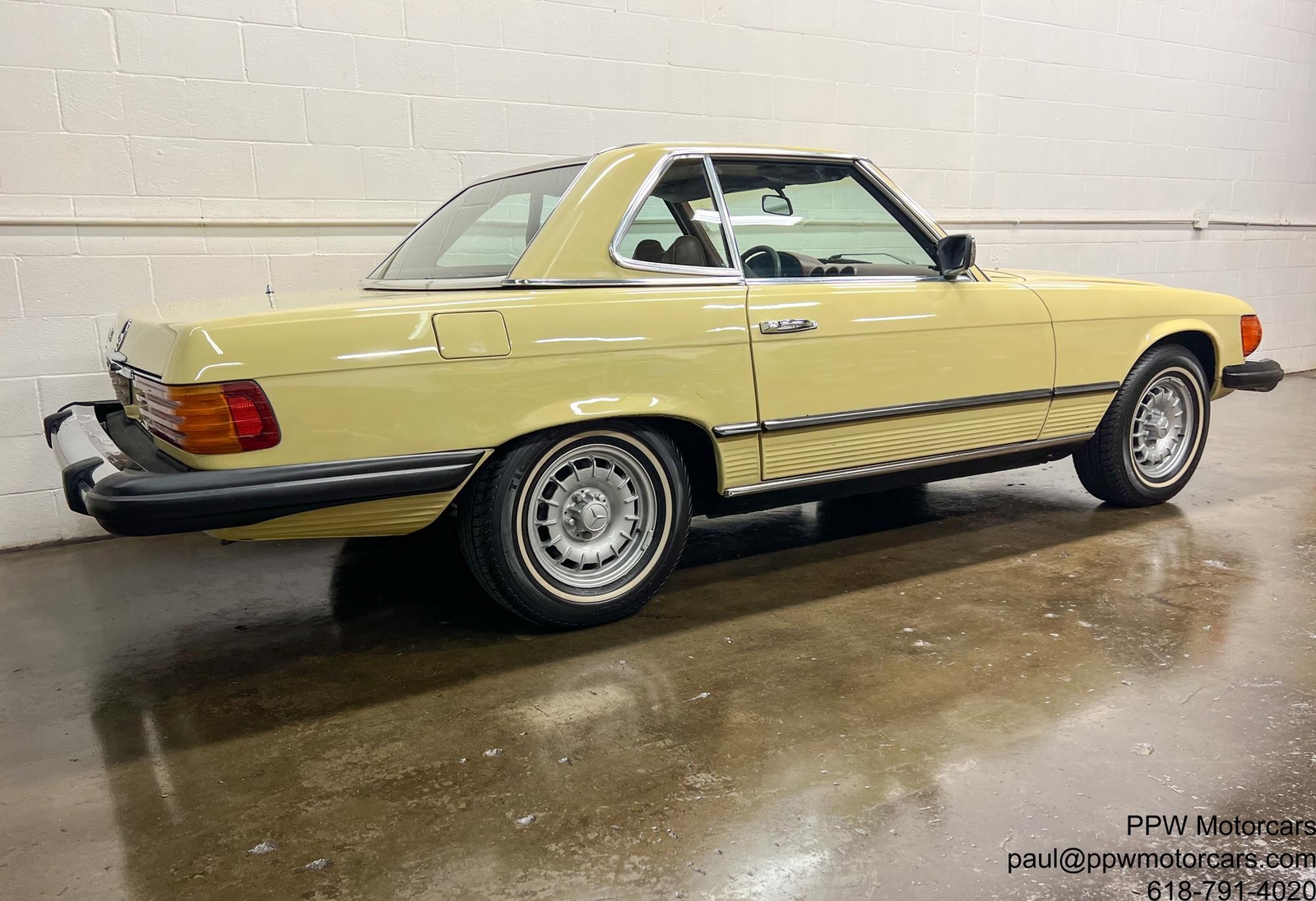 PPW Motorcars is pleased to offer this Stunning 1977 Mercedes-Benz 450SL, which was exquisitely ordered in the highly desirable Maple Yellow over a powdery and supple Chocolate Interior, which is one of just a few equipped in this highly desirable and iconic color combination. This particular example has been ordered with every option available; fitted with Climate Control Air Conditioning, Power Windows, Hardtop, Alloy Wheels, and AM/FM Radio. Further, this example has just received a massive major service and is ready to be enjoyed today! This example has clearly been well cared for as indicated by the stunning interior striking highly original paint with as much depth as we have ever seen, magnificent mechanical condition, and other small details that show beautifully. We are proud to offer what we believe to be one of the best ordered, lowest mile, best driving, maintained, and exceptional examples of the coveted 450SL Mercedes available today. A better looking and driving car would be difficult to find at any price and certainly does not exist for less. Bid with confidence-you will not be disappointed in this truly amazing motorcar!