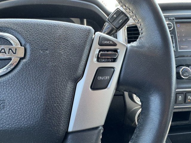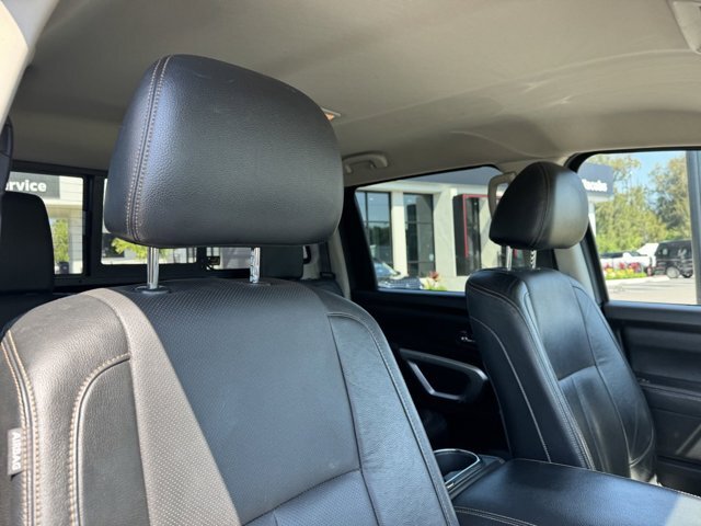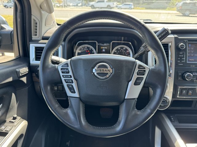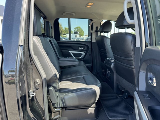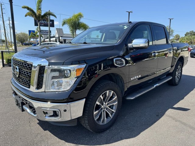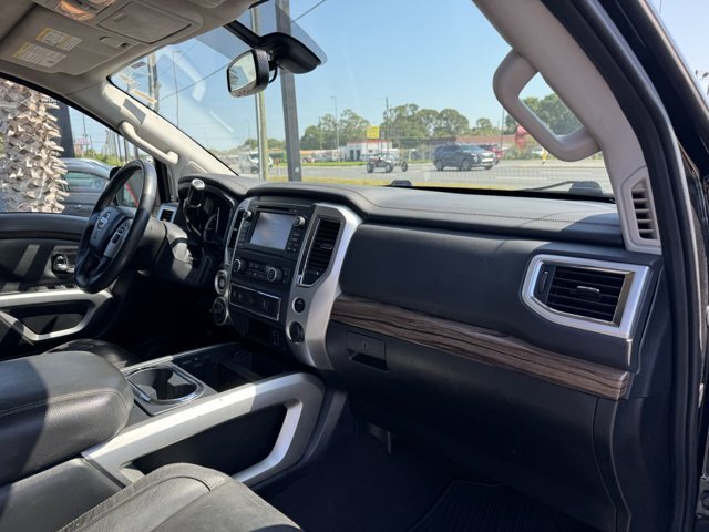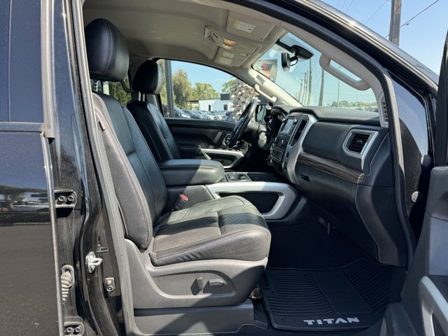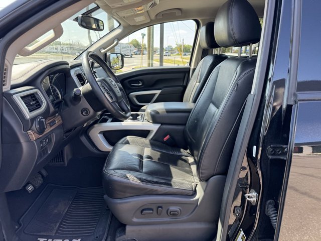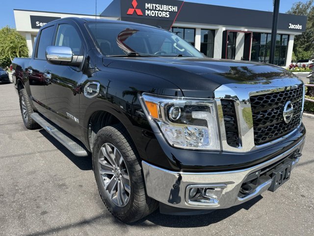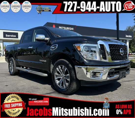 Titan SL, 4D Crew Cab, 5.6L V8, 7-Speed Automatic, 4WD, Magnetic Black, Black w/Leather Seat Trim, 12 Speakers, 2.937 Axle Ratio, 4-Wheel Disc Brakes, ABS brakes, Activation Disclaimer, Air Conditioning, Alloy wheels, AM/FM radio: SiriusXM, Auto tilt-away steering wheel, Auto-dimming door mirrors, Auto-dimming Rear-View mirror, Automatic temperature control, Blind Spot Warning, Brake assist, Bumpers: chrome, CD player, Compass, Delay-off headlights, Driver door bin, Driver vanity mirror, Dual front impact airbags, Dual front side impact airbags, Electronic Stability Control, Emergency communication system: NissanConnect Services, Front anti-roll bar, Front Bucket Seats, Front Center Armrest, Front dual zone A/C, Front fog lights, Front reading lights, Front wheel independent suspension, Garage door transmitter: HomeLink, Heated door mirrors, Heated Front Captain's Chairs, Heated front seats, Illuminated entry, Leather Seat Trim, Leather steering wheel, Low tire pressure warning, Memory seat, Navigation System, Occupant sensing airbag, Outside temperature display, Overhead airbag, Overhead console, Panic alarm, Passenger door bin, Passenger vanity mirror, Power door mirrors, Power driver seat, Power passenger seat, Power steering, Power windows, Radio data system, Radio: NissanConnect w/SiriusXM/Navi & Mobile Apps, Rain sensing wipers, Rear anti-roll bar, Rear seat center armrest, Rear Seat Storage Compartment, Rear step bumper, Rear window defroster, Remote keyless entry, Running Boards (B12), Security system, Siri Eyes Free, Speed control, Speed-sensing steering, Speed-Sensitive Wipers, Split folding rear seat, Steering wheel memory, Steering wheel mounted audio controls, Tachometer, Telescoping steering wheel, Tilt steering wheel, Traction control, Trip computer, Turn signal indicator mirrors, Variably intermittent wipers, Voltmeter, Wheels: 20 x 8 Painted Alloy. Priced below KBB Fair Purchase Price!Magnetic Black 2017 Nissan Titan SL 4WD 5.6L V8Here at Jacobs Mitsubishi our goal is to make you a customer for life. We want you to have the most enjoyable car buying experience possible . All prices displayed do not include additional accessories or fees and costs of closing including any government, additional packages applied to vehicle, including but not limited to Jacobs Care, Reconditioning fees,federal, dealer fees, taxes, registration, dealer document, cost of accessories, emissions testing, or any other fees. All prices, specifications and availability are subject to change at any time, without notice. Not all applicants will be approved, offers may change at any time and may not reflect accuracy online, see dealer for most updated offers. Not all offers can be combined. Applicant may qualify for partial discount displayed by financing with another approved lender through and provided by Jacobs Mitsubishi. Contact dealer for most current information, availability, or details.