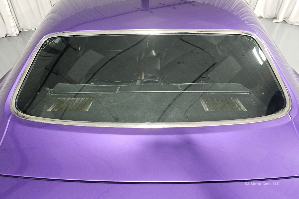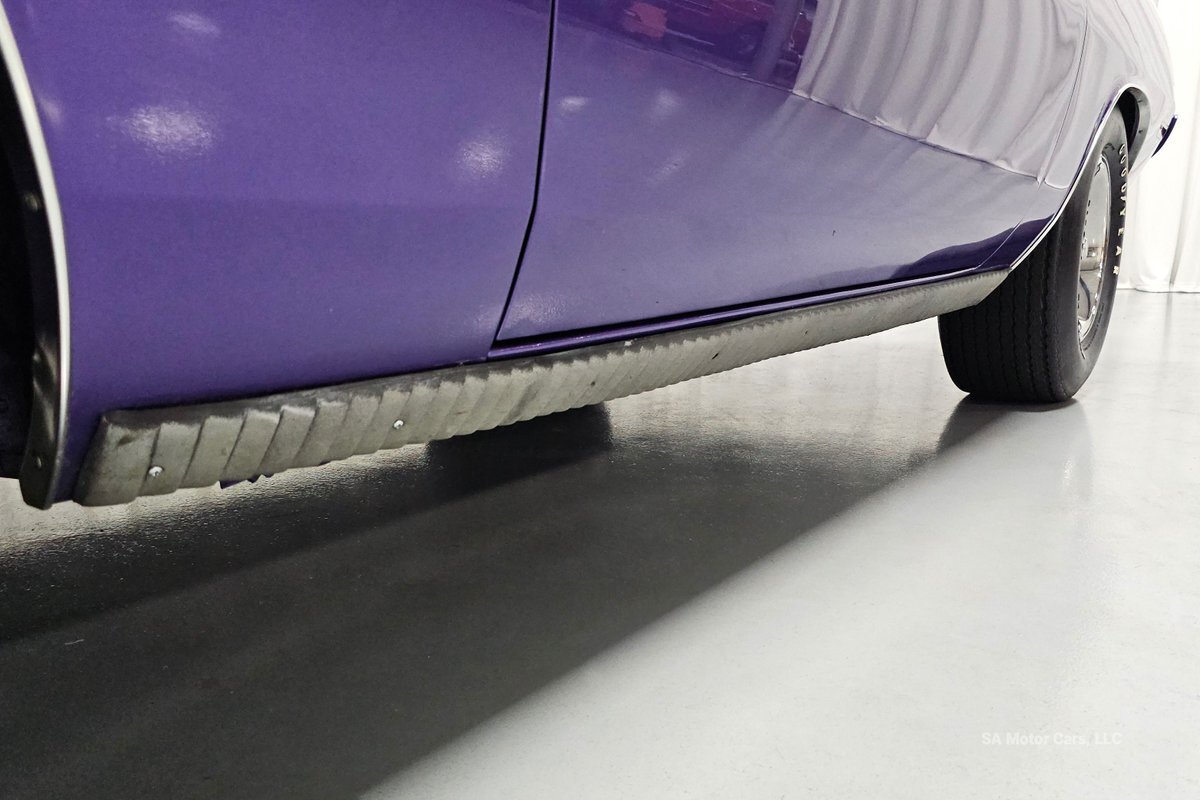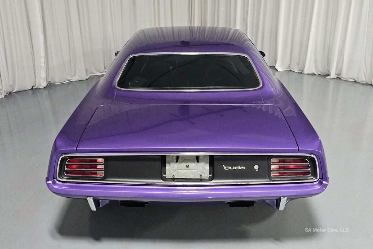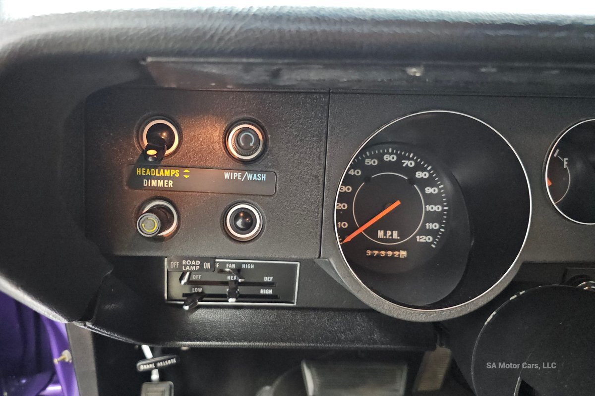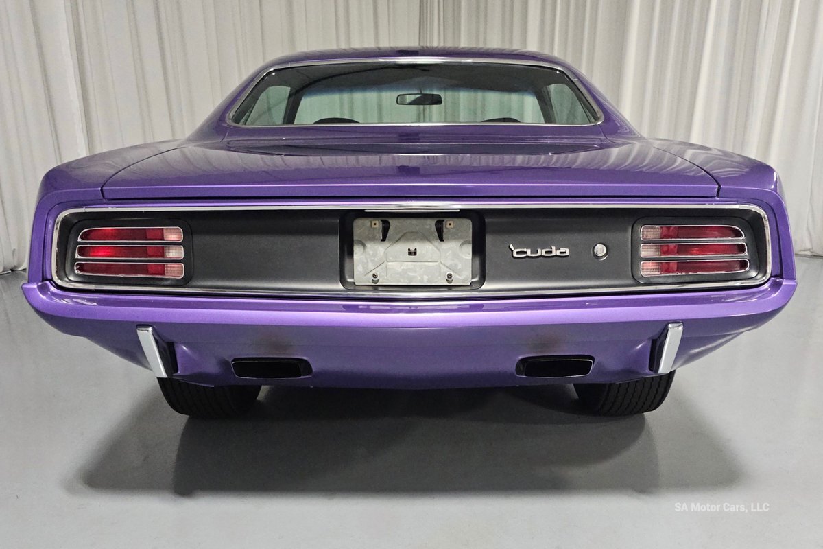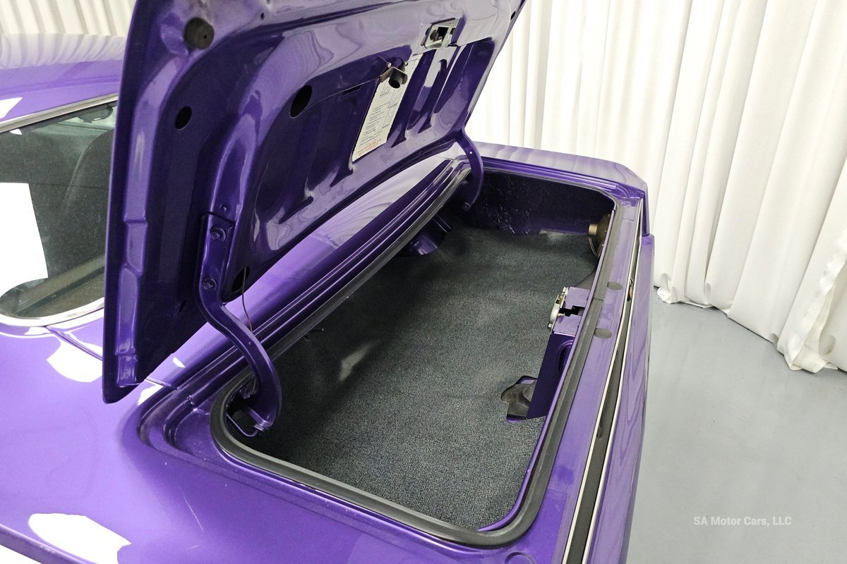 Check out this Stunning, All Original, Numbers Matching, with MMC DETROIT DAVID WISE PREMIUM DECODE Report, 1970 PLYMOUTH HEMI CUDA. This model of Hemi Cuda, there were only 368 built and of course this is one of them. This Cuda exterior is finished in a Beautiful Plum Crazy Purple Paint, sporting the Cuda badge on the tail end, Shaker Hood, White wide stripe with HEMI on both sides, on the back panels. The front and rear elastomeric bumpers are painted matching the car.
