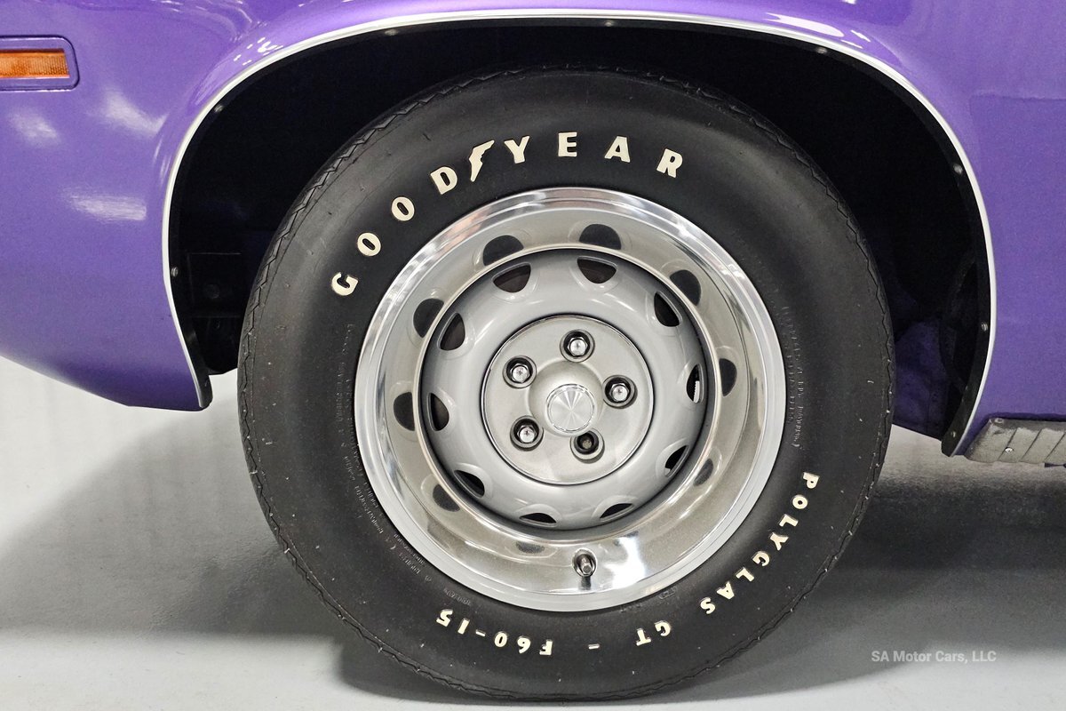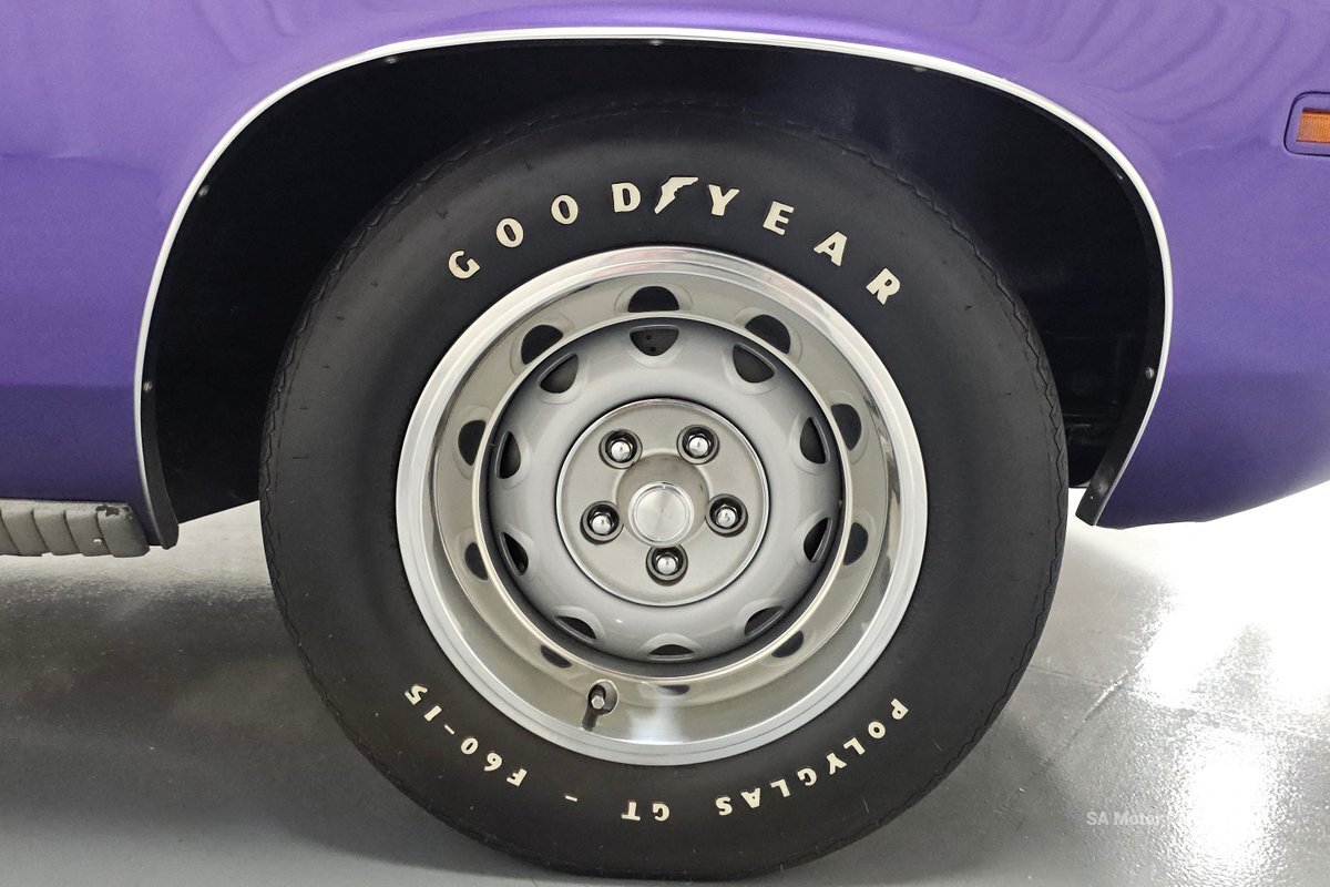 Looking underneath you will find Mopar Rally Wheels, with F60-15 Classic Style Goodyear Polyglas GT Tires.