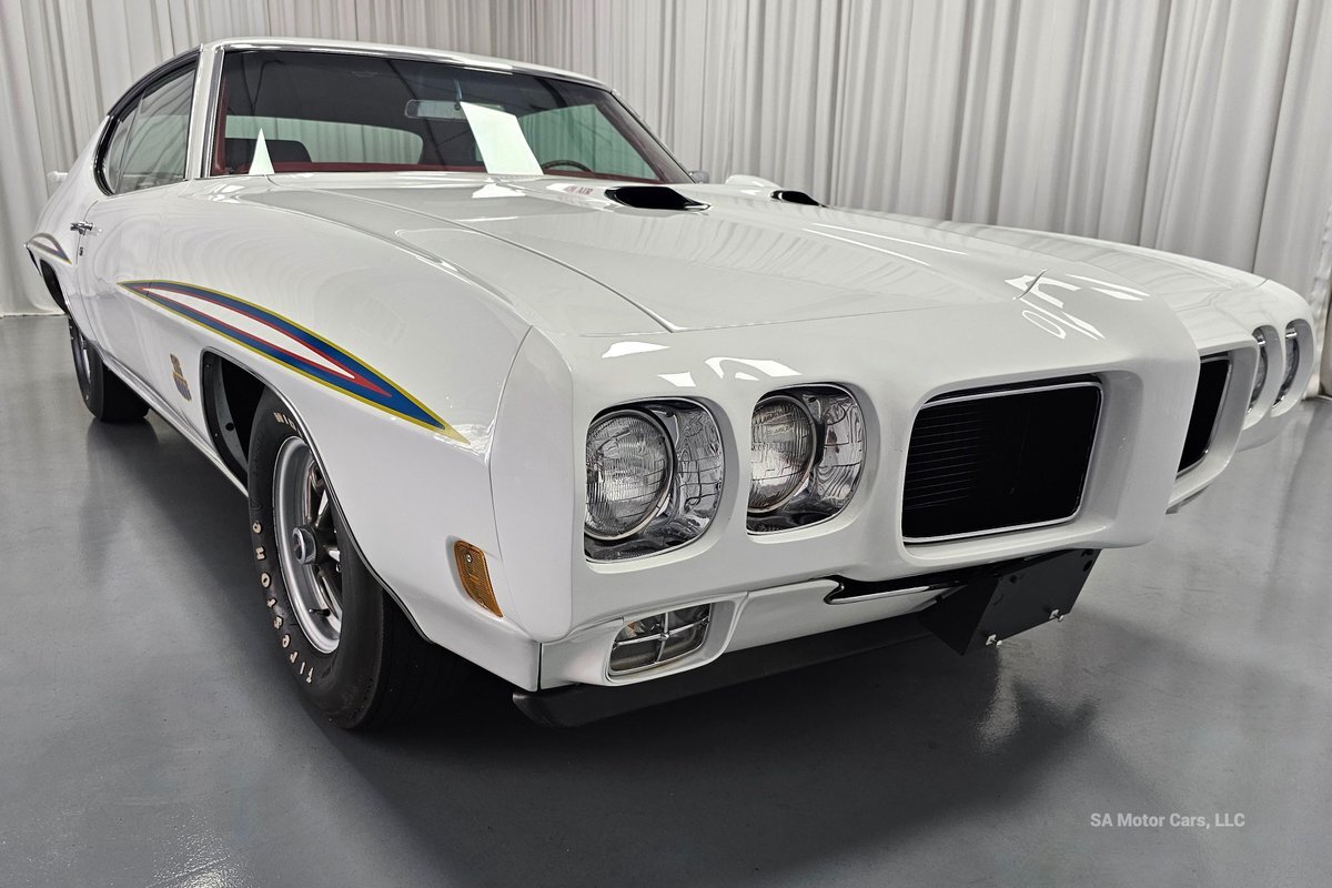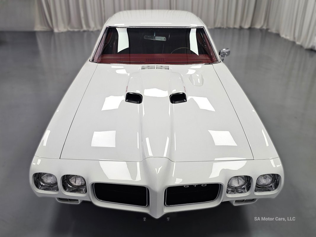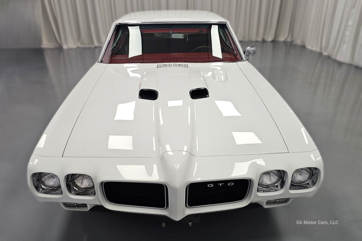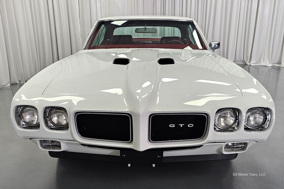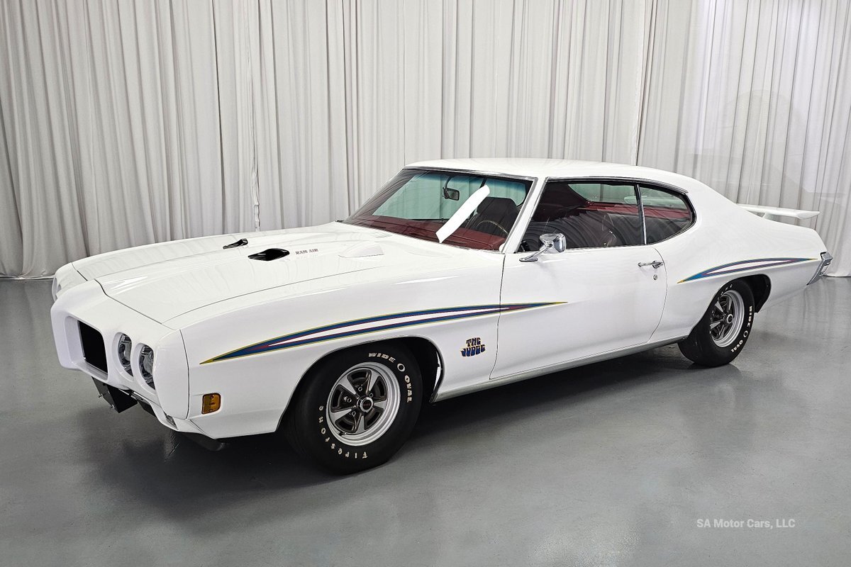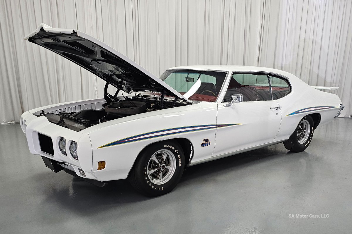Check out this amazing 1970 Pontiac GTO Judge! This Judge is Sporting gorgeous Polar White Exterior Paint with red/blue/yellow stripe! The interior of this GTO is also sporting a beautiful Red interior with bucket seats in front and a bench seat in rear, and so much more!