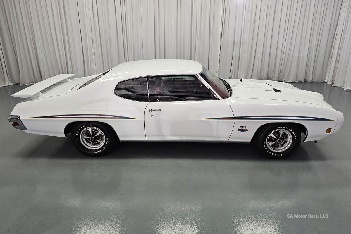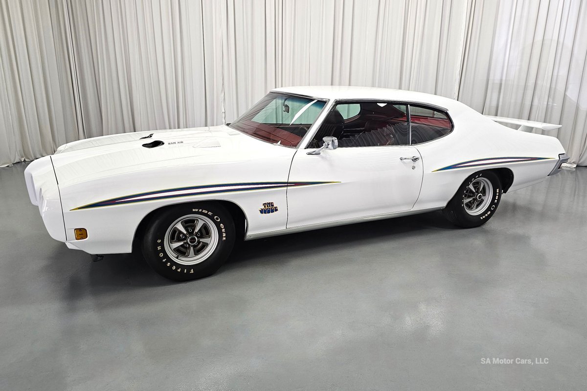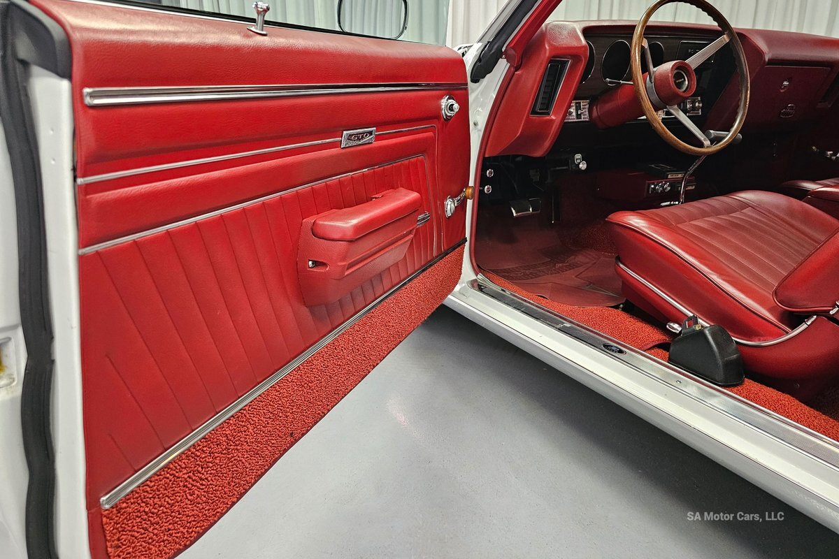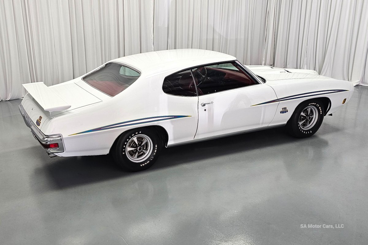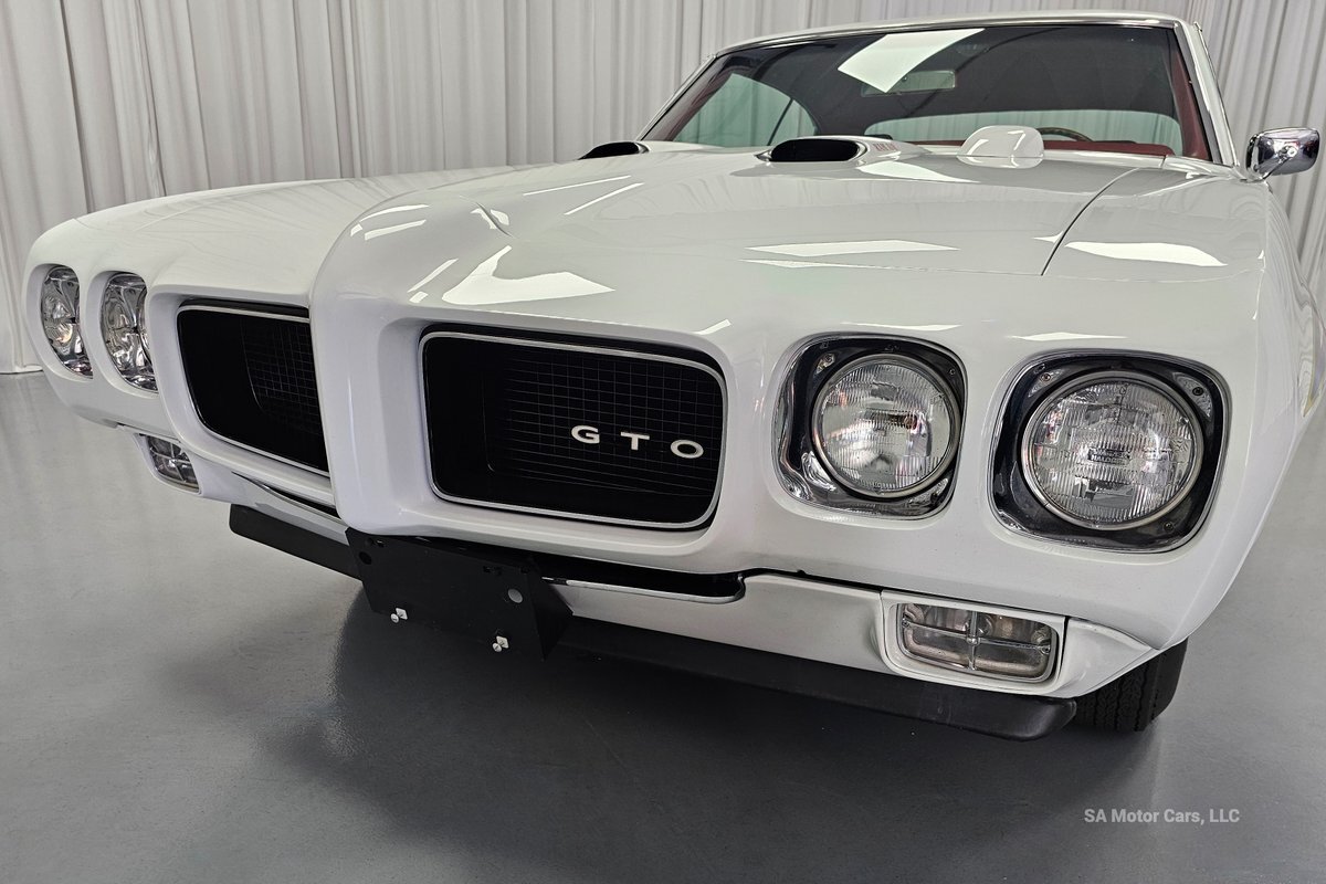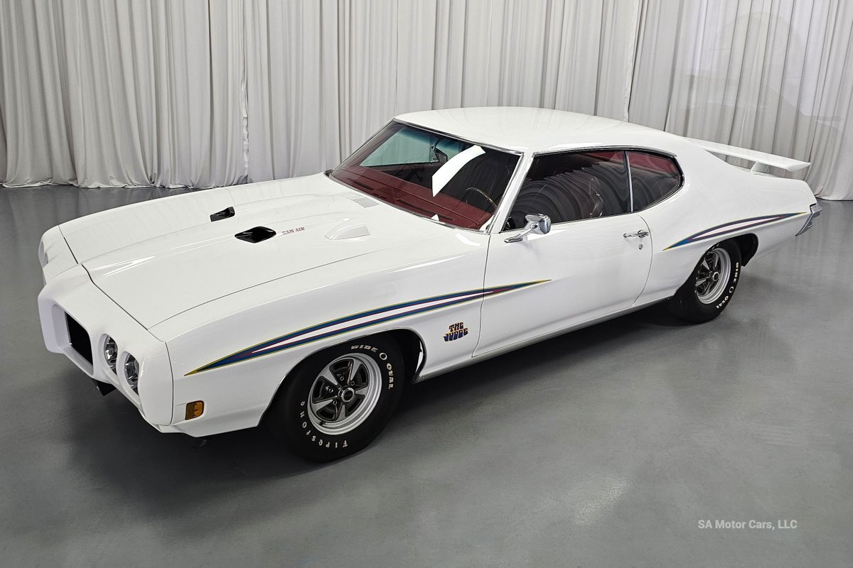 Check out this amazing 1970 Pontiac GTO Judge! This Judge is Sporting gorgeous Polar White Exterior Paint with red/blue/yellow stripe! The interior of this GTO is also sporting a beautiful Red interior with bucket seats in front and a bench seat in rear, and so much more!