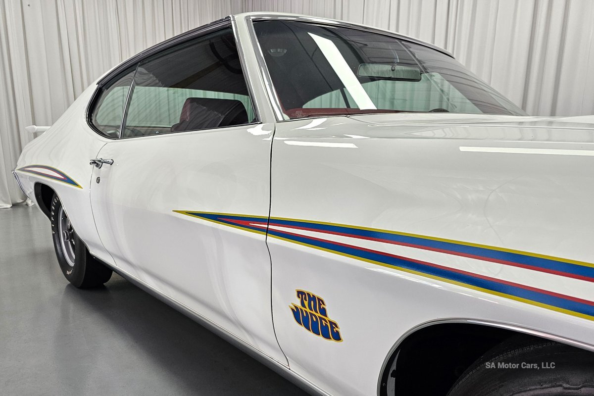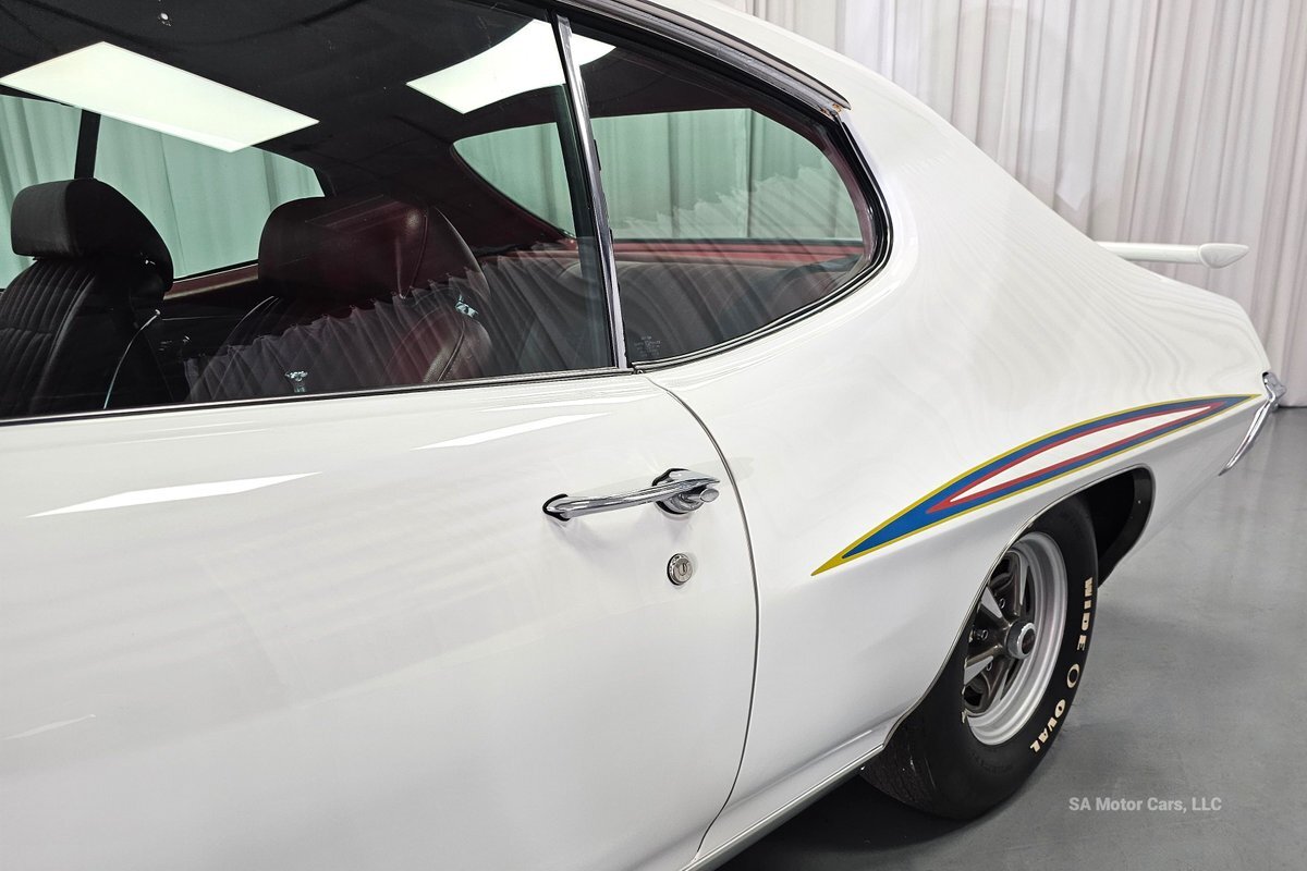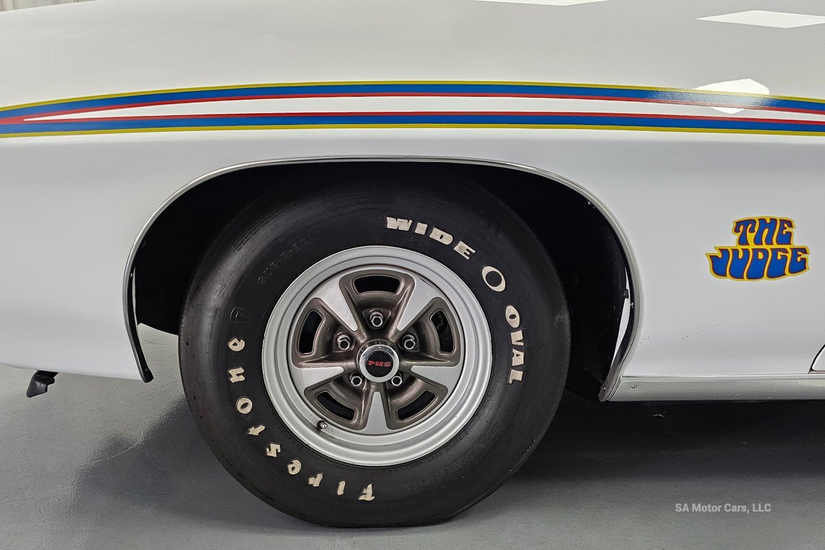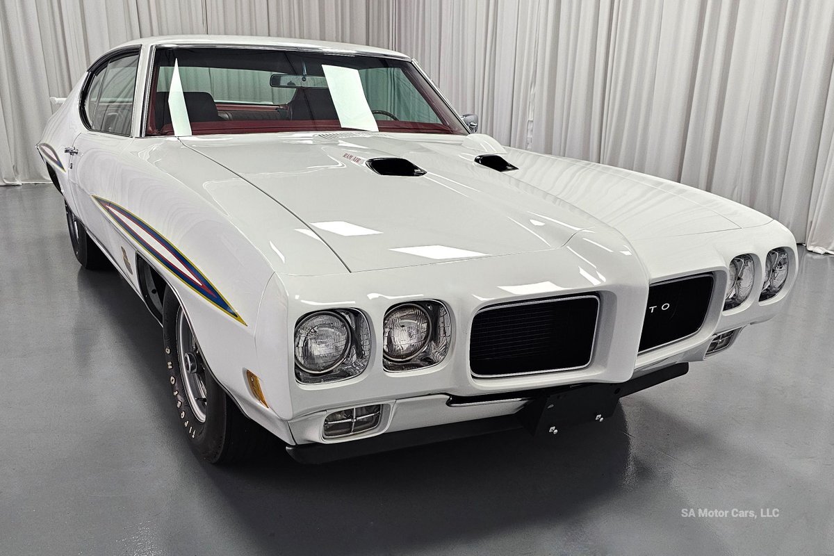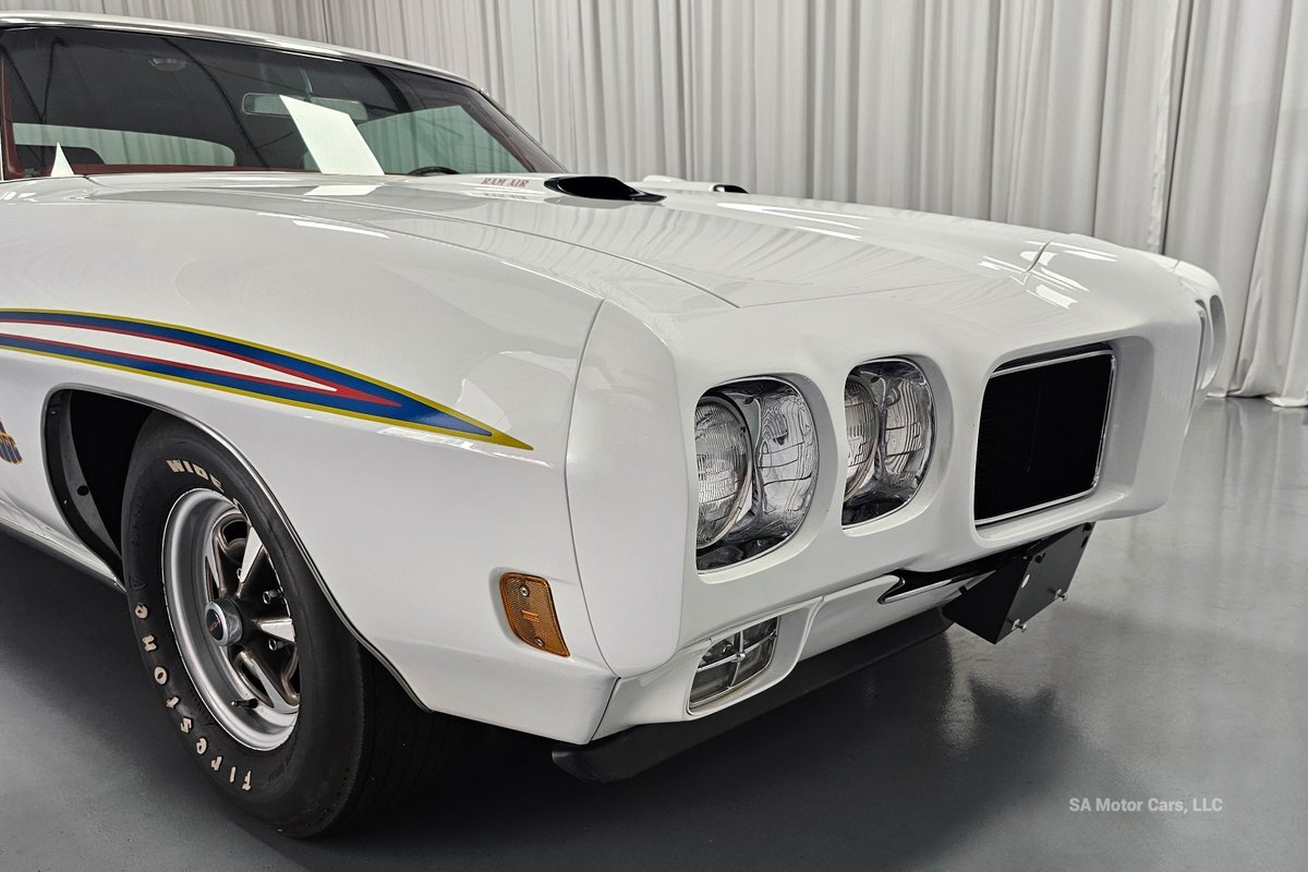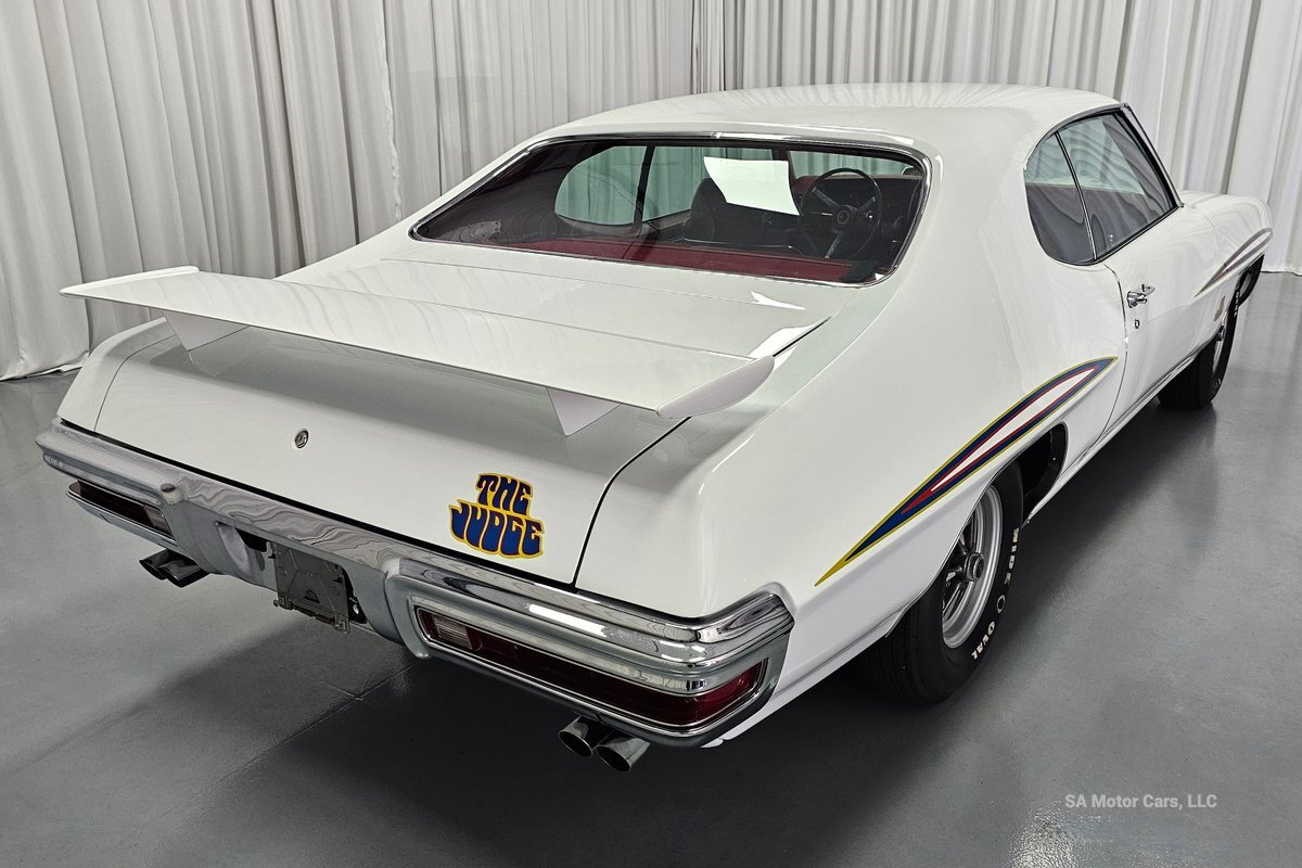 Check out this amazing 1970 Pontiac GTO Judge! This Judge is Sporting gorgeous Polar White Exterior Paint with red/blue/yellow stripe! The interior of this GTO is also sporting a beautiful Red interior with bucket seats in front and a bench seat in rear, and so much more!