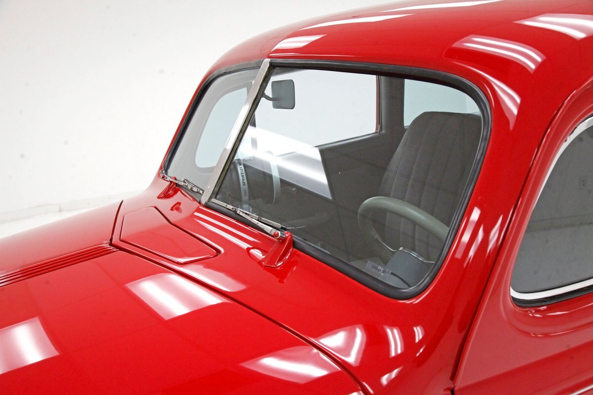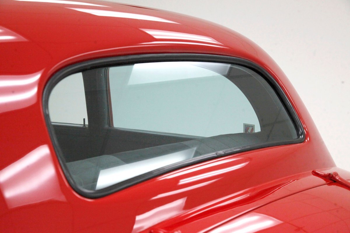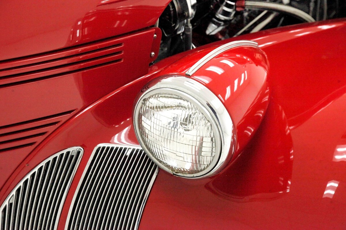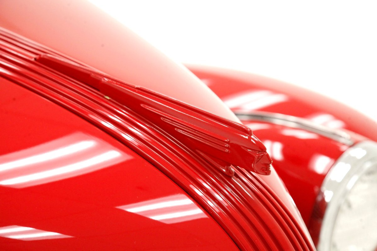 From the wonderful waterfall-esque grille flanking a pointy radiator front cowl, a rounded miles long hood, open air side cowls for the hood and large rounded fenders with red cased bullet style headlights, they will see you coming from a mile away. Next in line are the running boards and doors which no longer have the "silver streak", but a simple but effective pinstripe replacing it. The glass is all good and the roofline is subtly rounded over on the corners. At the back end of the car are two more curvaceous wide fenders which have more bullet style tail lights mounted on wide stalks and aft of these, the fenders dive to the bottom of the car on the back end of them. A tall humpback trunk is on the very back and floats above a nicely chromed and curved bumper with dual exhaust peeking out from underneath. A side view of the car shows a subtle rake thanks to 14-inch Weld Prostar wheels wrapped by 215/70R14's on front, and larger 15-inch Weld Prostars on back wrapped by 255/70R15's. Drop the hanky baby!