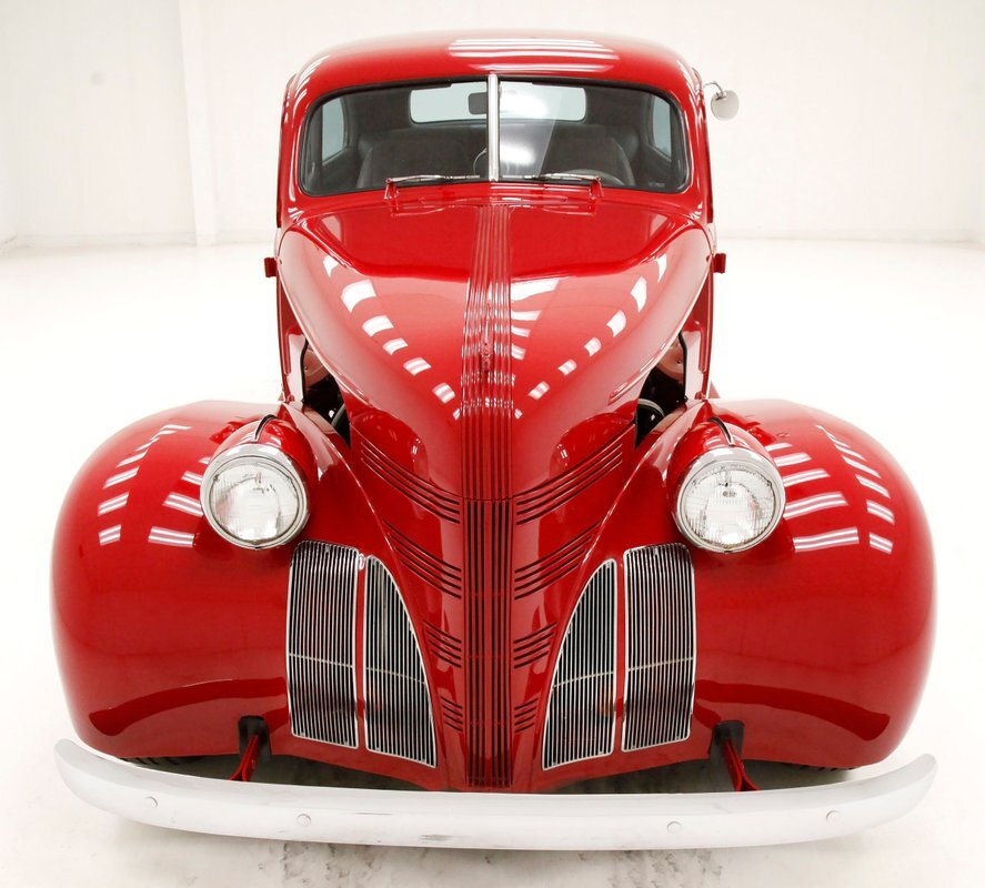 For consignment, a 1939 Pontiac Deluxe sedan hot rod. This car has been our consignor's possession for the last 20 years, and under said care has had a 454 big block put in by Jim Lape, a gorgeous exterior arrest me red by Jeff Ludwig, a nice interior by Jeff Ludwig, and is a real eye catcher. I'll call it a piece of cherry hot rod pie, and it's still steaming...