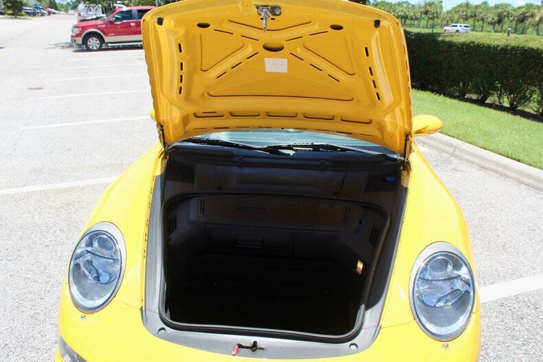 Unleash Your Passion: 2005 Porsche 911 Carrera Discover the thrill of driving with the 2005 Porsche 911 Carrera, a timeless icon that blends exhilarating performance with unparalleled precision engineering. This exceptional sports car promises an unmatched driving experience, whether on winding roads or cruising through city streets. Powered by a 3.6-liter flat-six engine, delivering 325 horsepower paired with 6-Speed manual transmission. Crafted with sleek, aerodynamic lines and a distinctive silhouette that captures attention effortlessly. Inside you will immerse yourself in luxury with a driver-centric cockpit featuring premium leather upholstery, ergonomic controls, and state-of-the-art infotainment system, ensuring both comfort and connectivity on every journey. 2005 Porsche 911 Carrera offers dynamic handling and responsive steering, making every drive an exhilarating experience. Why Choose the 911 Carrera? Owning a Porsche isn't just about owning a car-it's about embracing a legacy of performance and craftsmanship. The 911 Carrera stands as a testament to Porsche's commitment to automotive excellence, combining everyday usability with track-worthy performance. Join the elite ranks of Porsche enthusiasts and experience the thrill of driving a 2005 Porsche 911 Carrera. Whether you're a seasoned collector or a first-time Porsche owner, this timeless sports car promises to deliver an unmatched driving experience that will exceed your expectations. This 2005 Porsche comes in Yellow over black interior. It features black wheels with yellow calibers. Additionally, they have added a sporty nose and rear wing to this Carrera. Odometer shows less than 35k miles. Clean CarFax EXTERIOR: aˆc Yellow aˆc Black wheels aˆc Yellow Calipers aˆc Tinted windows aˆc Rear wing INTERIOR: aˆc Black leather bucket seats aˆc Air Conditioning aˆc Power windows aˆc Power seats MECHANICS: aˆc 3.6L 6-cyl. 325hp aˆc 6-Speed Manual aˆc 4-Wheel power disc brakes UNDERCARRIAGE: aˆc Clean aˆc Four-wheel independent suspension Call us at941-208-6886, a live person answers the phones from 9am - 9pm (EST) Financing is available on our website We can ship this vehicle worldwide door to door Our indoor showroom is located at 7910 25th Court East Unit 107 Sarasota, FL 34243