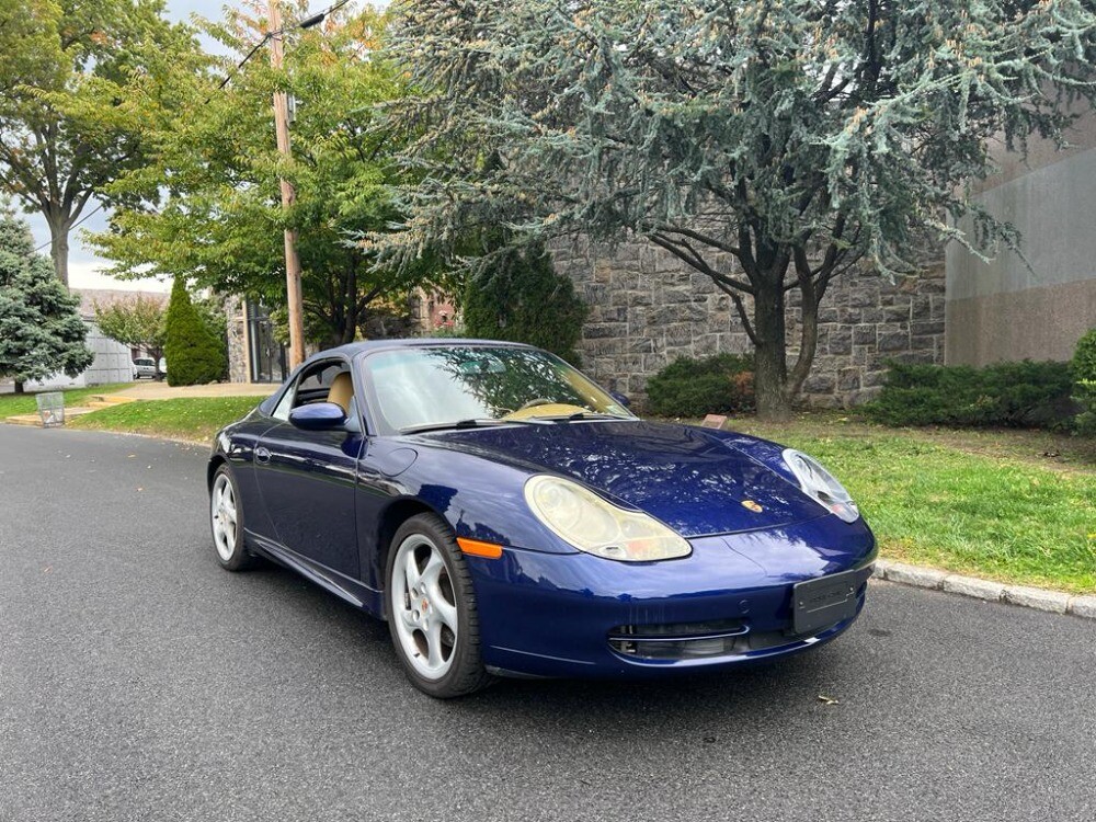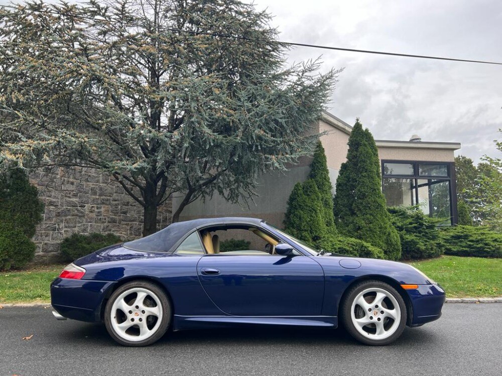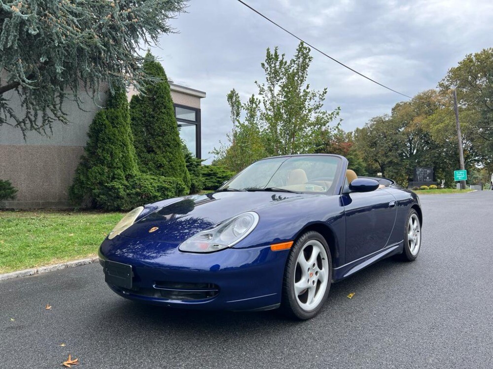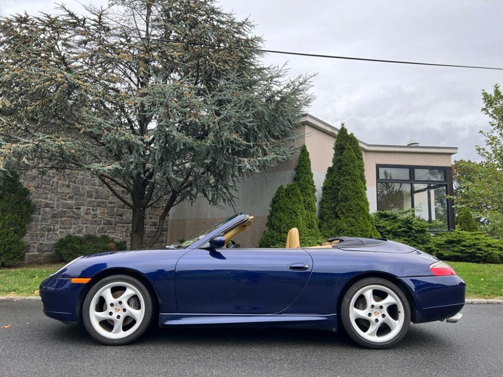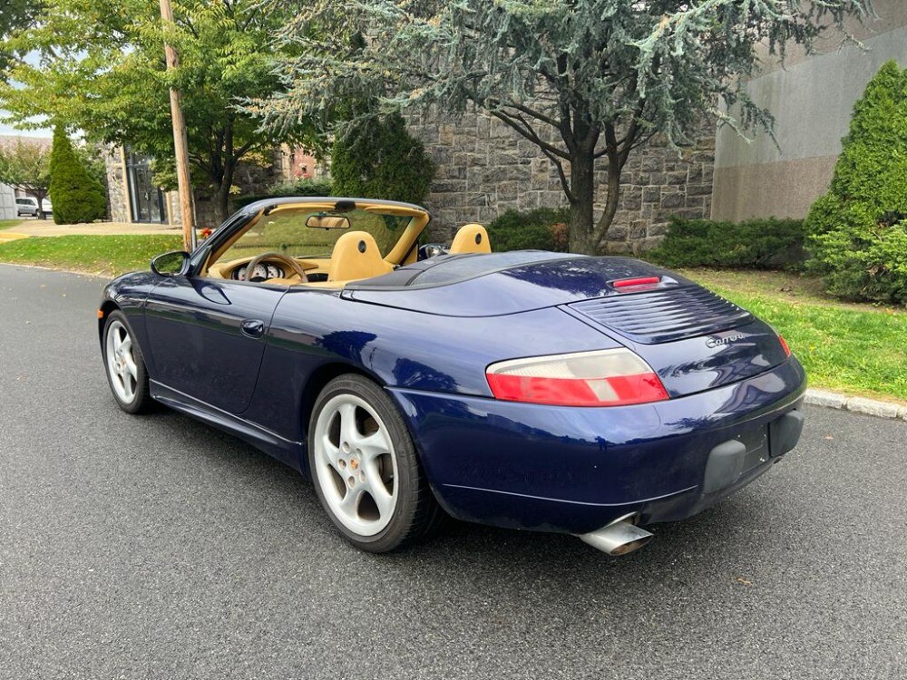 This 2001 Porsche 911 Carrera Cabriolet is a desirable 6-Speed manual model. Blue with tan leather interior and 144k miles. This 996 runs and drives very well but would benefit from minor cosmetics at this time. It's accompanied by a clean carfax report. The 996 represents a bargain in the 911 market. A solid and straight car with no stories. One headlight has some discoloration and the interior could use some detailing at this point. A superb value for an increasingly collectible Porsche.