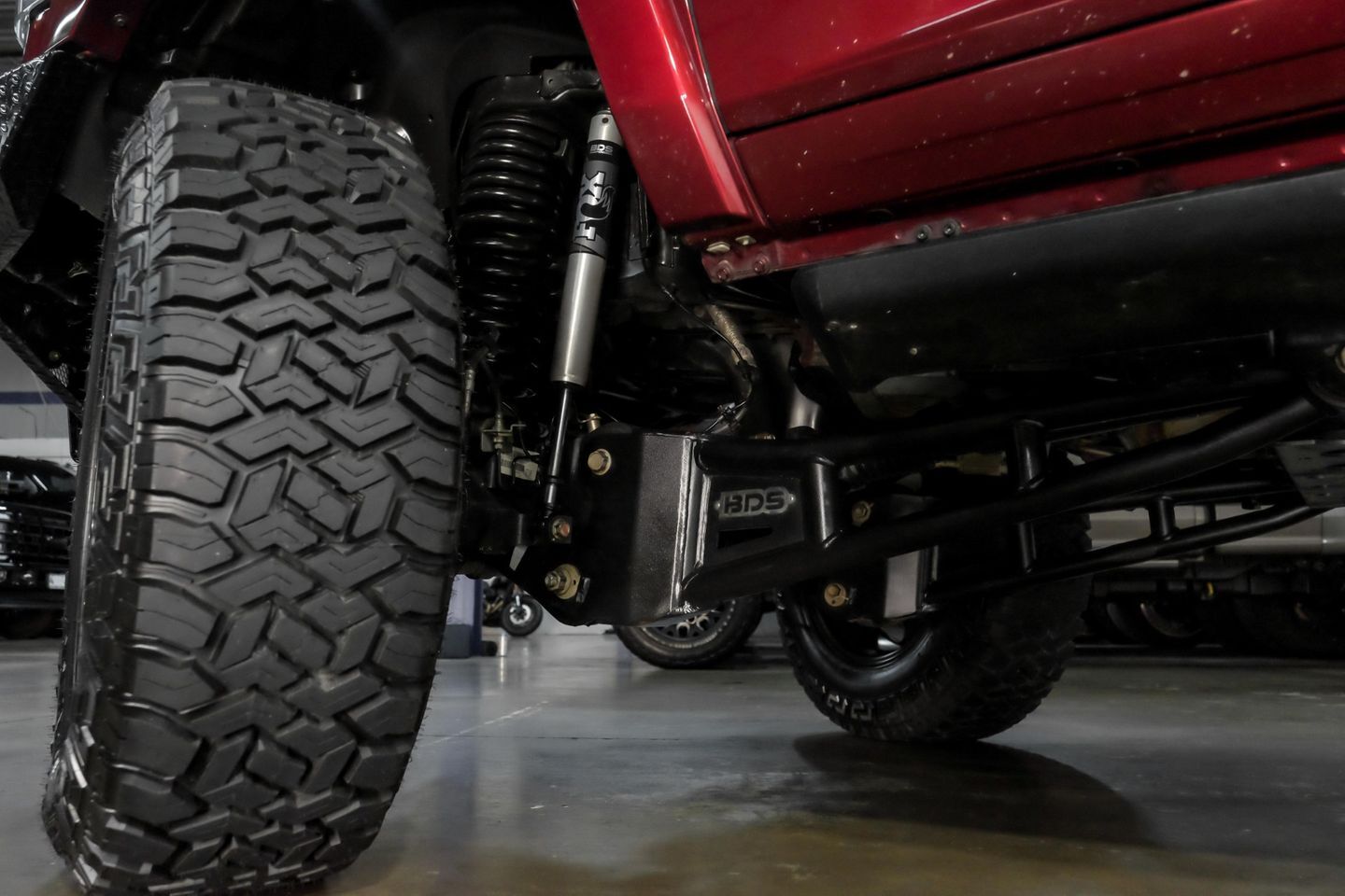 As you approach this magnificent beast, its presence is magnified by a towering 6-inch BDS lift, setting it high above the mundane. The 20-inch Moto Metal wheels, wrapped in robust 37-inch Fury R/T tires, are not just wheels; they are the chariot's feet, ready to conquer any terrain with grace and stability. The bold, muscular lines of the bodywork create an aura of invincibility, while the luxurious Longhorn trim whispers tales of the craftsmanship within.