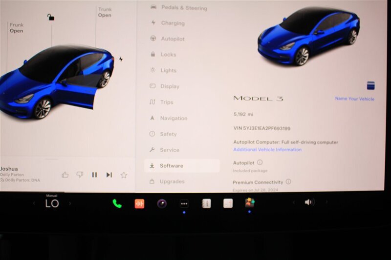 INSTALLED FEATURES: Air filtration, Front air conditioning: automatic climate control, Front air conditioning zones: dual, Rear vents: second row, Airbag deactivation: occupant sensing passenger, Front airbags: dual, Knee airbags: dual front, Side airbags: front, Side curtain airbags: front / rear, Antenna type: element, Auxiliary audio input: Bluetooth / USB, Internet radio app: Slacker / Spotify / TuneIn, Radio: FM / HD radio / touch screen display / voice operated, Radio data system, Speed sensitive volume control, Total speakers: 7, Watts: 350, ABS: 4-wheel, Brake drying, Braking assist, Electronic brakeforce distribution, Electronic parking brake, Front brake diameter: 12.6, Front brake type: ventilated disc, Front brake width: 0.98, Power brakes, Rear brake diameter: 13.2, Rear brake type: ventilated disc, Rear brake width: 0.79, Regenerative braking system, Armrests: rear center with cupholders / rear folding, Center console trim: leatherette, Door trim: faux suede, Floor material: cargo area carpet / carpet, Heated steering wheel, Interior accents: metallic-tone / wood, Steering wheel trim: leatherette, Adaptive cruise control, Adaptive stop and go cruise control: fully automated, Ambient lighting, Cargo area light, Cargo cover: hard, Center console: front console with armrest and storage, Cupholders: front / rear, Easy entry: power driver seat / power steering wheel, Memorized settings: 10 driver / audio system / climate control / driver seat / side mirrors / steering wheel, Multi-function remote: proximity entry system / trunk release / vehicle and key memory, One-touch windows: 4, Power outlet(s): 12V front / USB front / USB-C front / USB-C rear, Power steering: variable/speed-proportional, Power windows: lockout button, Reading lights: front / rear, Rearview mirror: auto-dimming, Steering wheel: power tilt and telescopic, Steering wheel mounted controls: air conditioning / audio / cruise control / multi-function / phone / voice control, Storage: accessory hook / door pockets, Universal remote transmitter: Homelink - garage door opener, Vanity mirrors: dual illuminating, Wireless charging station: front, Axle ratio: 9.00, Drive mode selector, Electric charge cord: 240 volt, Electric motor battery type: lithium ion, Electric motor charger connector: Tesla (SAE J3400), Electric Motor HP: 271, Electric Motor Power Output (Kilowatts): 202, Electric Motor Torque: 310, EV battery capacity: 50 kWh, EV on-board charger rating: 7.7 kW, Door handle color: black, Front bumper color: body-color, Grille color: black, Mirror color: body-color, Rear bumper color: body-color, Rear spoiler: lip, Rear spoiler color: body-color, Rear trunk/liftgate: power operated, Window trim: black, Electric motor charging time (240V): 10.4 hours, Electric motor miles per charge: 272, Infotainment screen size: 15 in., Clock, Compass, Digital odometer, External temperature display, Fuel economy display: range, Multi-function display, Trip odometer, Warnings and reminders: low battery, Daytime running lights: LED, Exterior entry lights: approach lamps / puddle lamps, Front fog lights: LED, Headlights: LED / auto delay off / auto high beam dimmer / auto on/off / self-leveling, Taillights: LED, Side mirror adjustments: power / power folding / reverse gear tilt, Side mirrors: auto-dimming / heated, Moonroof / Sunroof: panoramic, Automatic emergency braking: front / front pedestrian, Automatic hazard warning lights, Blind spot safety: sensor/alert, Camera system: front / rearview, Child safety door locks, Child seat anchors: LATCH system, Crumple zones: front, Dash camera: front recording / rear recording / side recording, Driver attention alert system, Emergency interior trunk release, Impact sensor: battery disconnect / door unlock / post-collision safety system, Lane deviation sensors, Lane keeping assist, Parking sensors: front / rear, Pedestrian safety sound generation, Pre-collision warning system: audible warning / pedestrian detection / visual warning, Rearview monitor: in dash, Traffic sign recognition: adaptive speed limiting, Emergency locking retractors: front / rear, Front seatbelts: 3-point, Rear seatbelts: 3-point, Seatbelt force limiters: front / rear, Seatbelt pretensioners: front / rear, Seatbelt warning sensor: front, Driver seat: heated, Driver seat power adjustments: 4-way power lumbar / height / reclining / 12, Front headrests: integrated / 2, Front seat type: bucket, Passenger seat: heated, Passenger seat power adjustments: 4-way power lumbar / height / reclining / 12, Rear headrests: fixed / 3, Rear seat: heated, Rear seat folding: split, Rear seat type: 60-40 split bench, Upholstery: leatherette, Anti-theft system: alarm / perimeter alarm / vehicle immobilizer, Power door locks: anti-lockout / auto-locking, Hill holder control, Stability control, Traction control, Turns lock-to-lock: 2.0, Front shock type: twin-tube gas, Front spring type: coil, Front stabilizer bar, Front struts, Front suspension classification: independent, Front suspension type: double wishbone, Rear shock type: twin-tube gas, Rear spring type: coil, Rear stabilizer bar, Rear struts, Rear suspension classification: independent, Rear suspension type: multi-link, Driver assistance app: roadside assistance, Electronic messaging assistance: voice operated, Hands-free phone call integration: voice operated, Navigation data: real time traffic / send destination to vehicle, Navigation system: touch screen display / voice operated, Smart device app compatibility: Tesla App, Smart device app function: camera system display / horn/light operation / lock operation / maintenance scheduling / maintenance status / phone as a key / security event/collision alert / vehicle location / window operation, Wi-Fi: hotspot compatible, Wireless data link: Bluetooth, Tire Pressure Monitoring System, Tire type: all season, Wheel covers: full, Wheels: aluminum alloy, Front wipers: rain sensing / speed sensitive / variable intermittent, Power window