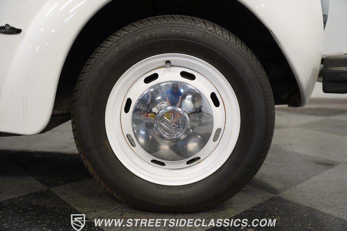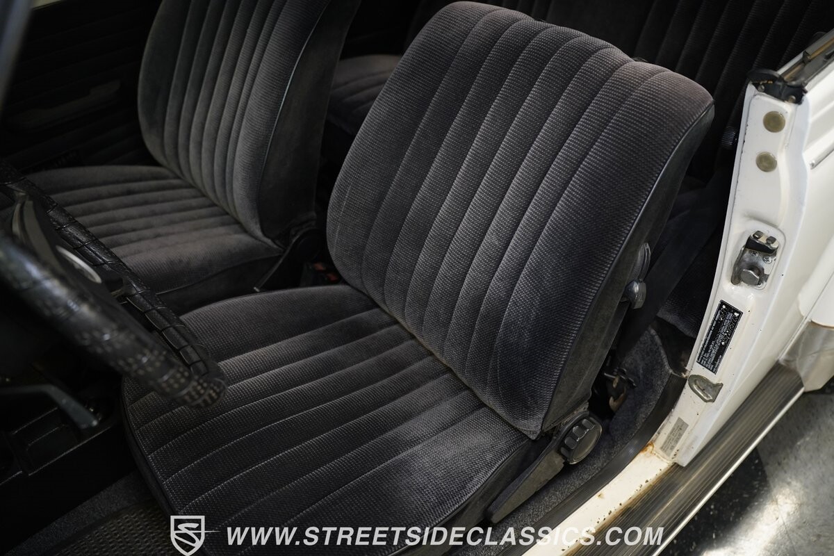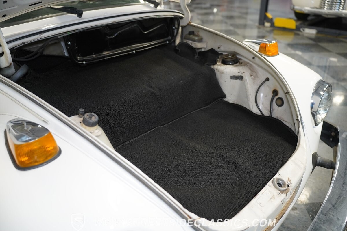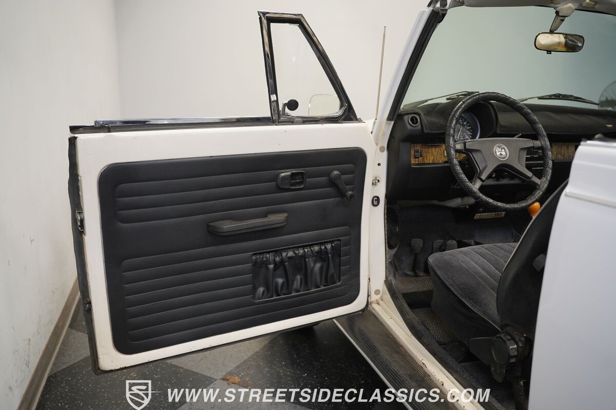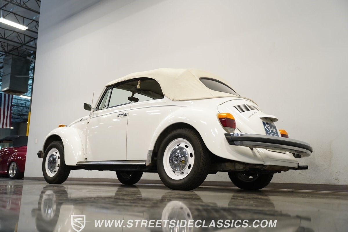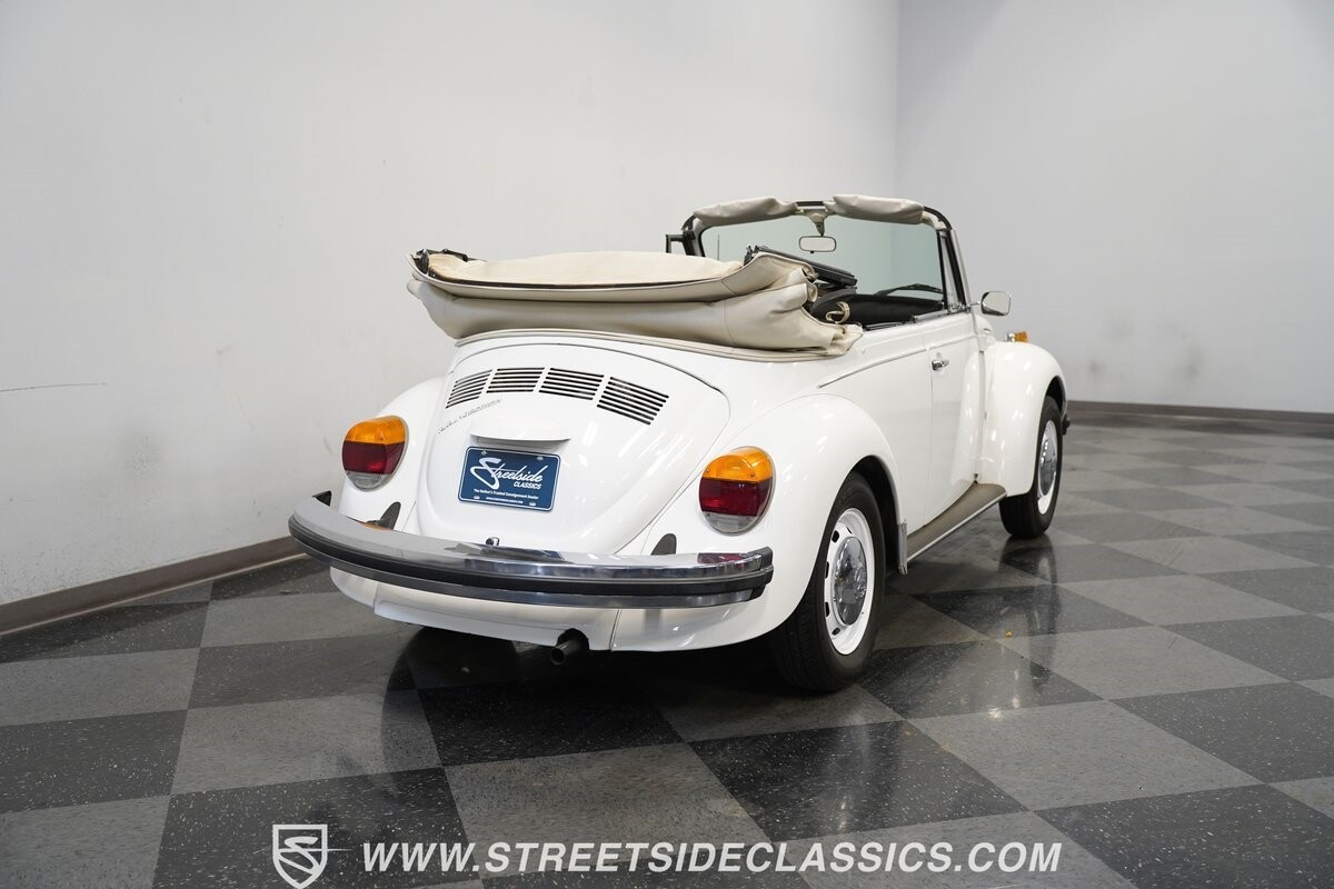 In a world where conformity reigns supreme, this 1977 Volkswagen Super Beetle Convertible dares to break the mold. Draped in a coat of white that gleams like a pearl, this classic drop-top is ready to make every sunny day an adventure. The 15" steel wheels, adorned with chrome caps and wrapped in 165/80R15 Kumho Powerstar tires, add a touch of sophistication to the iconic Bug silhouette. And when the urge to feel the wind in your hair strikes, the white vinyl top folds down effortlessly, revealing a cabin that's as inviting as it is stylish.