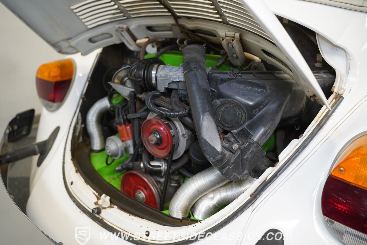 But this Beetle isn't just about looks – it's got the heart of a true adventurer. The 1600cc engine, sporting a fresh coat of green paint and eye-catching red pulleys, eagerly awaits your command. Paired with a 4-speed manual transmission, this powerplant delivers an engaging driving experience that's sure to put a smile on your face. The factory VW suspension, with MacPherson struts up front and trailing arms with shocks in the rear, ensures a smooth ride, while the drum brakes on all four corners provide reliable stopping power.
