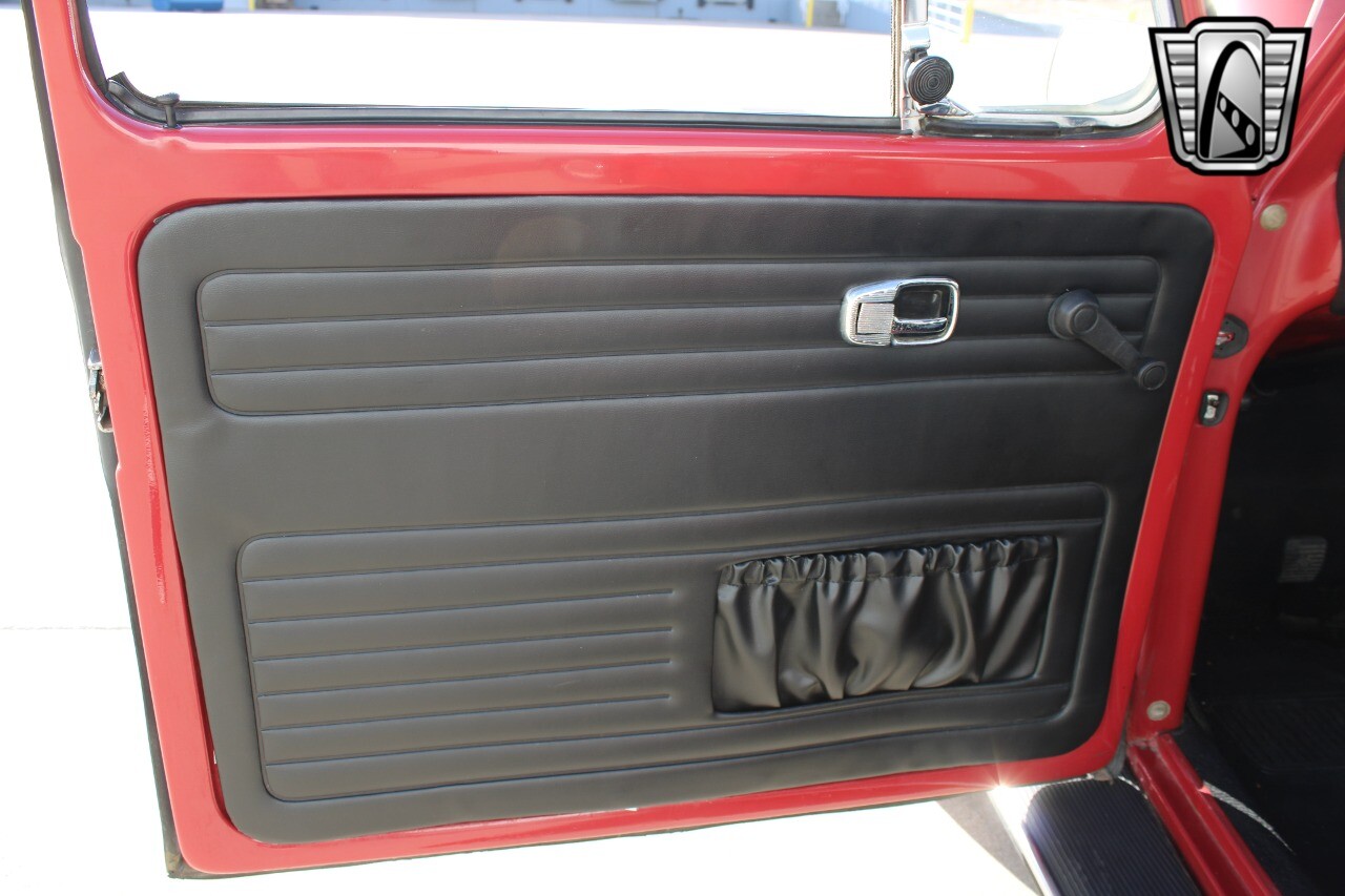 The 1968 Volkswagen Beetle, also known as the VW Bug, was a compact car produced by Volkswagen from 1938 to 2003. The Beetle featured a distinctive rounded shape and rear-mounted air-cooled engine. The model in red with a black interior was a popular color combination for the Beetle in 1968. This Beetle features a 1600CC horizontally opposed four-cylinder engine that produced 40 horsepower when new but has been upgraded to produce more power today. It is paired with a four-speed manual transmission. The Beetle had a simple, yet functional interior with black vinyl upholstery, a two-spoke steering wheel, and basic gauges. The car was known for its reliability, fuel efficiency, and affordability, and it was a popular choice among young buyers and families. The 1968 Beetle had a curb weight of around 1,965 lbs, and it has a top speed of around 80 mph. [ omitted ]. [ omitted ].