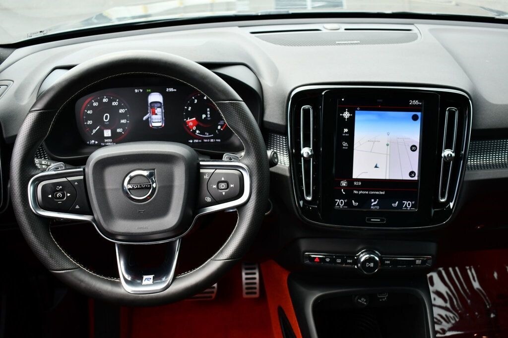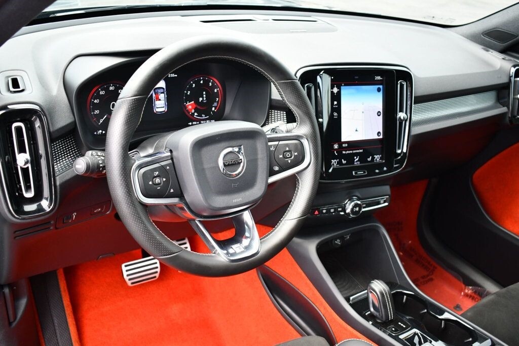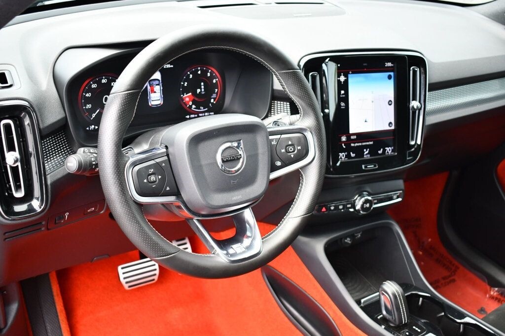 This 2019 Volvo XC40 4dr T5 AWD R-Design SUV with Premium, Advanced and Vison Pkgs. features a 2.0L 4 CYLINDER 4cyl Gasoline engine. It is equipped with a 8 Speed Automatic transmission. The vehicle is Osmium Grey Metallic with a Oxide Red Leather interior. It is covered by a limited warranty. - Air Conditioning, Climate Control, Cruise Control, Tinted Windows, Power Steering, Power Windows, Power Door Locks, Power Mirrors, Leather Steering Wheel, Power Drivers Seat, Power Passenger Seat, Memory Seat Position, Clock, Tachometer, Digital Info Center, Tilt Steering Wheel, Telescoping Steering Wheel, Steering Wheel Radio Controls, Driver Airbag, Passenger Airbag, Side Airbags, Keyless Entry, Security System, Traction Control, Rear Defogger, Fog Lights, Intermittent Wipers, AM/FM, Anti-Theft, Leather Interior Surface, Adaptive Cruise Control, Android Auto, Apple CarPlay, Aux. Audio Input, Blind Spot Monitor, Bluetooth, Carpeted Floor Mats, Center Arm Rest, Center Console, Child Proof Door Locks, Collision Avoidance System, Cup Holders, Daytime Running Lights, Front Heated Seats, Heated Mirrors, Lane Departure Warning, Lane Keep Assist, LED Headlights/Fog Lights, Navigation System, Paddle Shifter, Panoramic Roof, Parking Sensors, Power Brakes, Power Lift Gate, Premium Alloy Wheels, Premium Sound, Rear Fog Lamps, Rear Spoiler, Rear Spoiler, Rear Wipers, Remote Trunk Lid, Reverse Camera, Roll Stability Control, Side Curtain Airbags, Sliding Rear Window, Sport Seats, Tire Pressure Monitor, Vanity Mirrors -