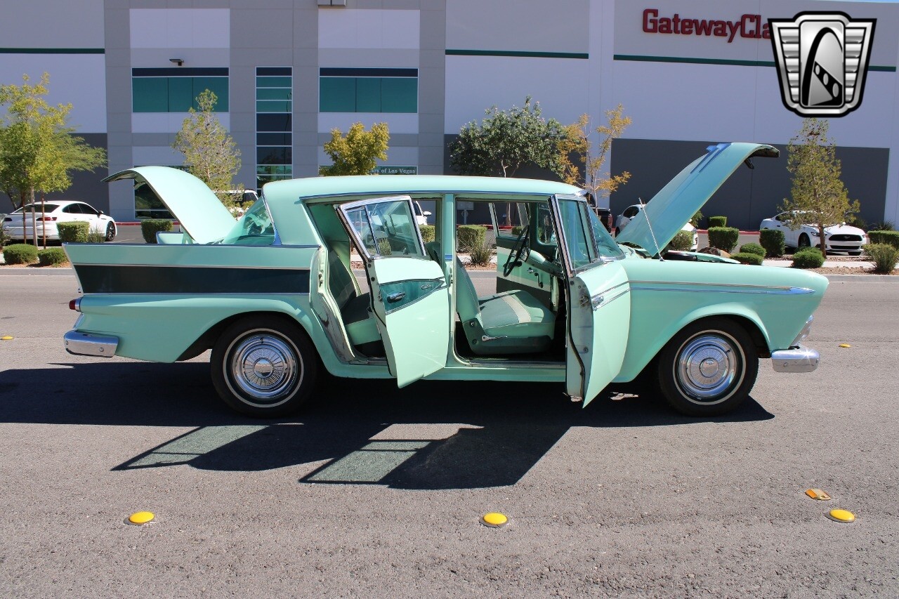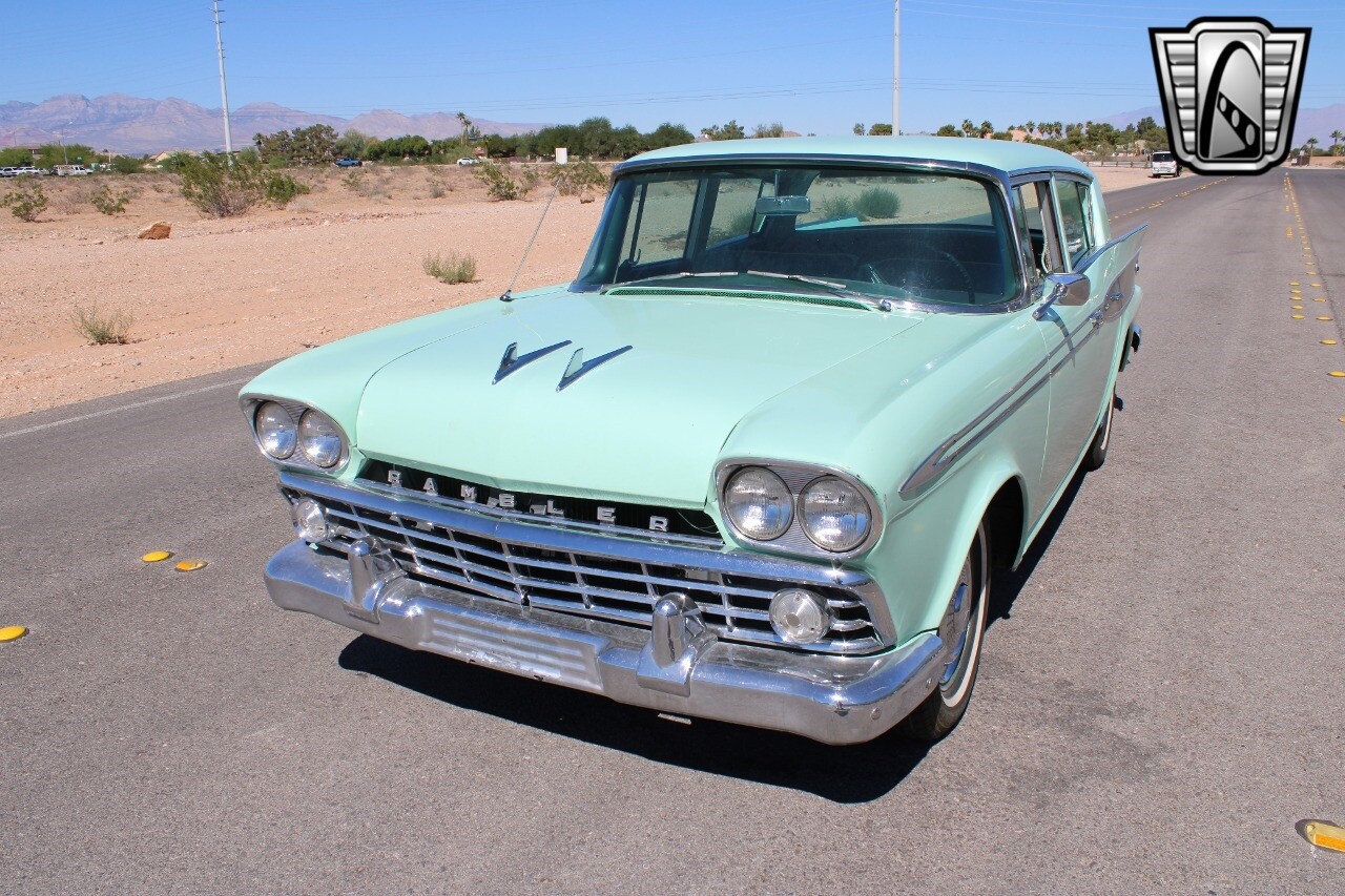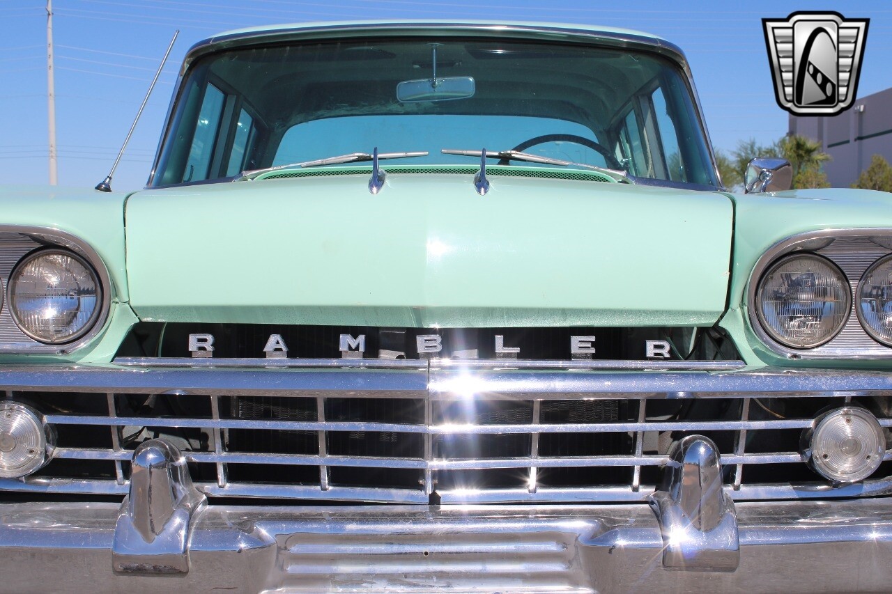 Gateway Classic Cars of Las Vegas presents this 1959 Rambler Custom, presented in a charming Chatsworth Green exterior. This vintage beauty is sure to turn heads with its timeless design and unique color. The interior continues the green theme, offering a harmonious and stylish look.